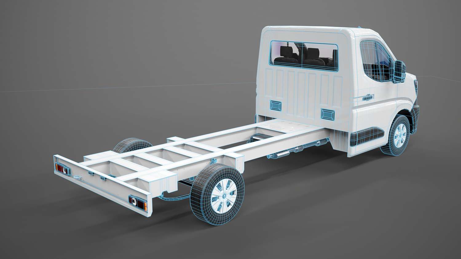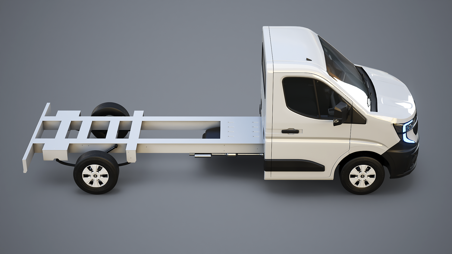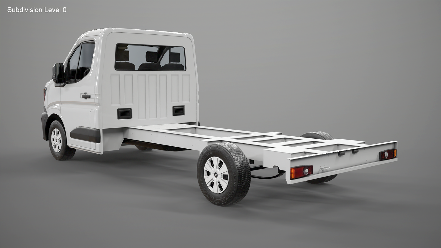 High-quality Renault Master 2025 chassis cab 3D model with PBR materials and clean topology. Accurate exterior with detailed lights, mirrors, and bodywork. Ideal for automotive visualization, rendering, or game use. Includes non-overlapping UVs and realistic textures for metal, plastic, and glass. Scaled to real-world dimensions.