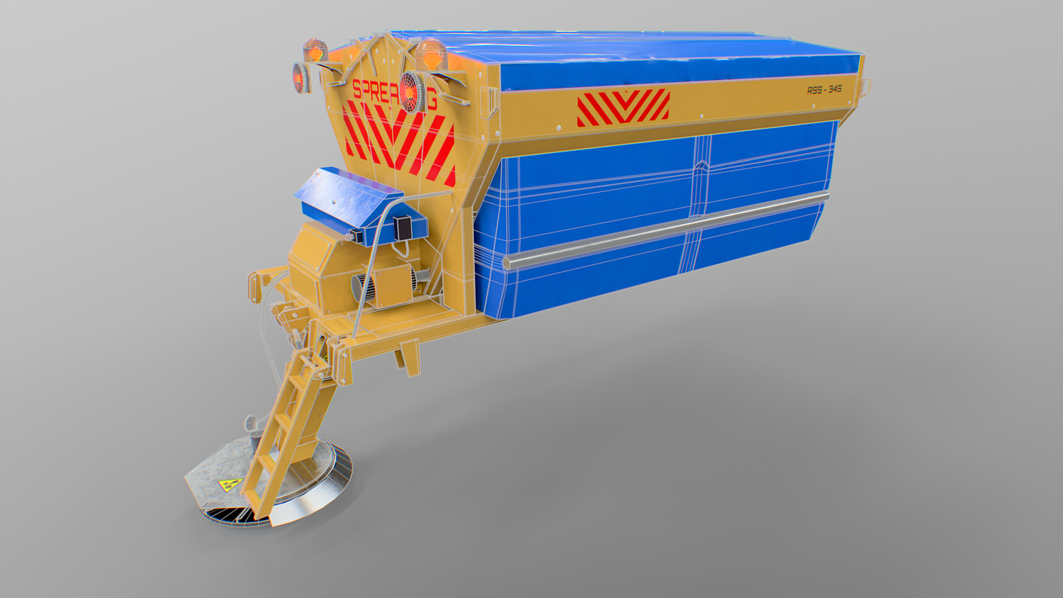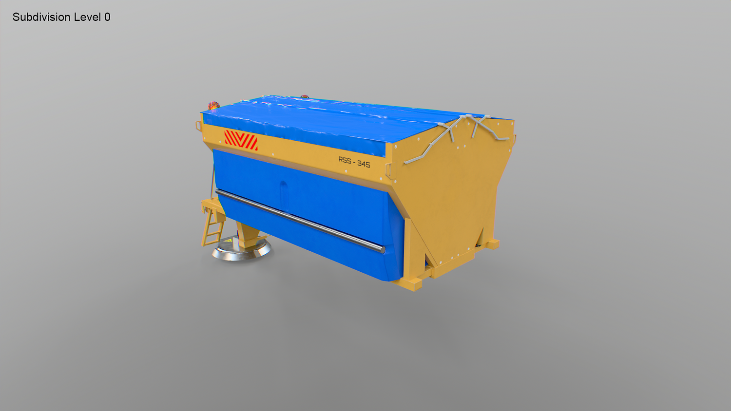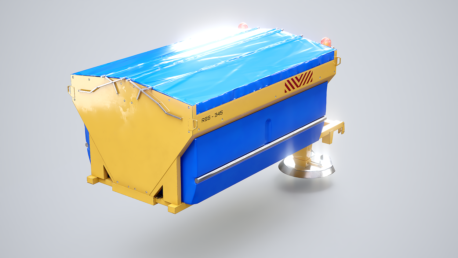 Yellow Road Salt Spreader Model - Winter Snow Removal Equipment for Trucks, PBR textures.