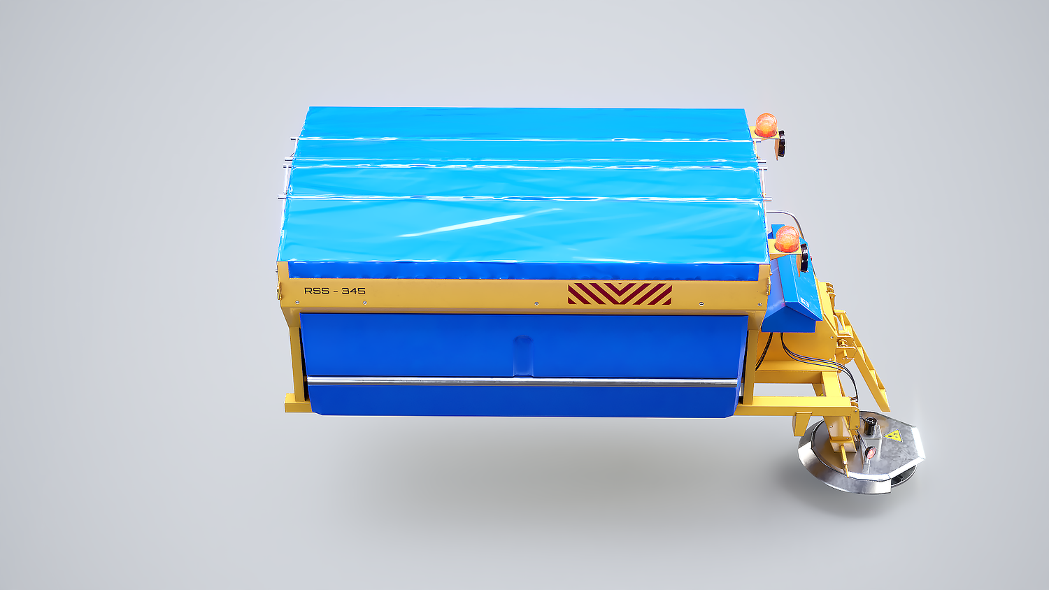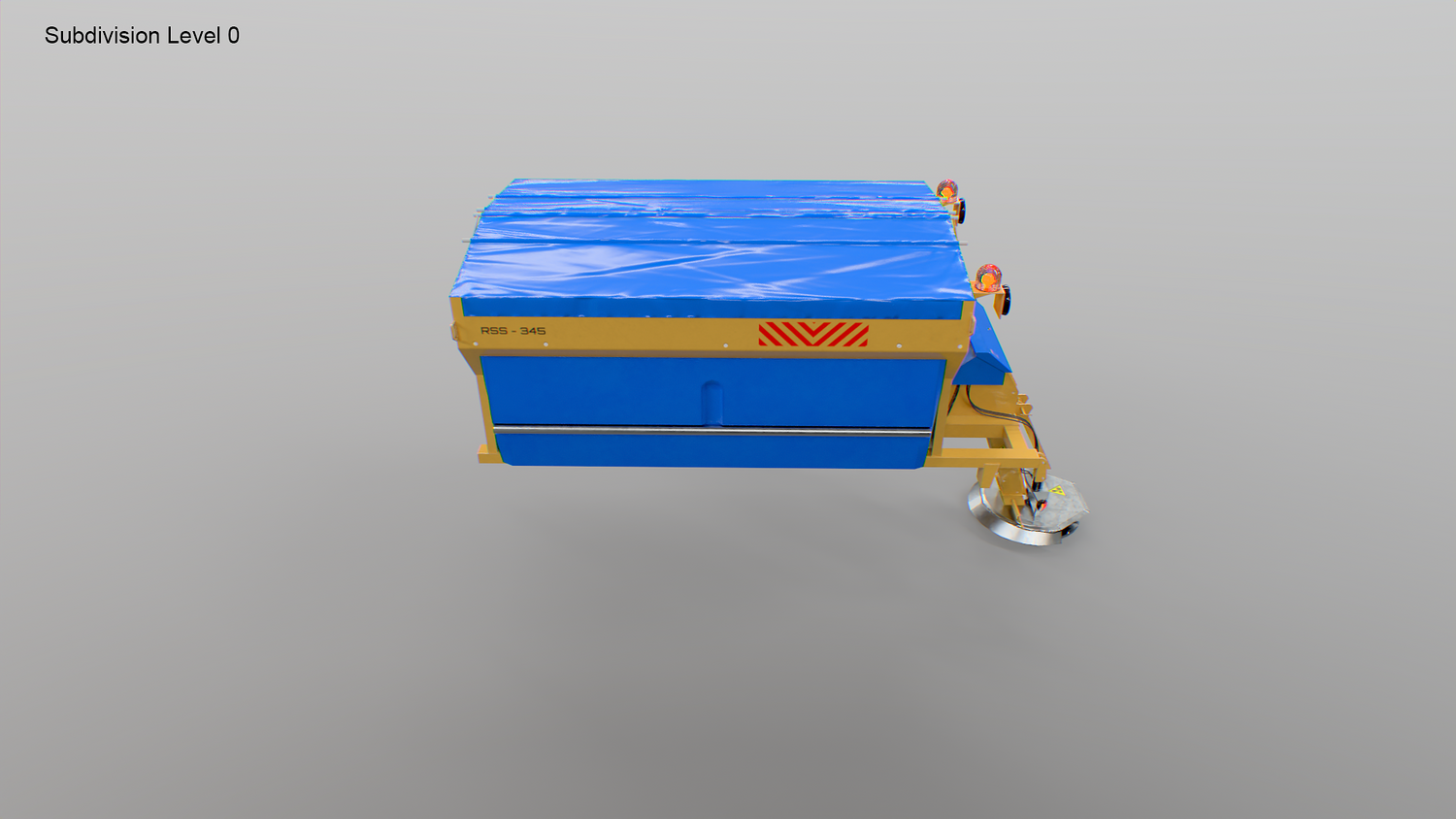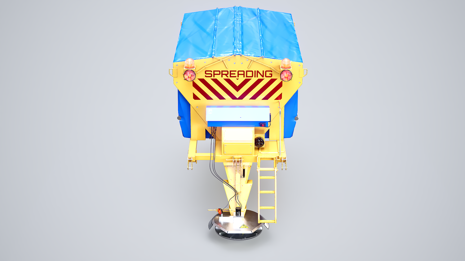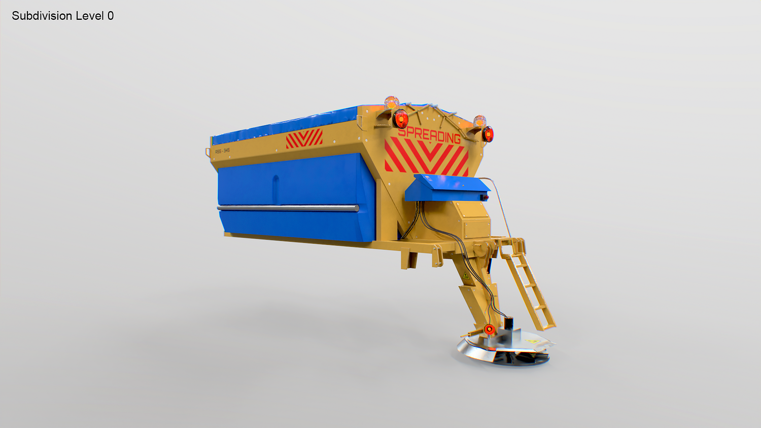 Yellow Road Salt Spreader Model - Winter Snow Removal Equipment for Trucks, PBR textures.