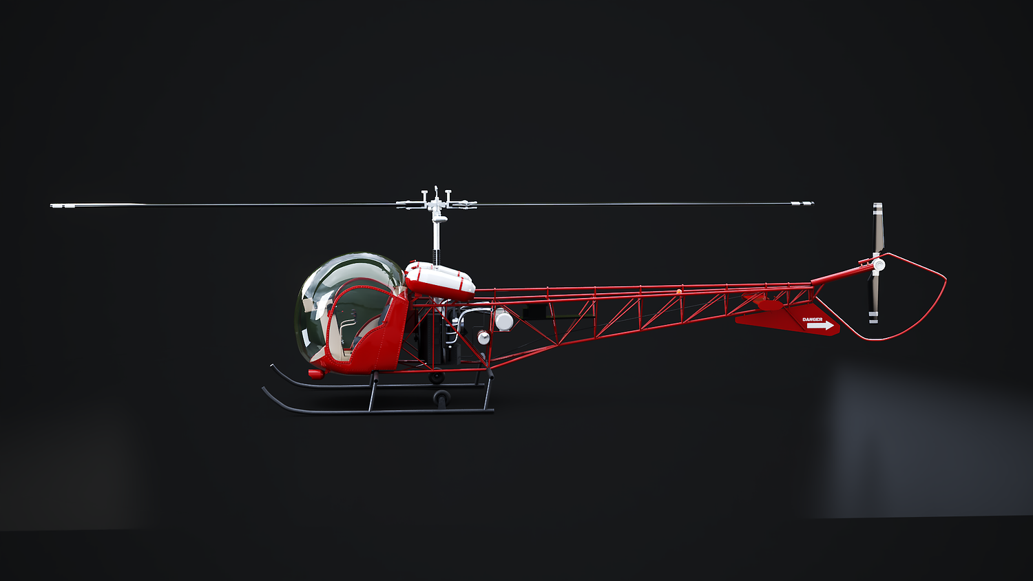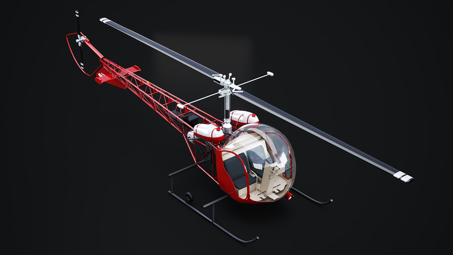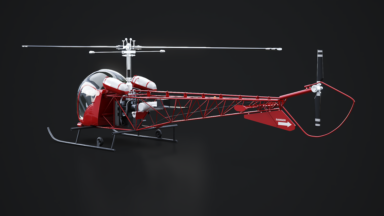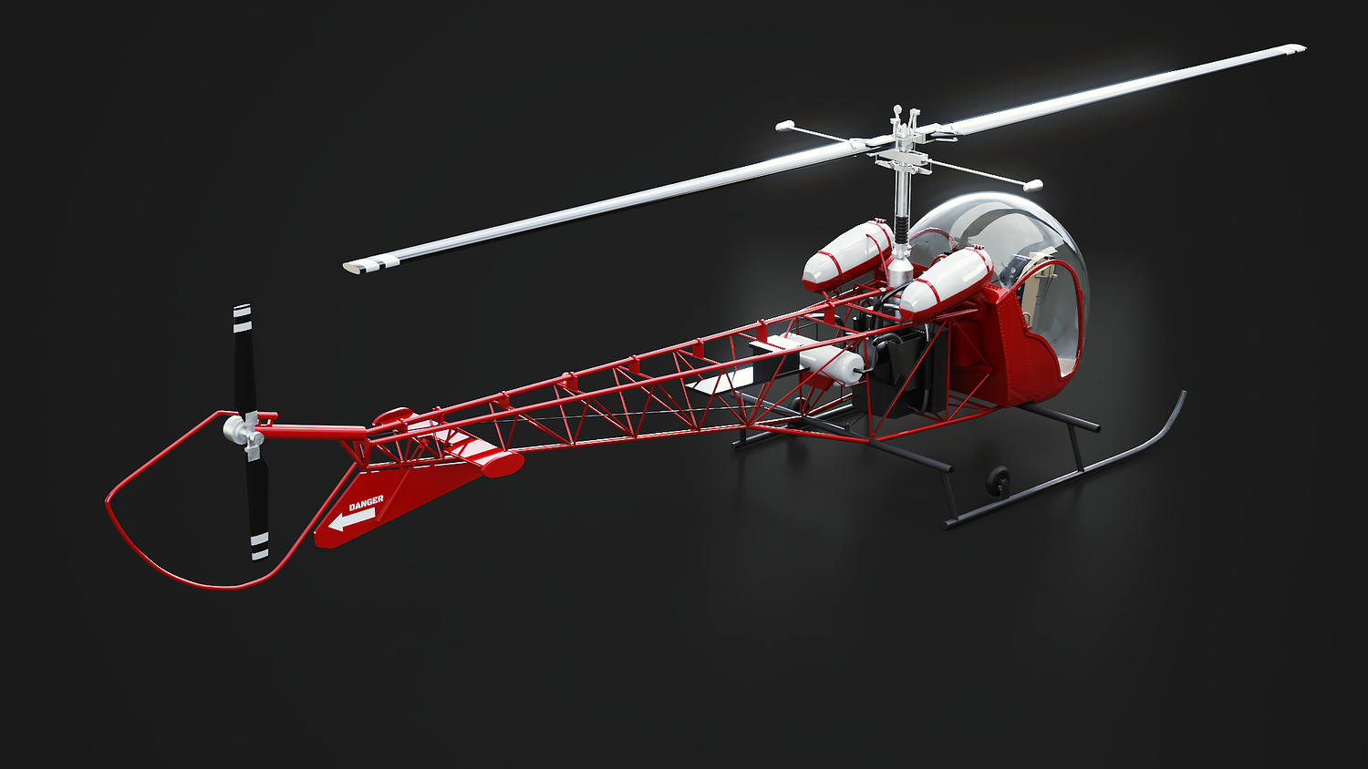 Bell 47 Light Helicopter - PBR 3D Model with Interior