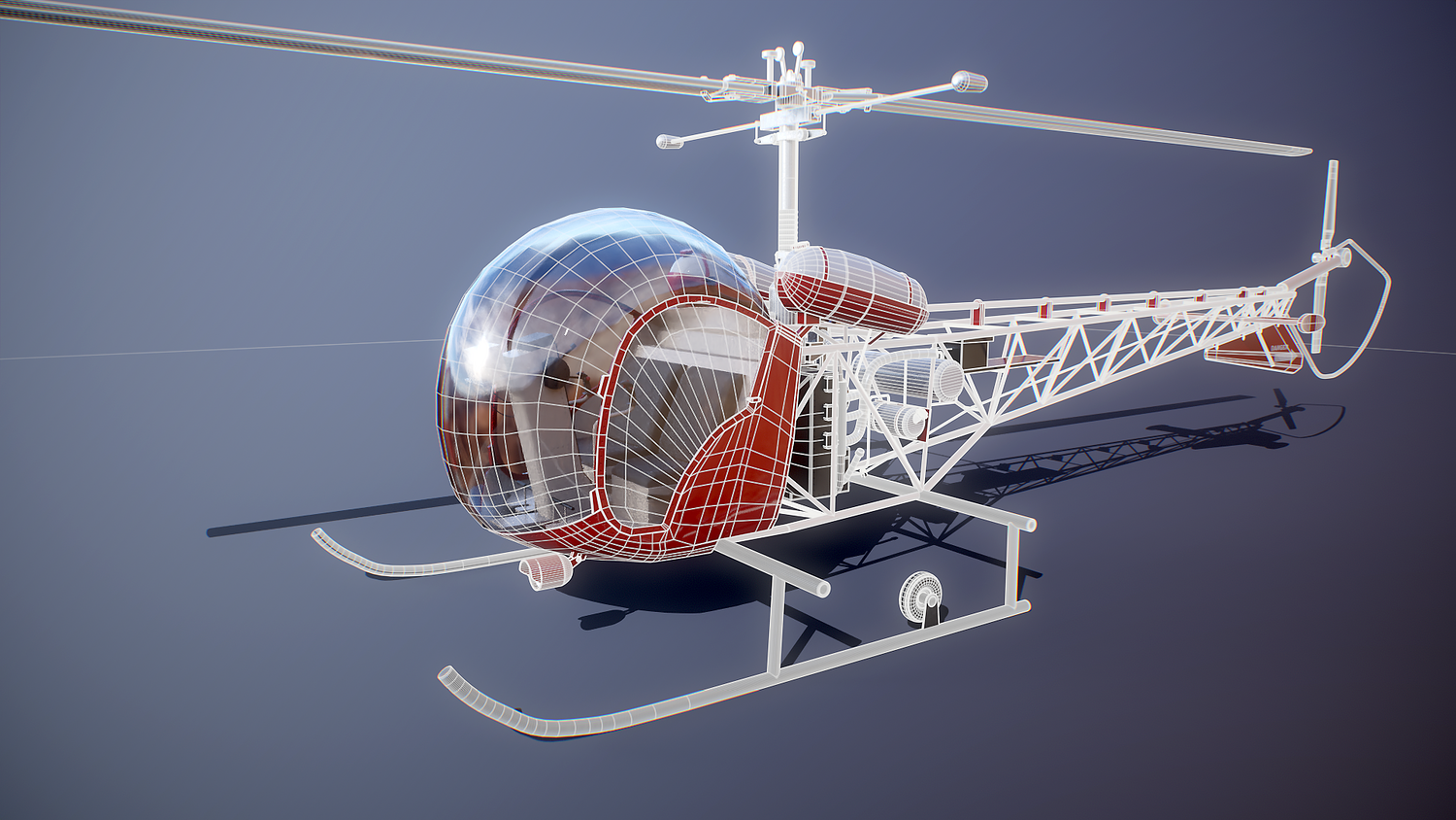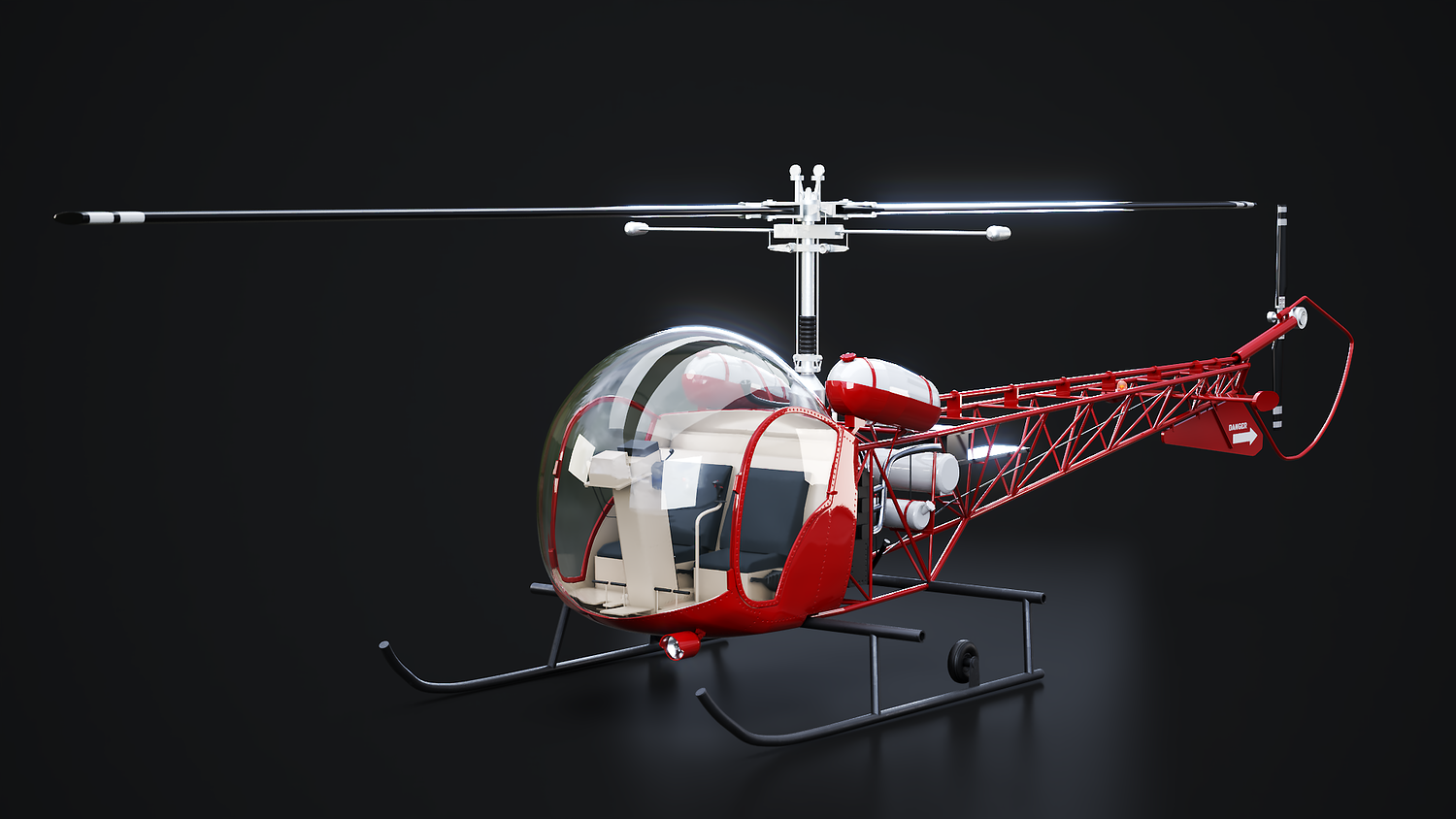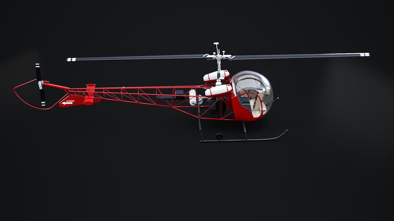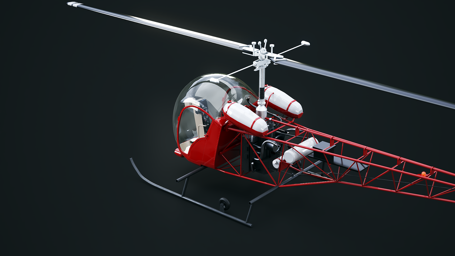 Bell 47 Light Helicopter - PBR 3D Model with Interior