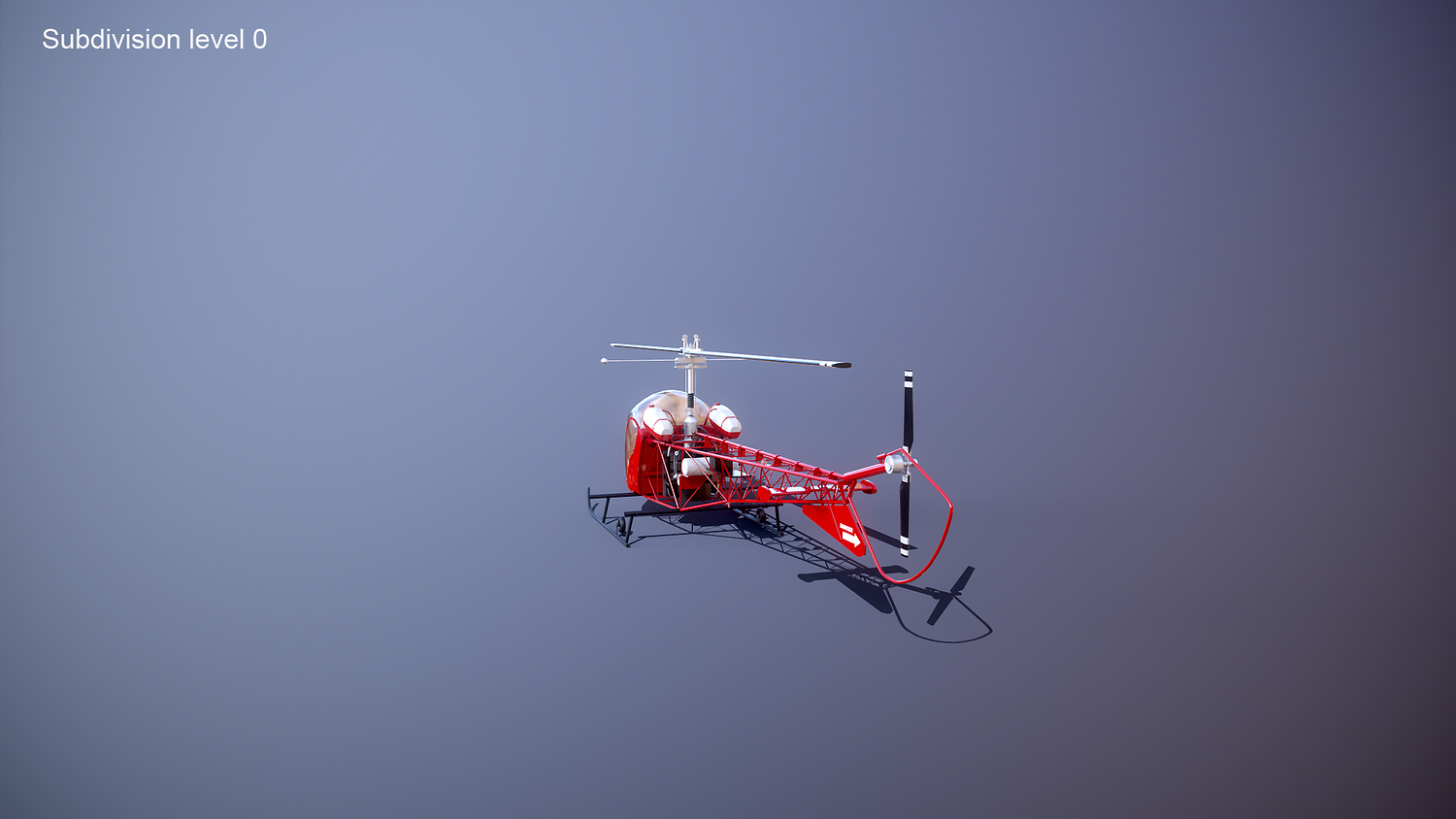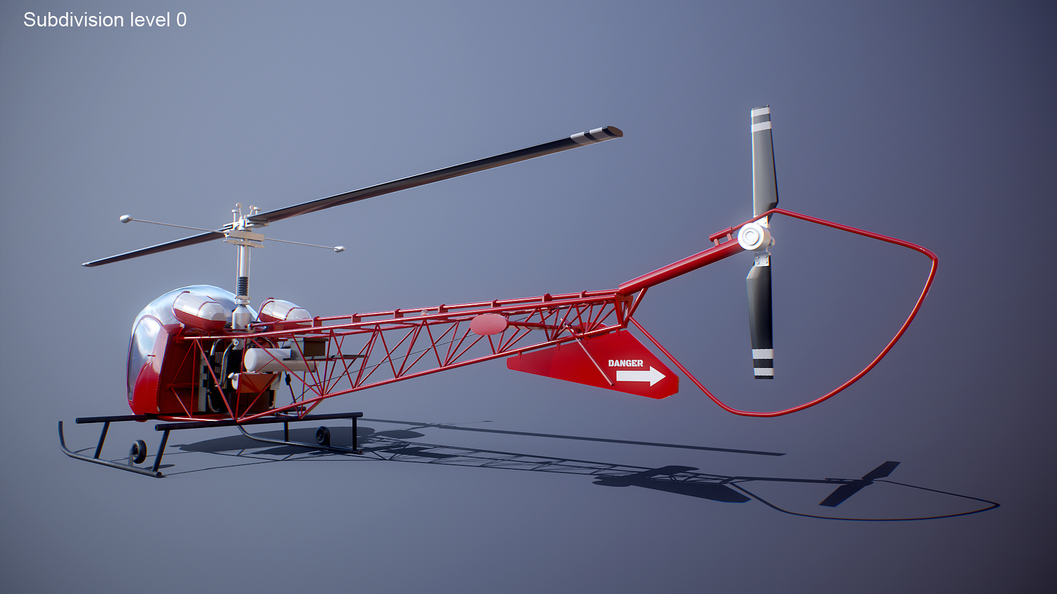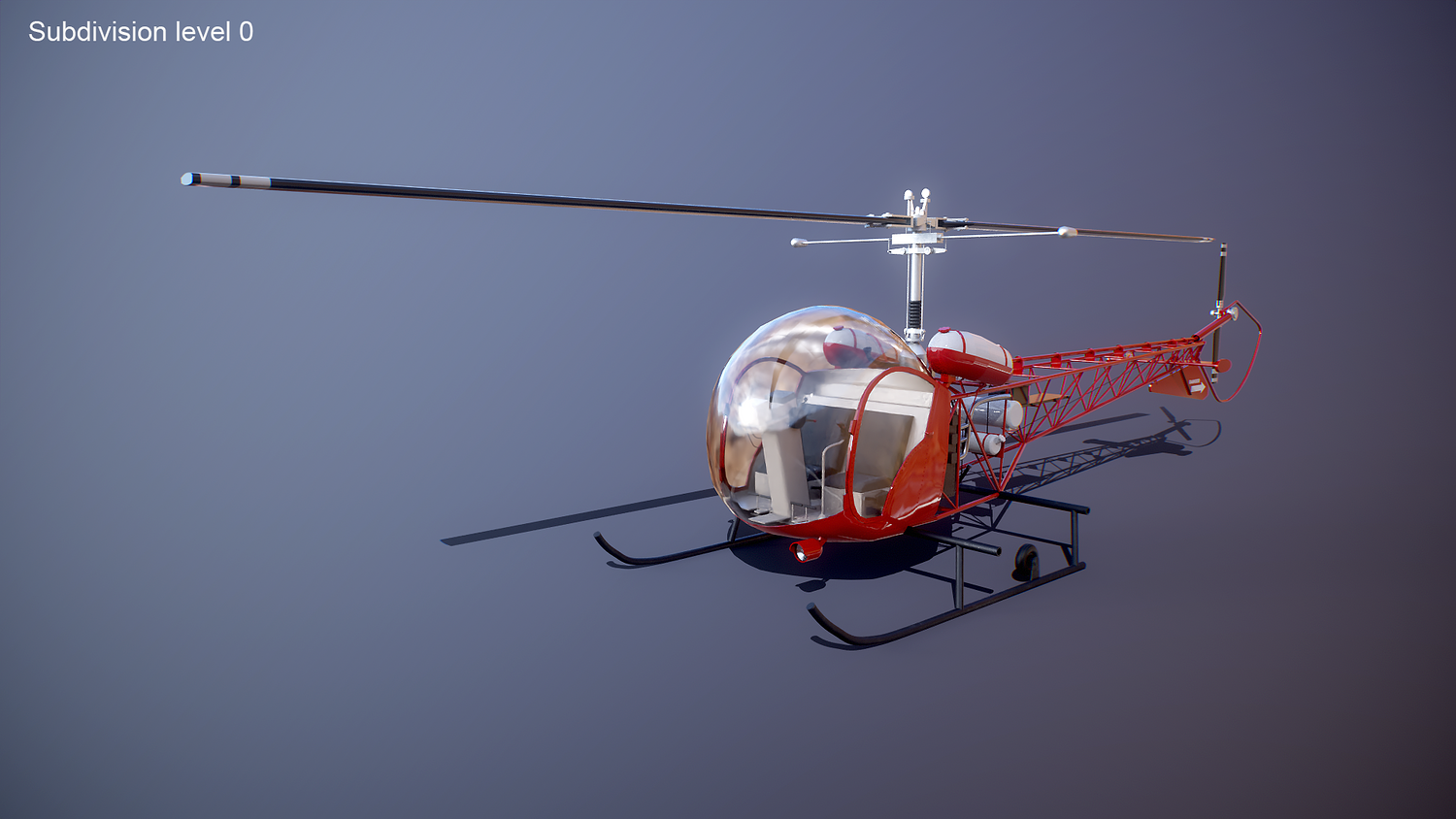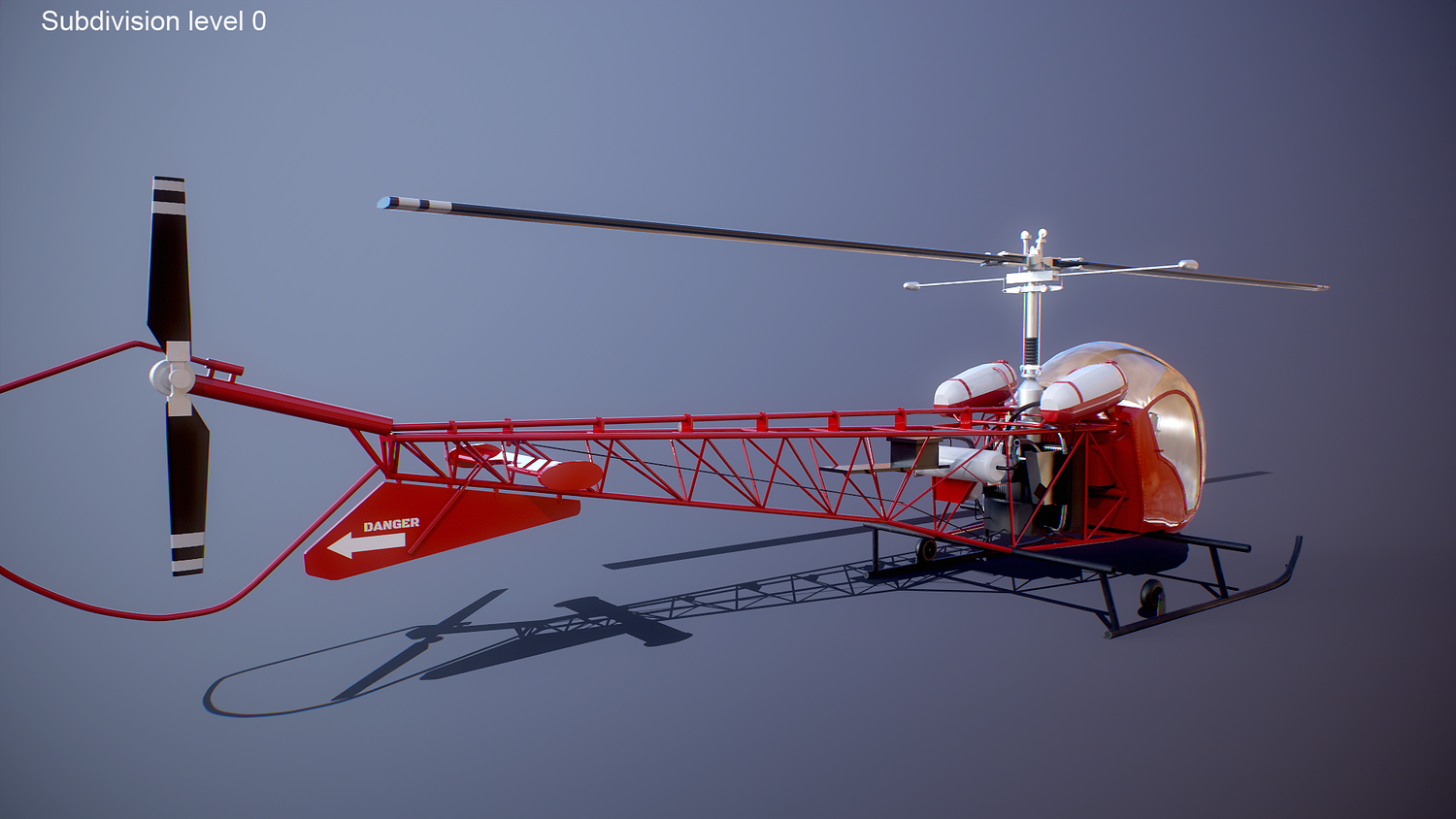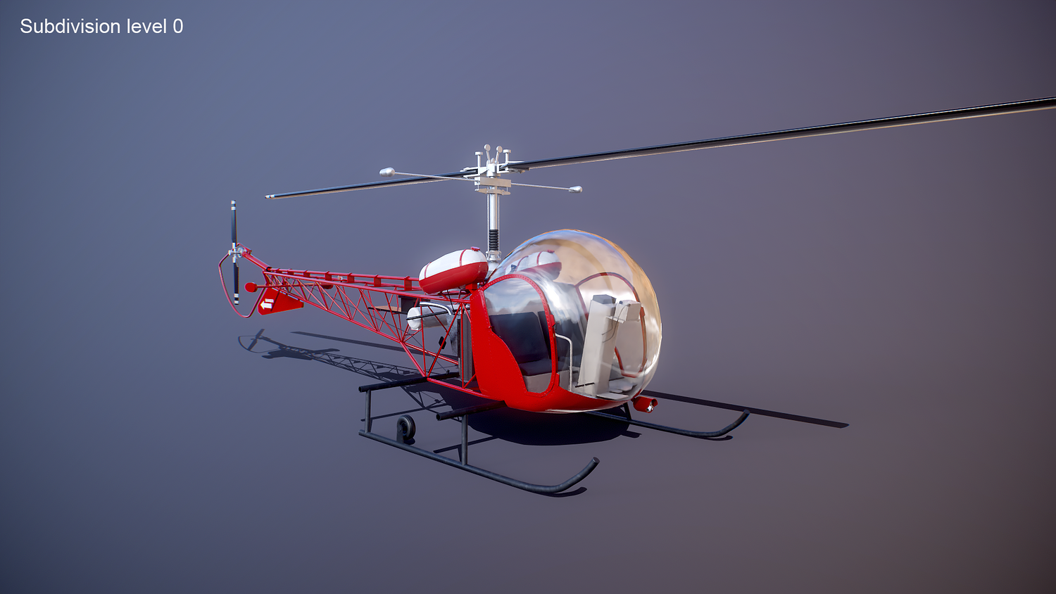 Detailed Bell 47 light helicopter 3D model with full PBR textures, accurate frame construction, realistic cockpit, and clean topology.