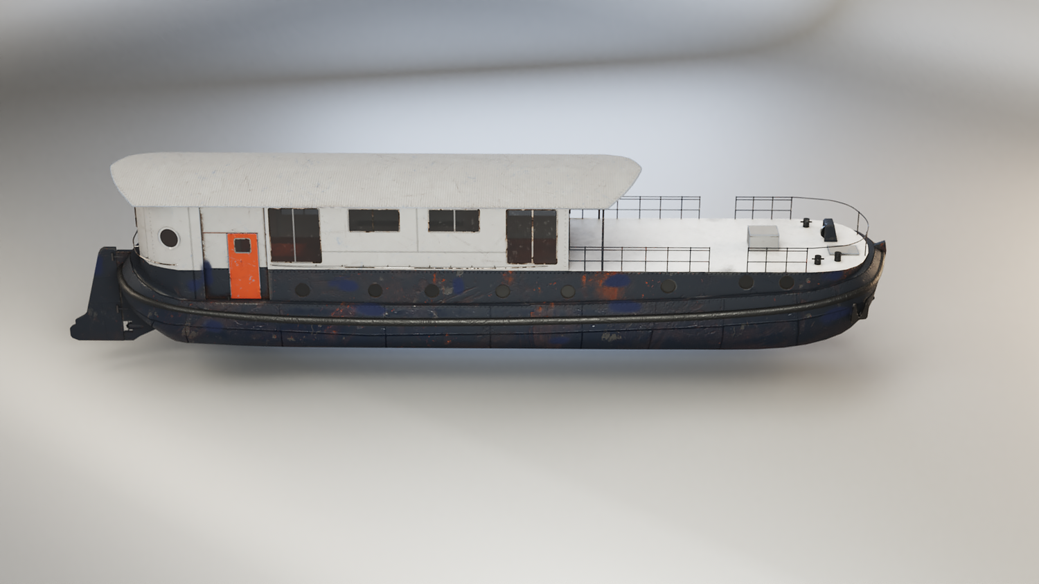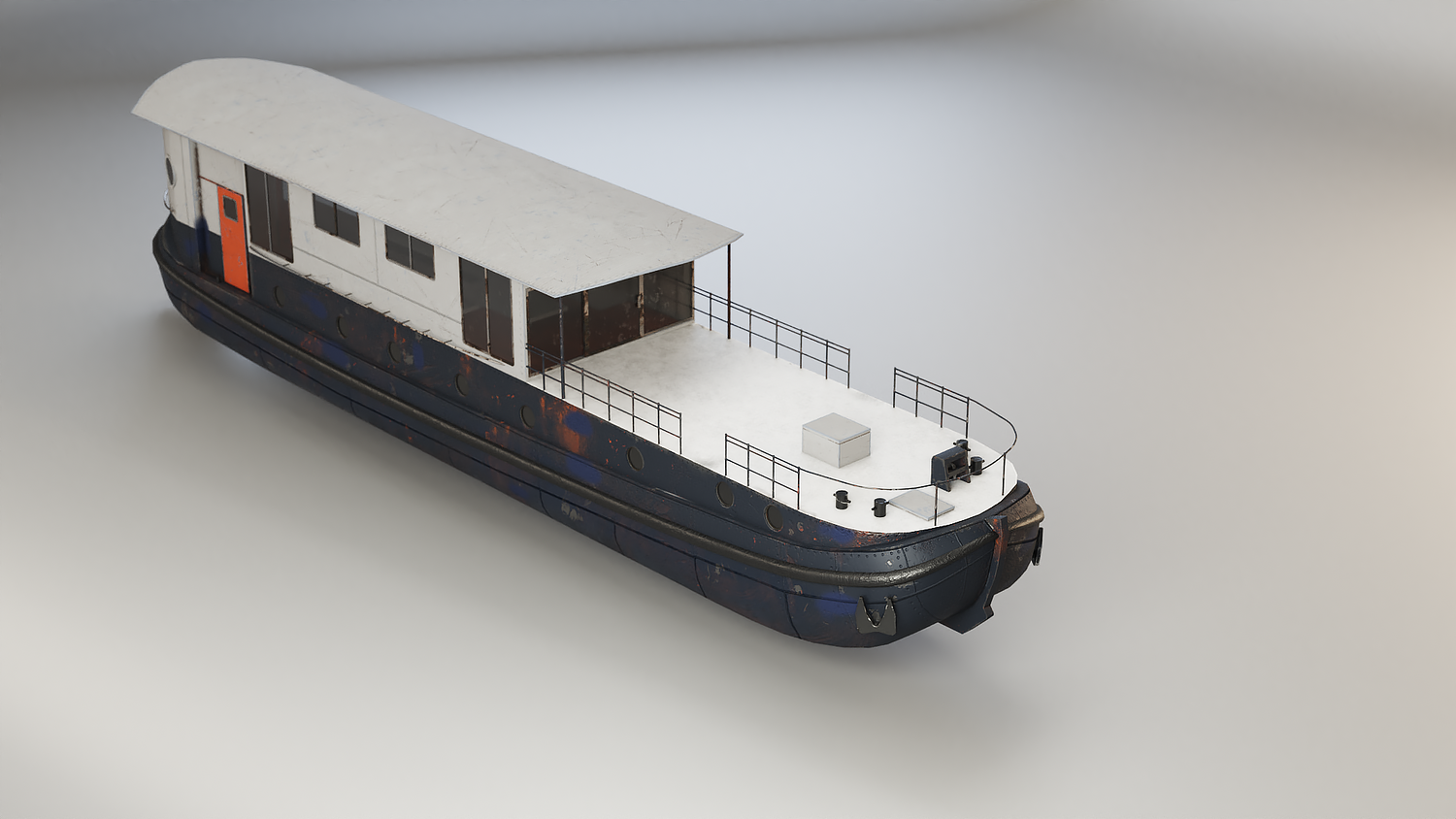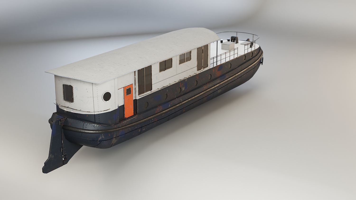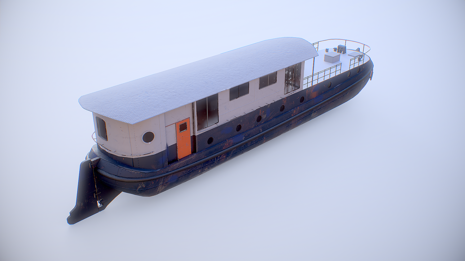 Aged Dutch Barge Houseboat 3D Model Modern Floating Home, PBR textured.