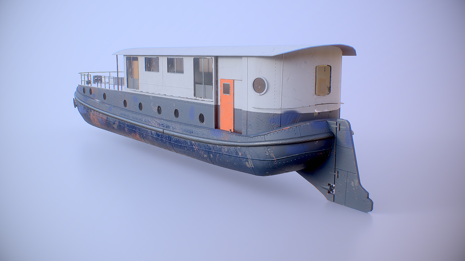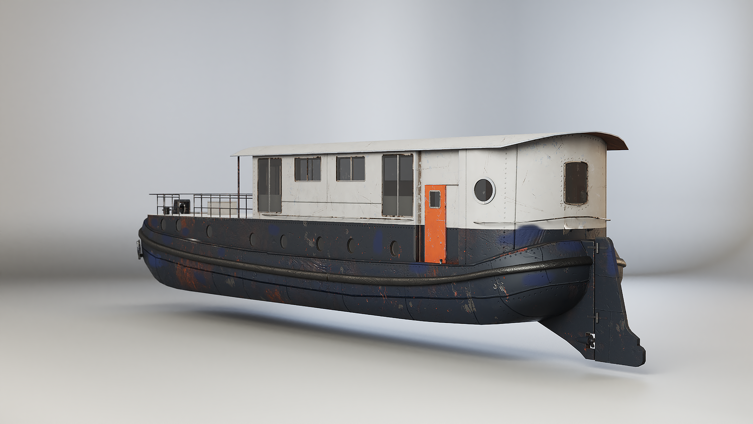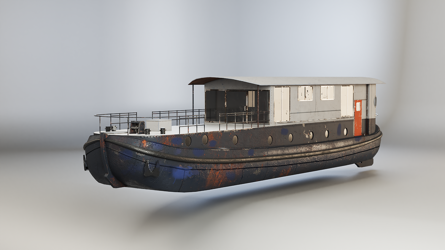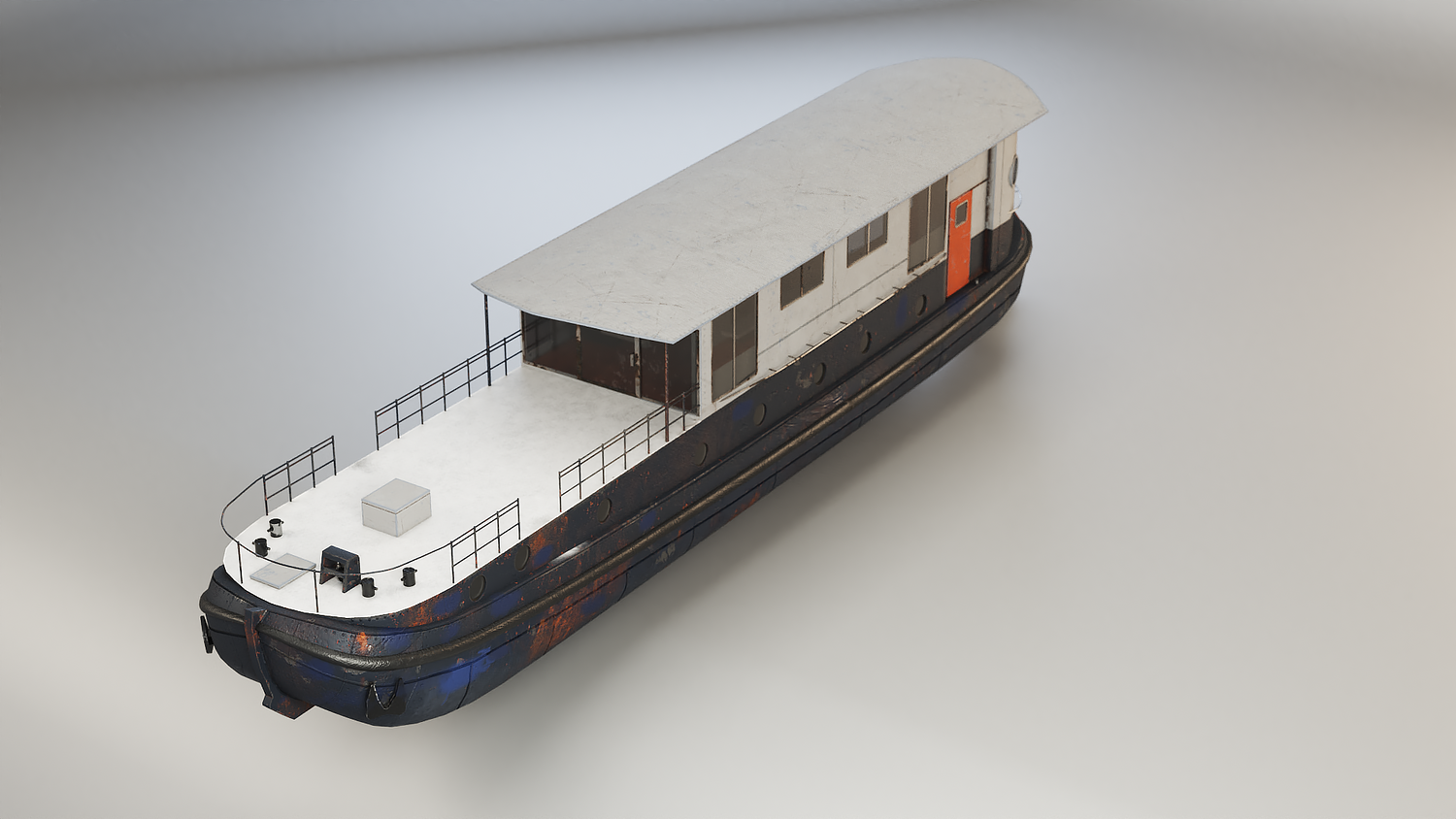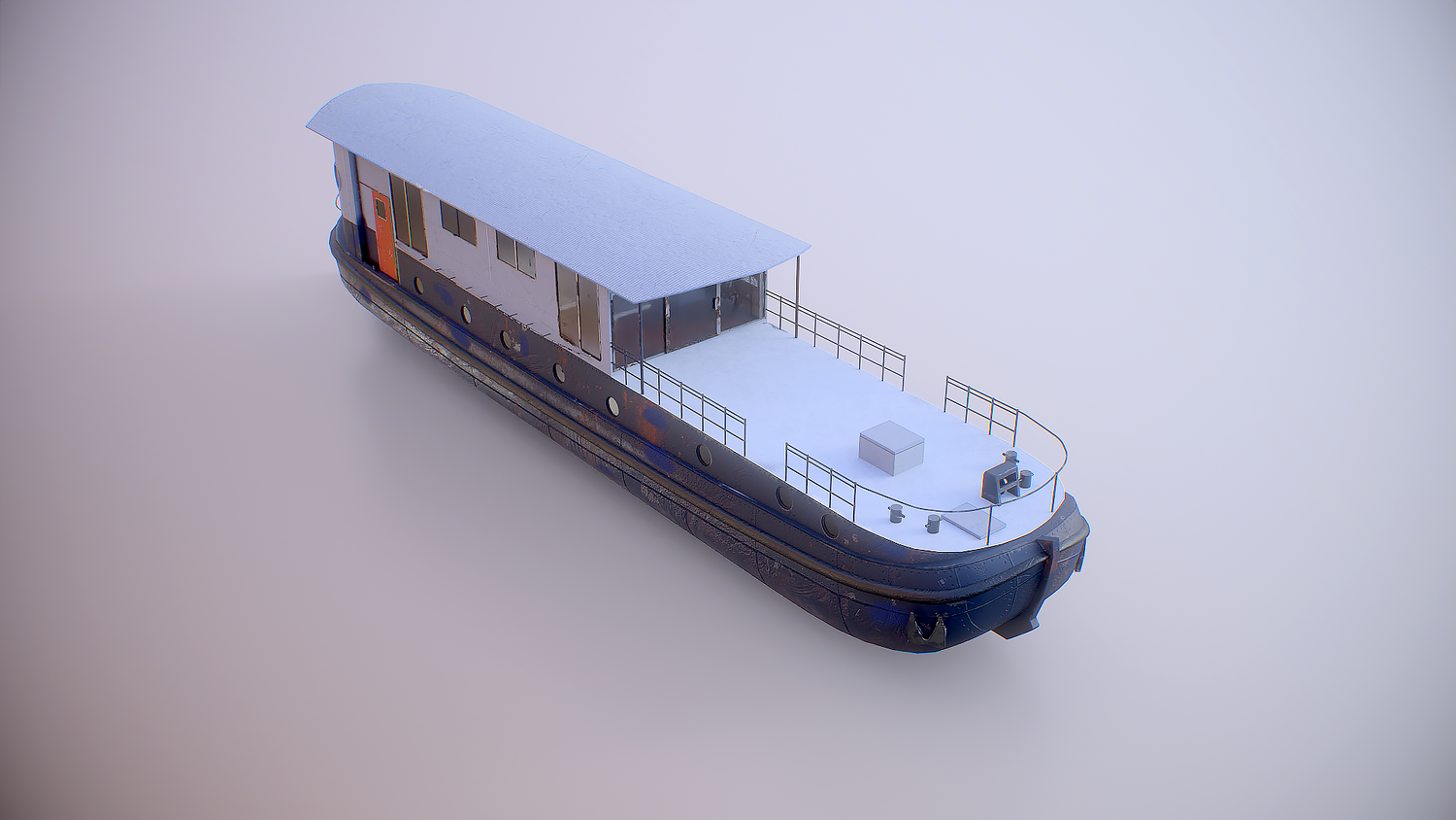 Aged Dutch Barge Houseboat 3D Model Modern Floating Home, PBR textured.