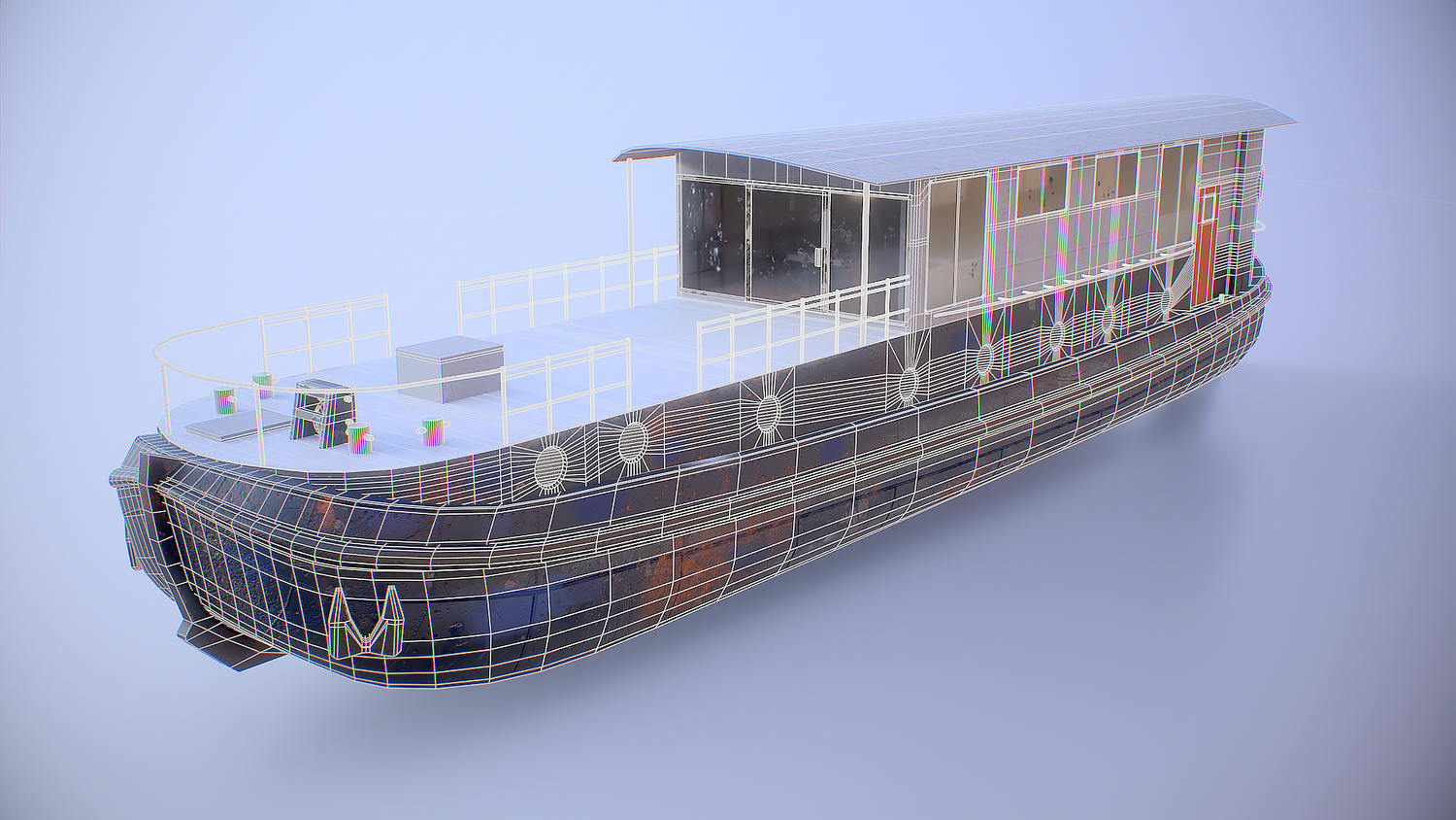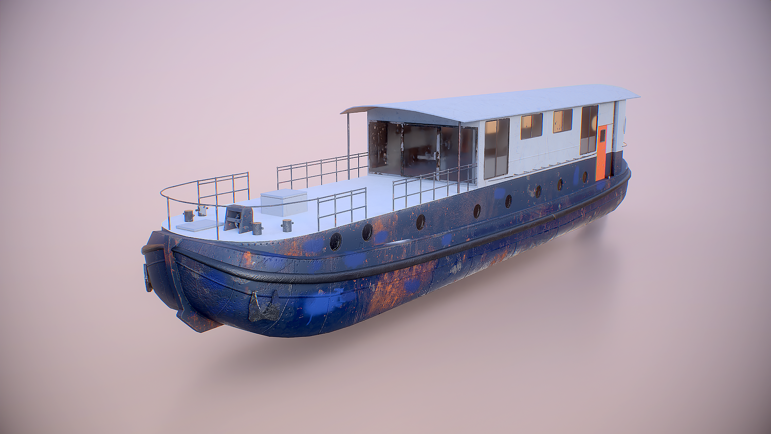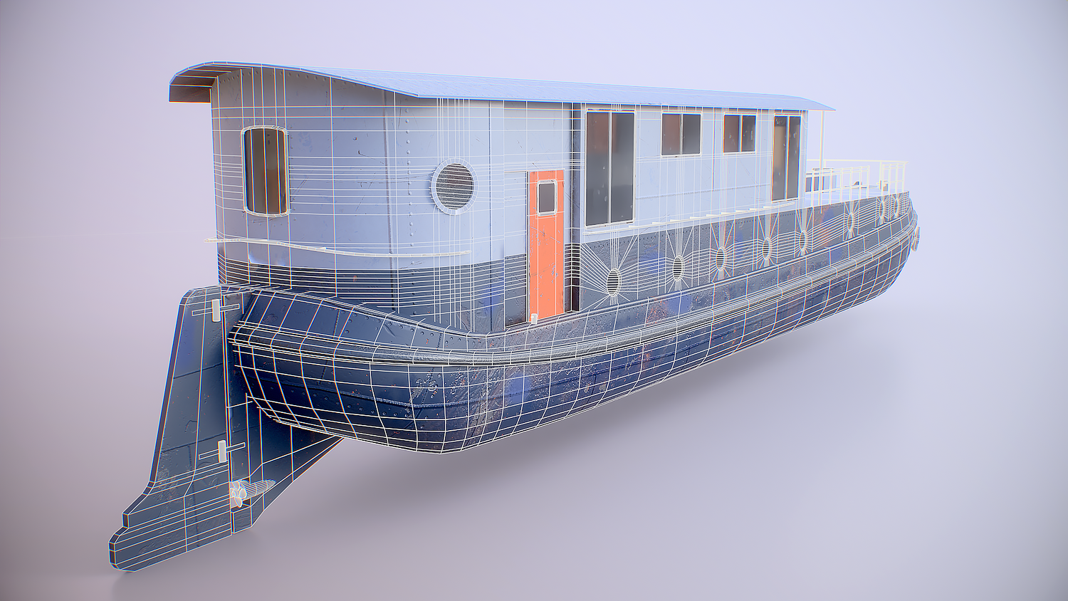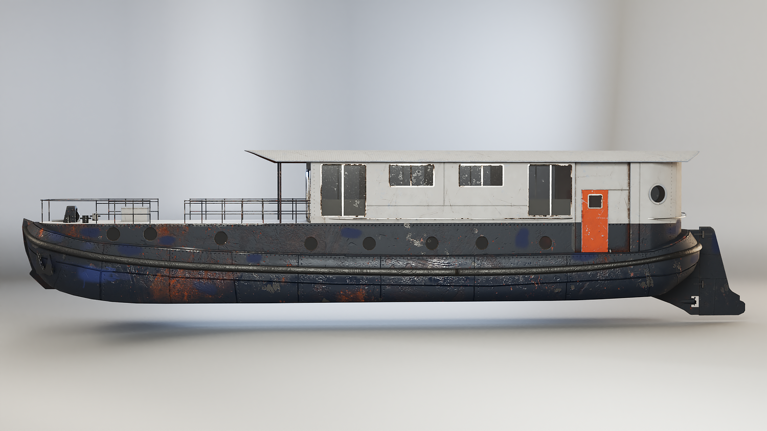 Aged Dutch Barge Houseboat 3D Model Modern Floating Home, PBR textured.