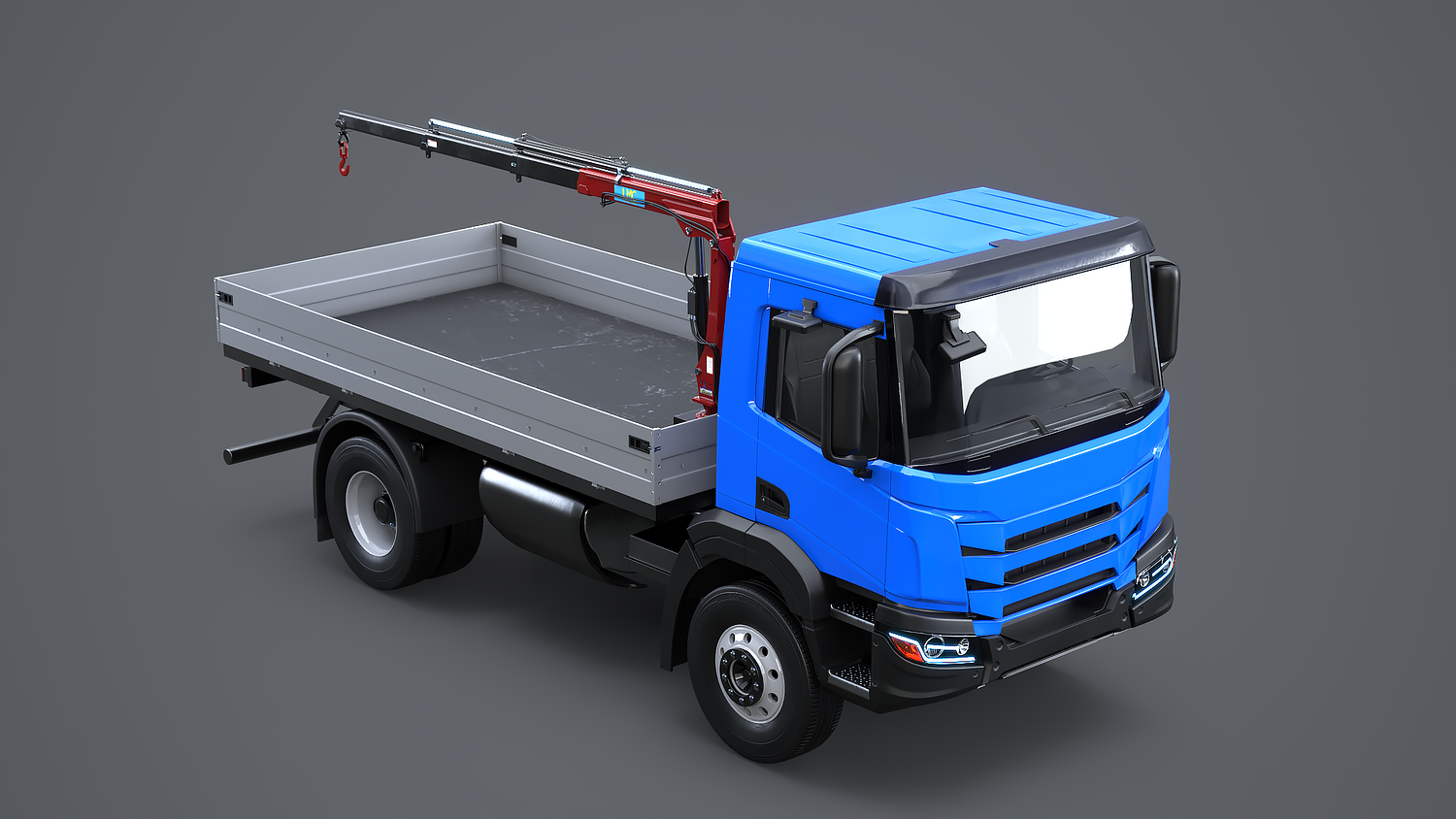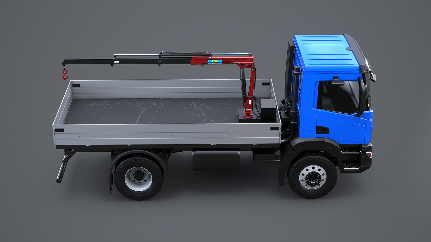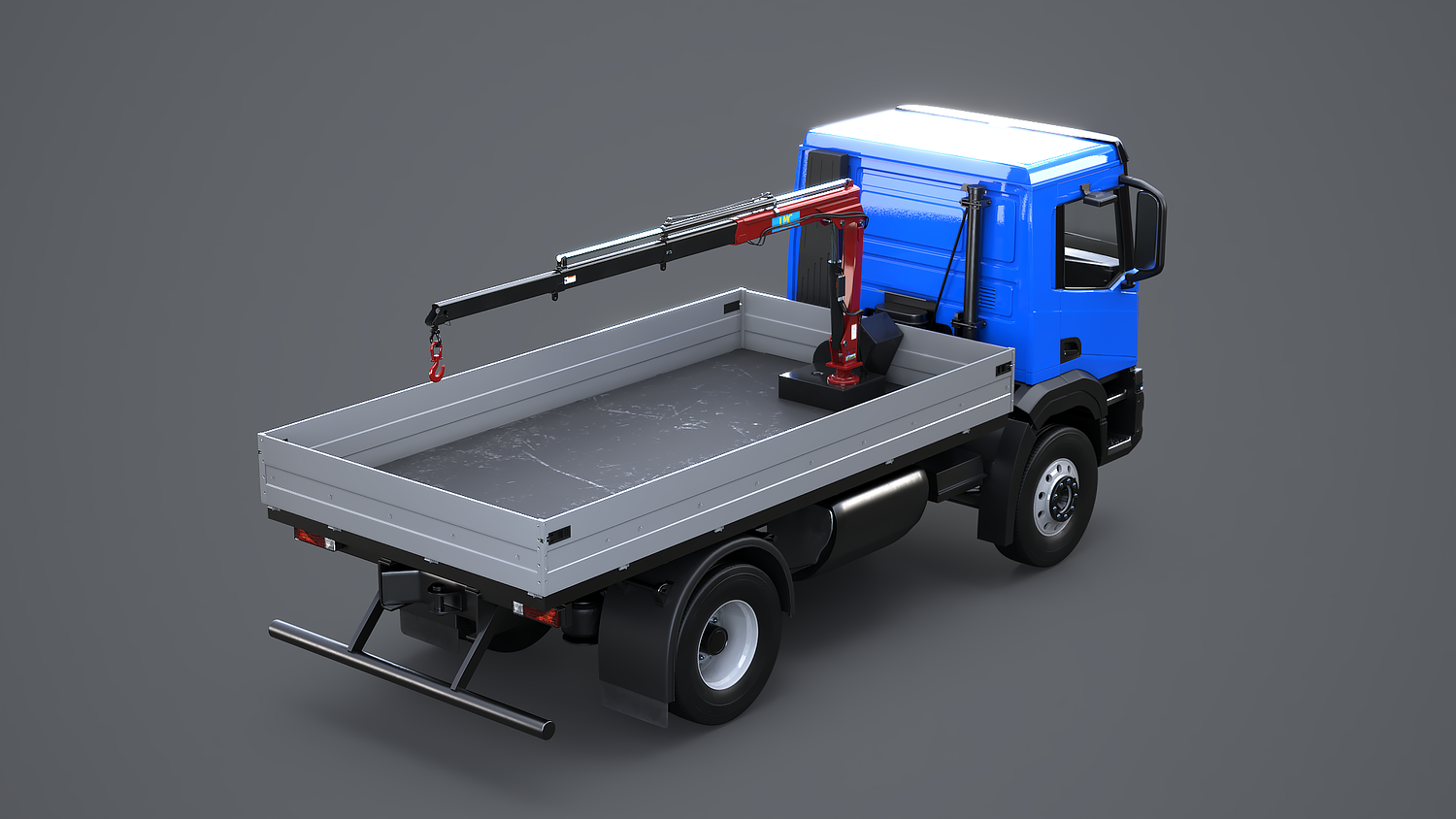Realistic Flatbed Truck with Loader Crane