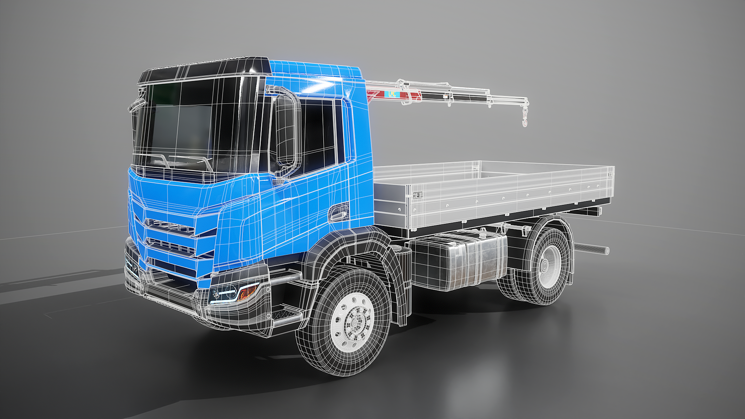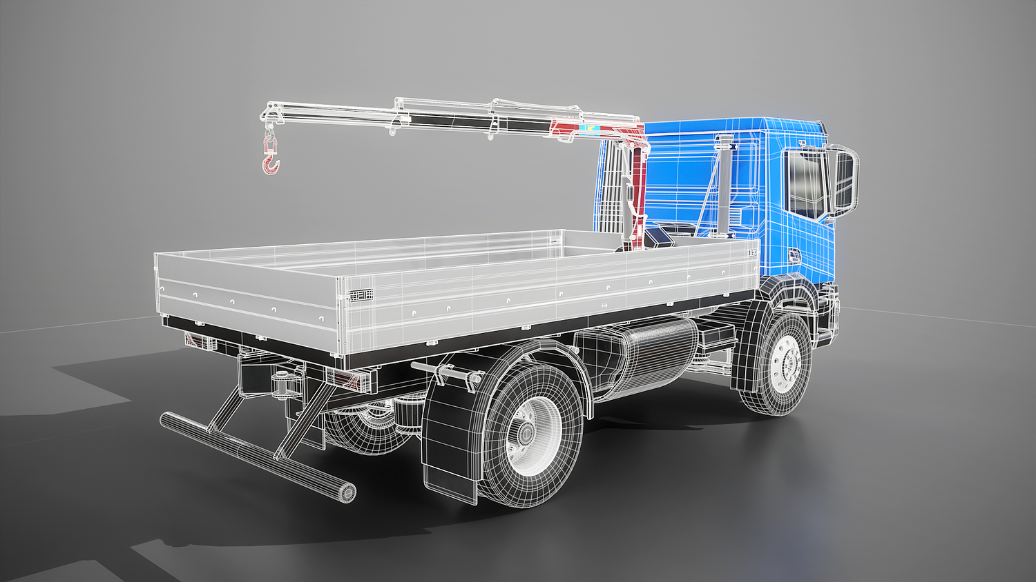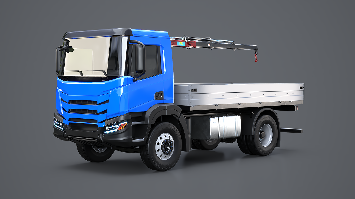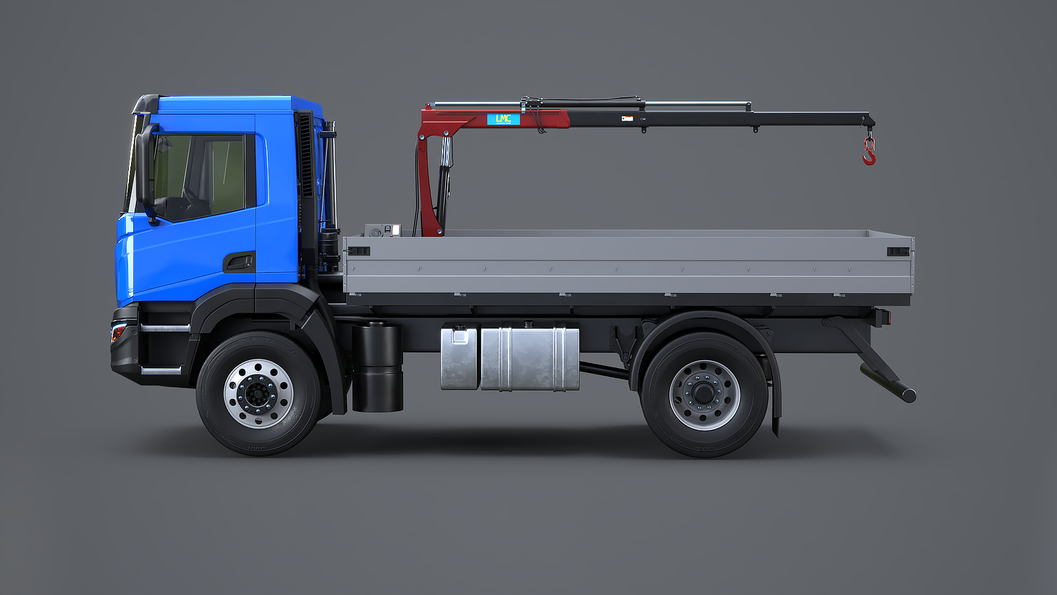 Realistic Flatbed Truck with Loader Crane