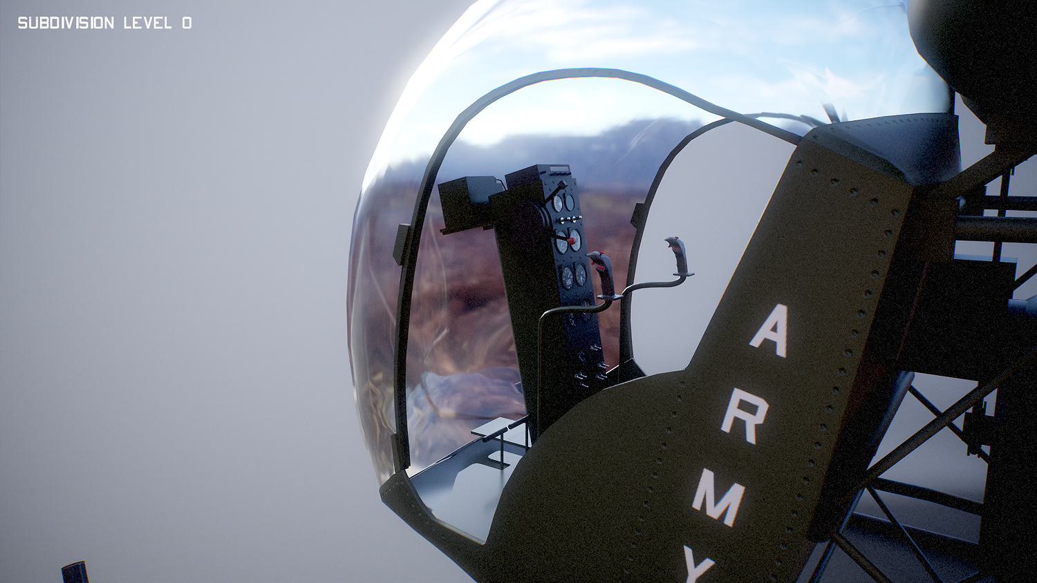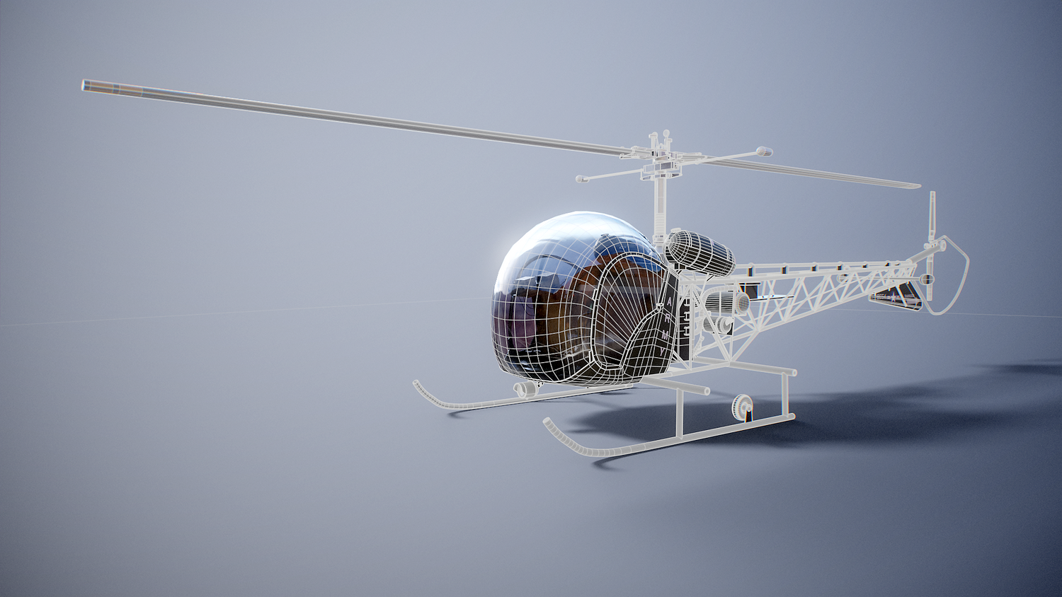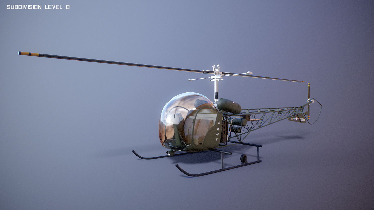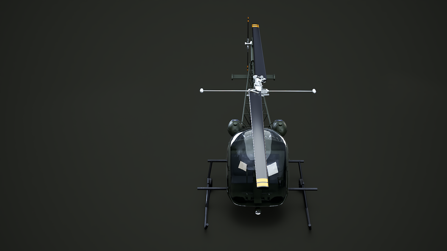 Detailed Bell 47/H-13 Light military light helicopter 3D model with full PBR textures, accurate frame construction, realistic cockpit, and clean topology.
