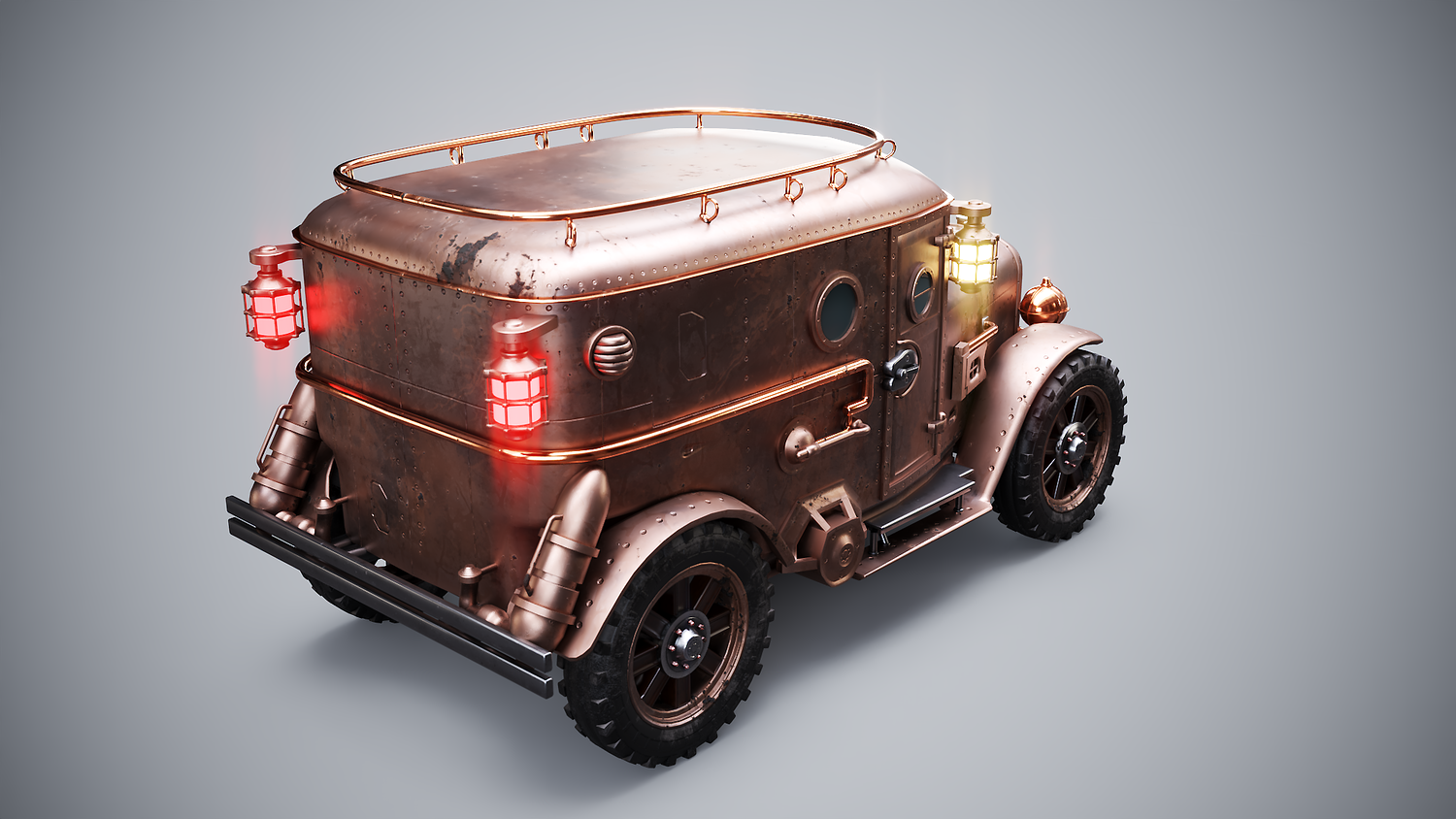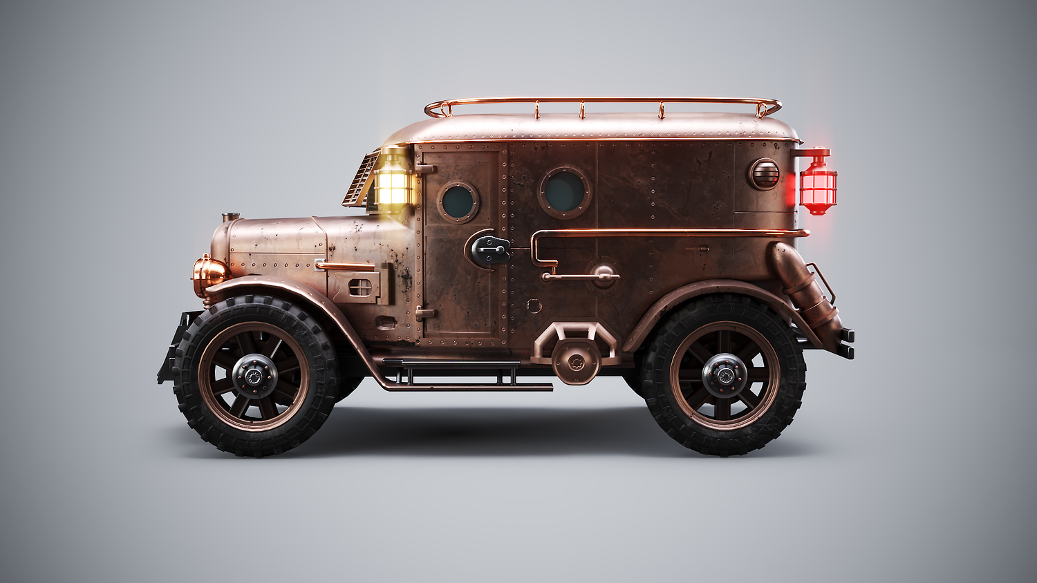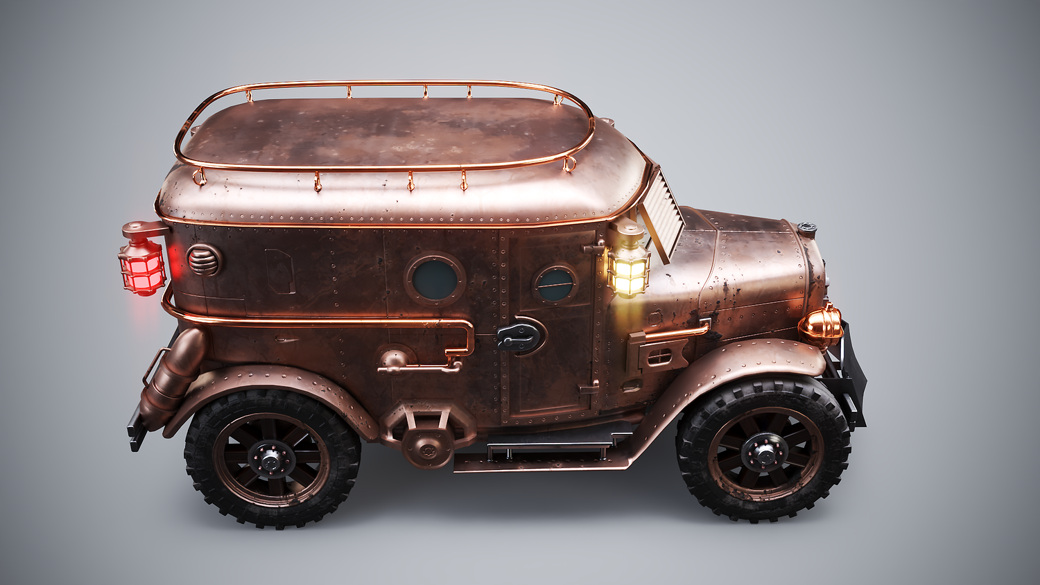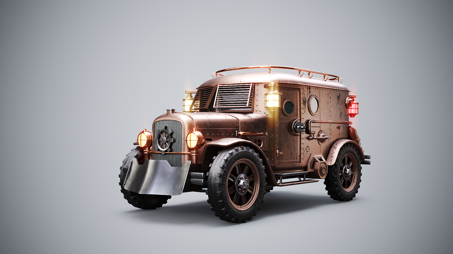 Steampunk Armored Van 3D Model LOD1