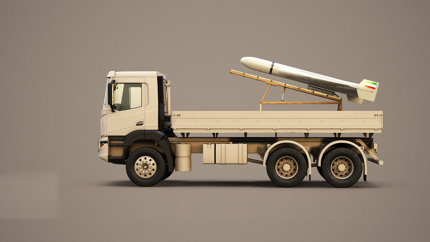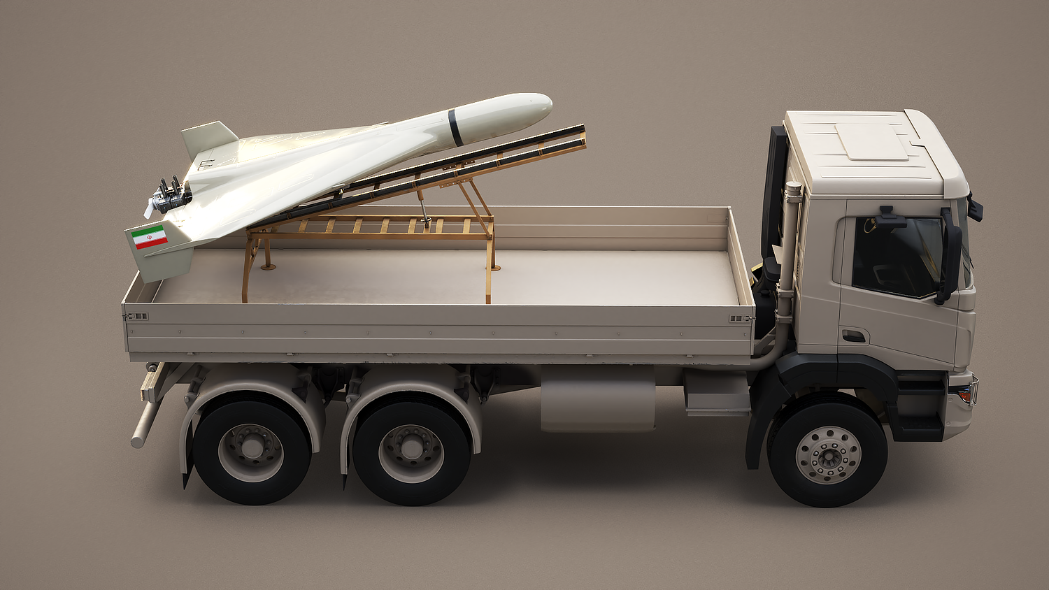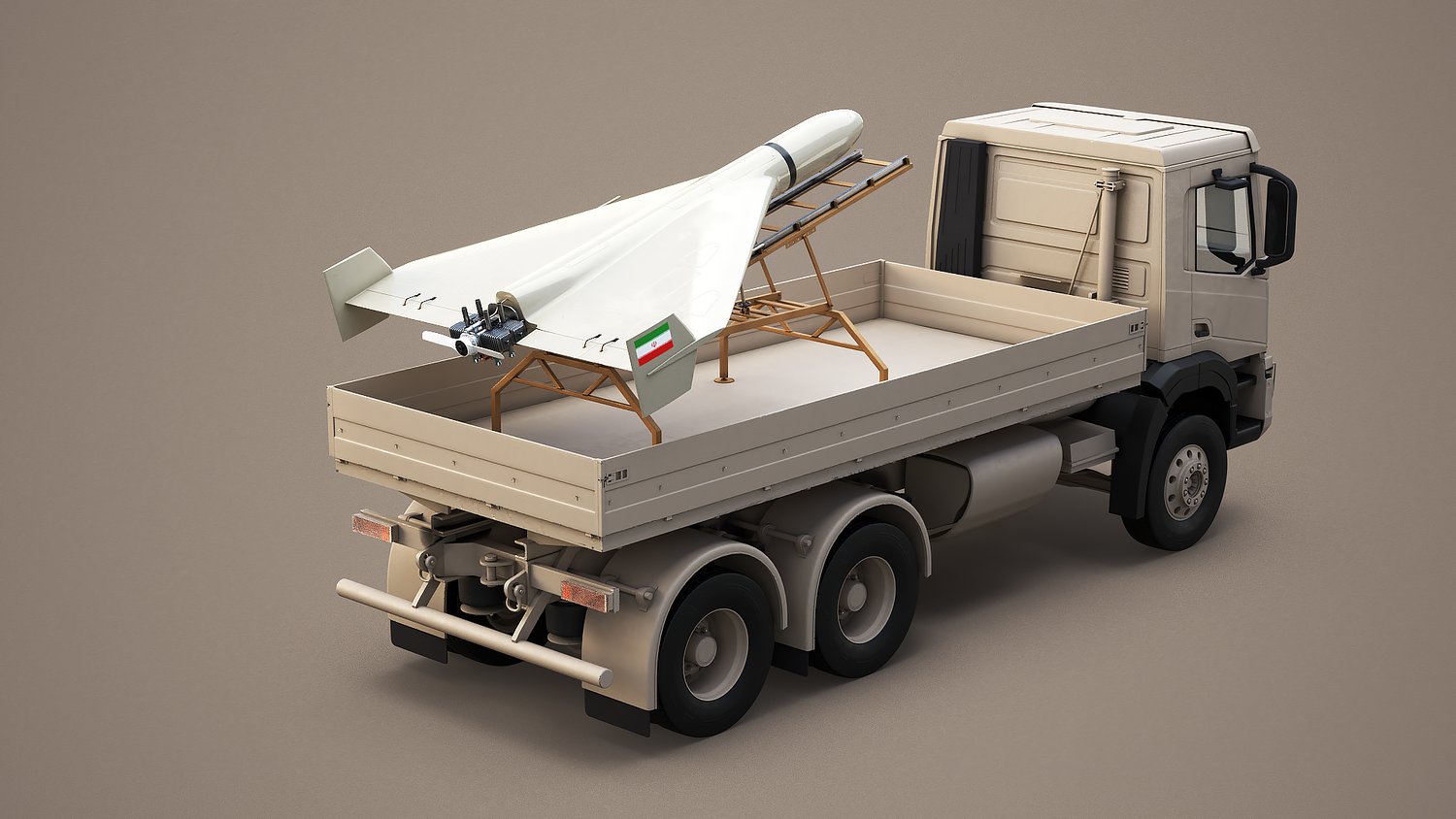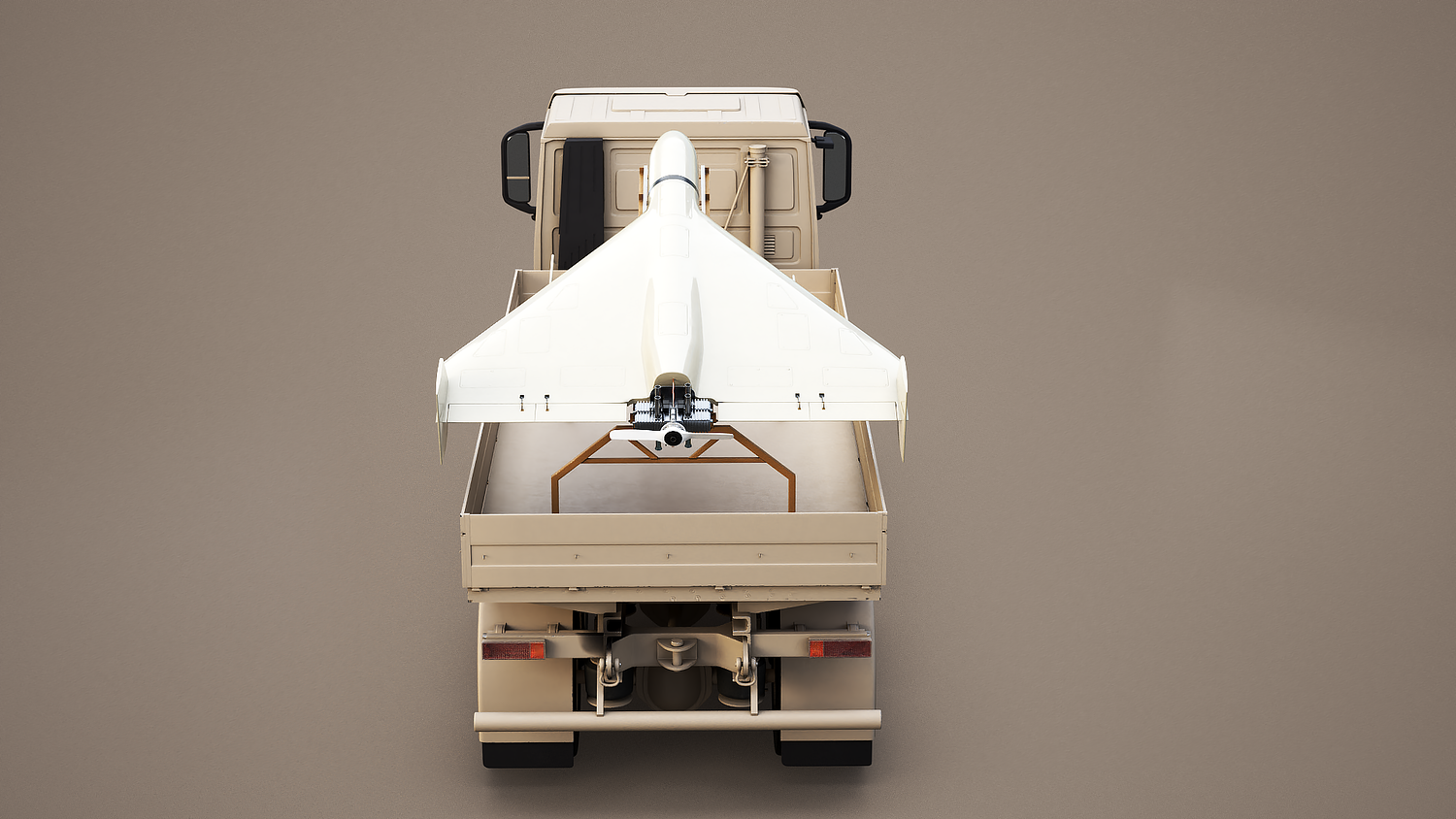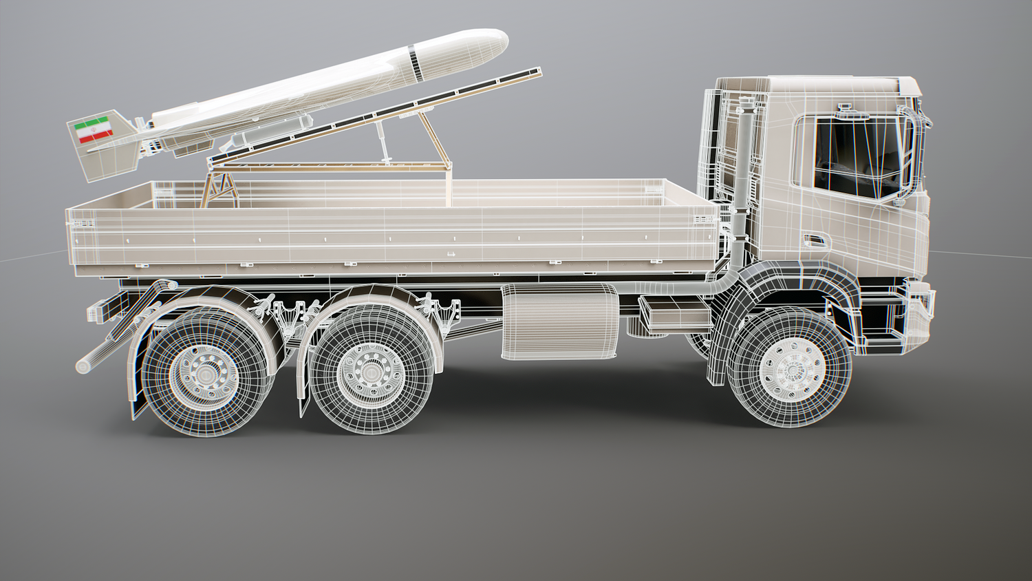 This highly detailed 3D model represents a military transport truck equipped with a Geran-2 (Shahed-136) drone launcher system.