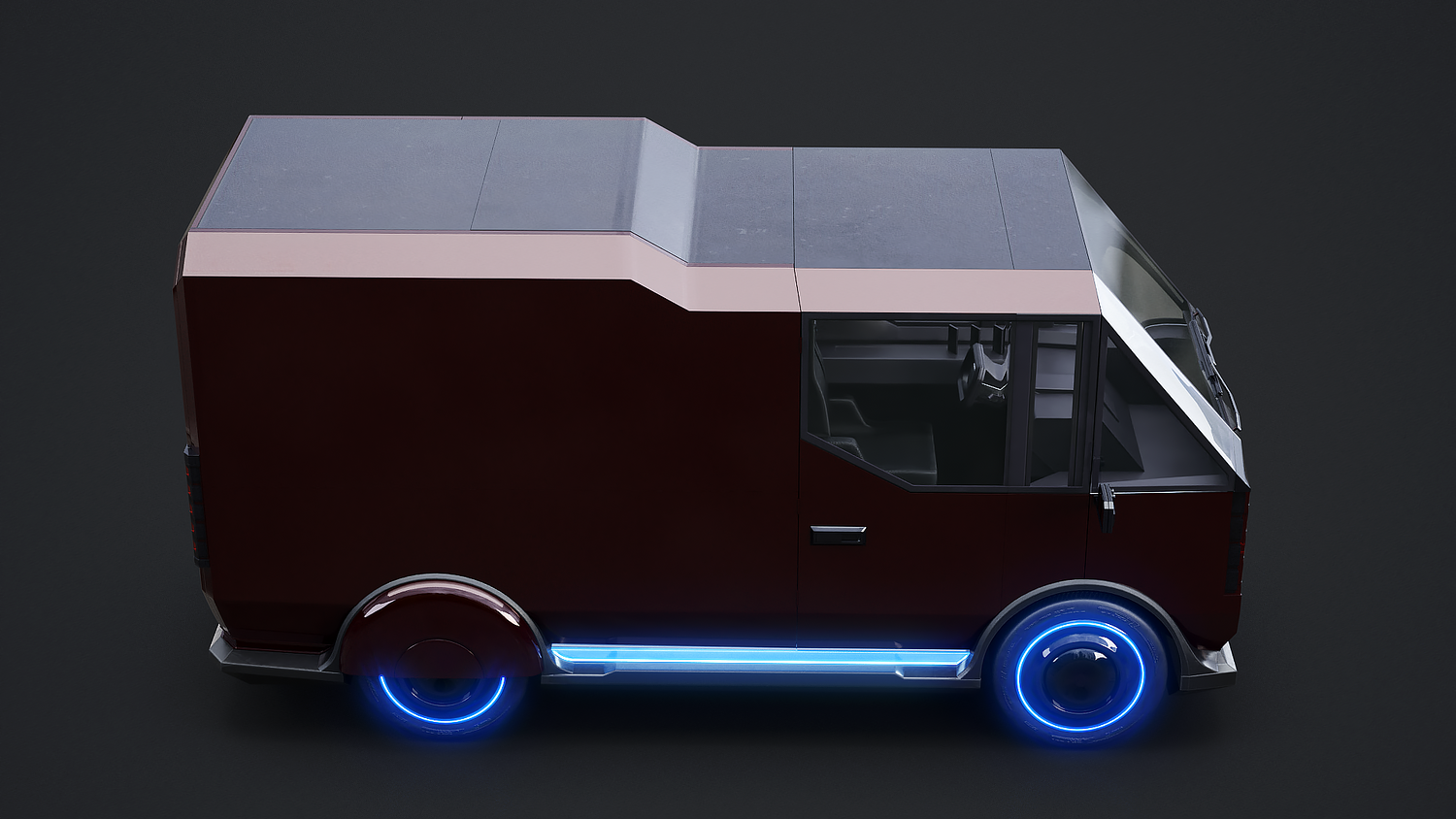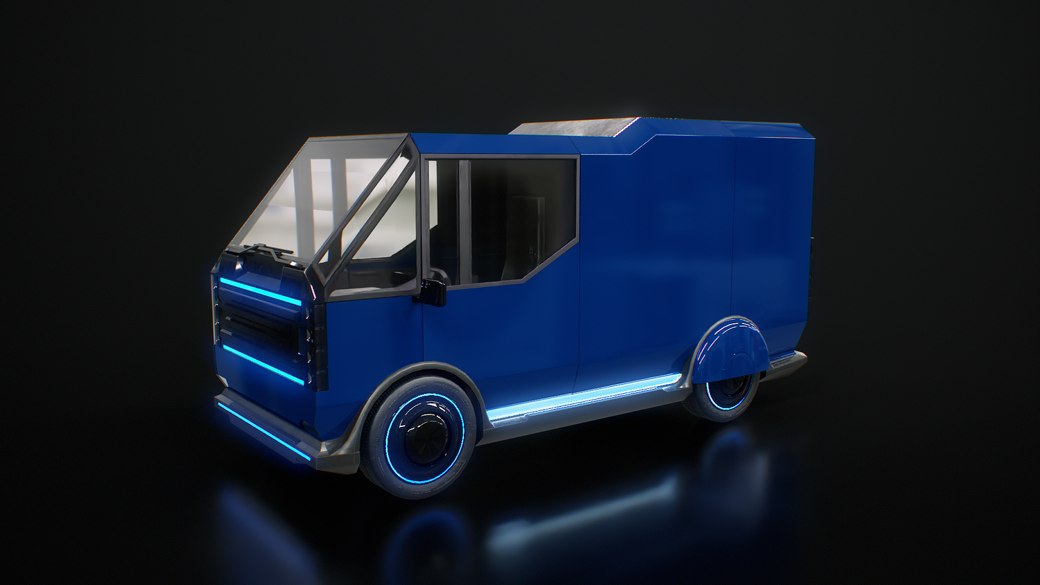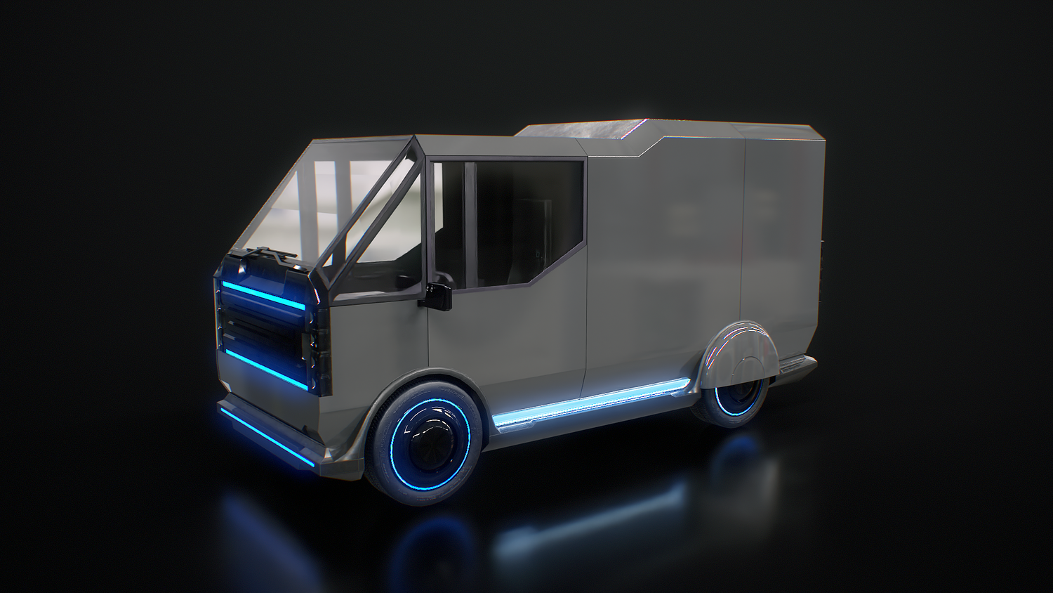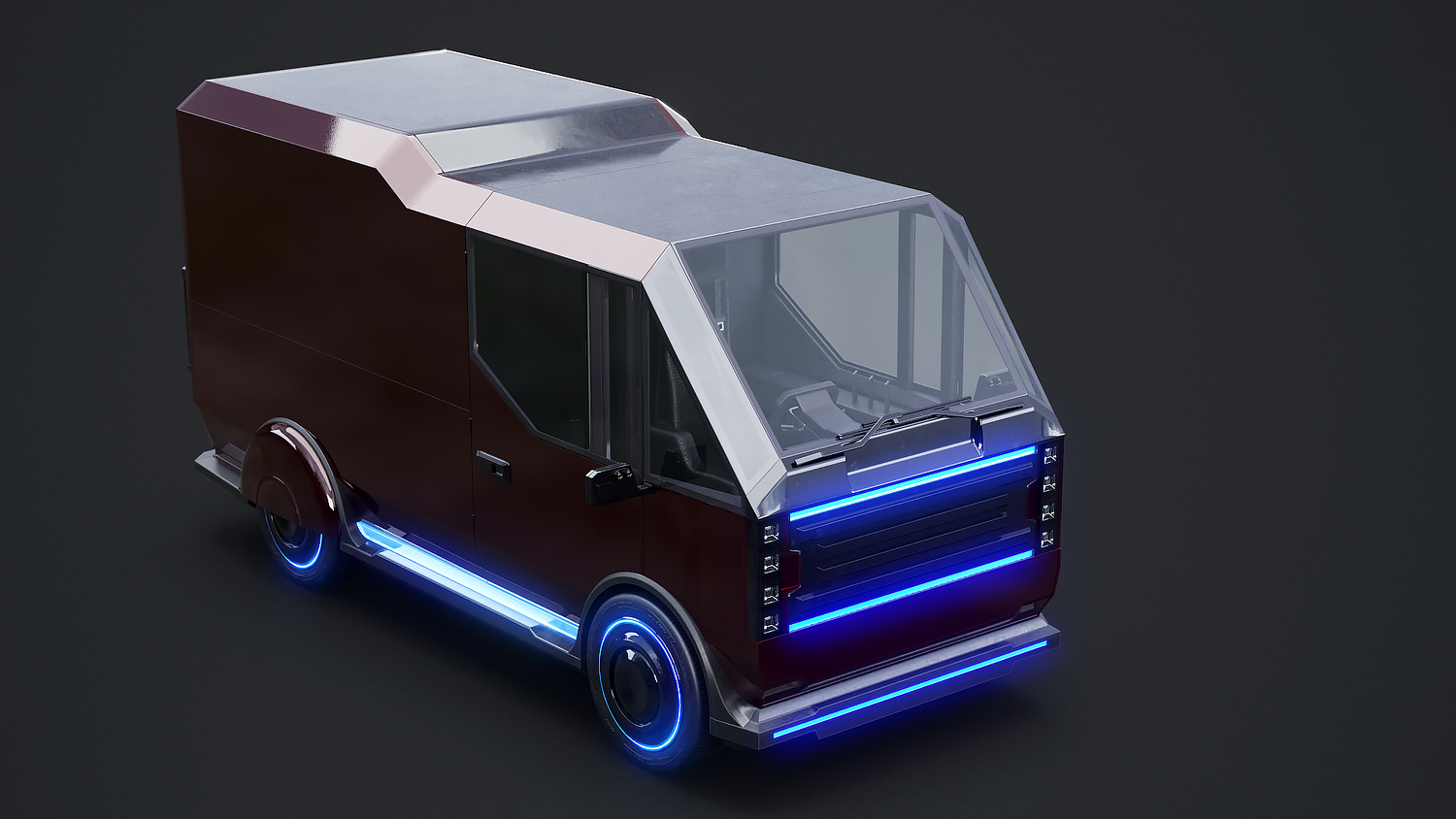 Futuristic Cyberpunk Delivery Van - Sci-Fi Electric Vehicle Concept