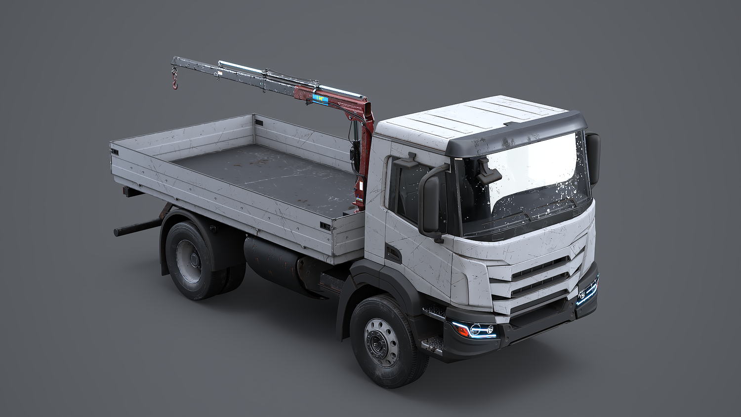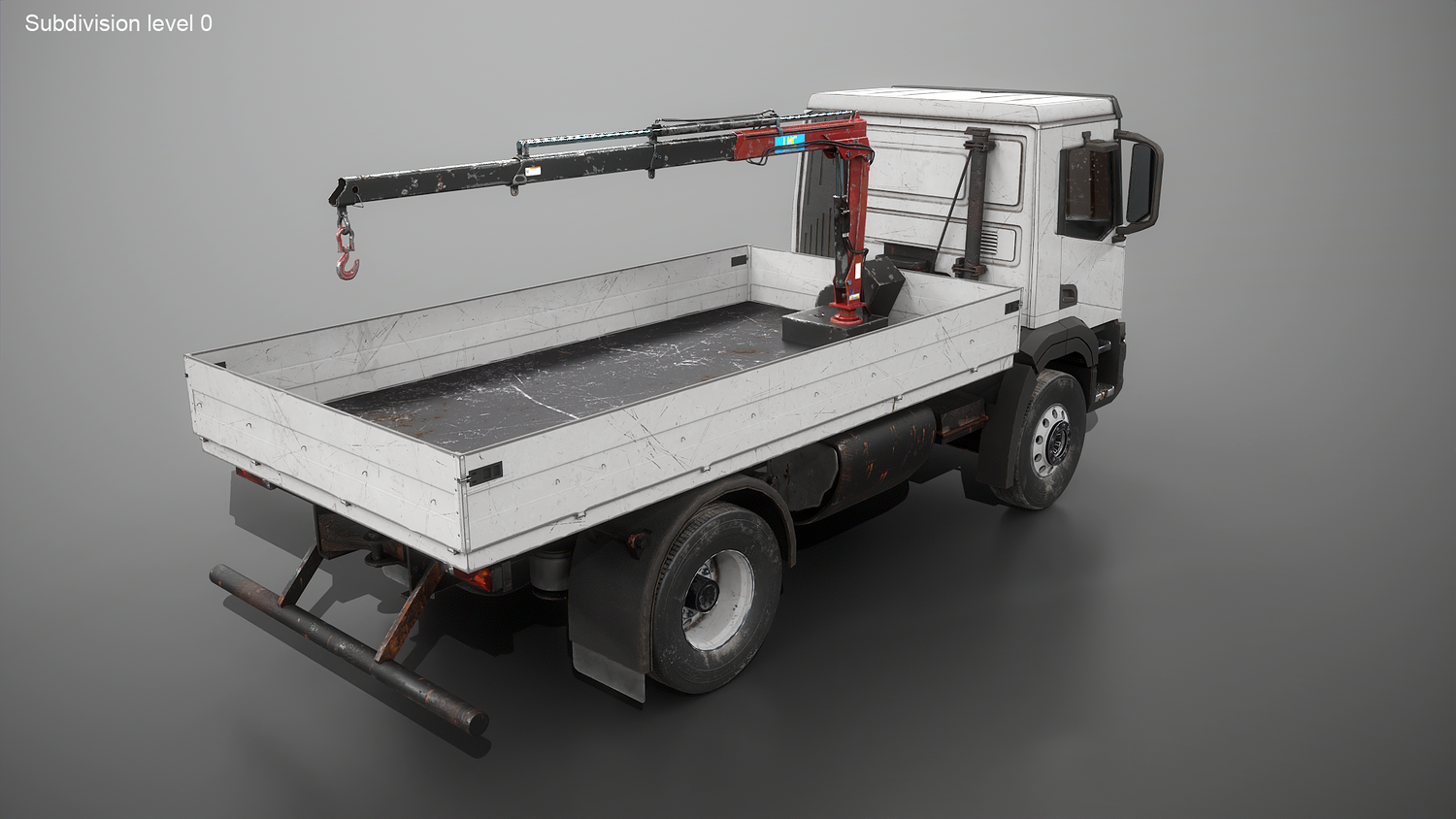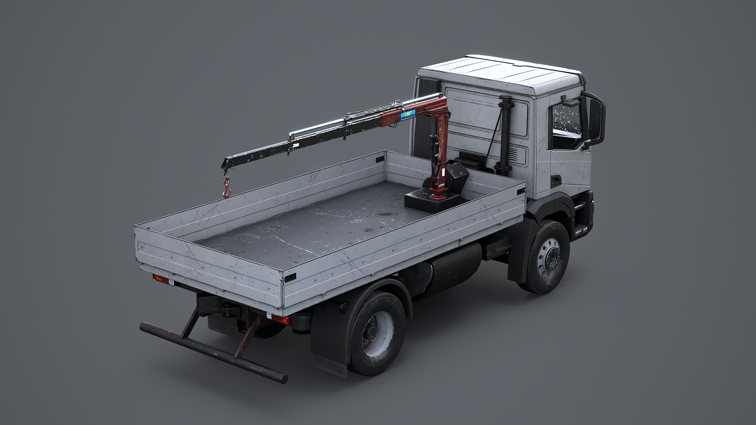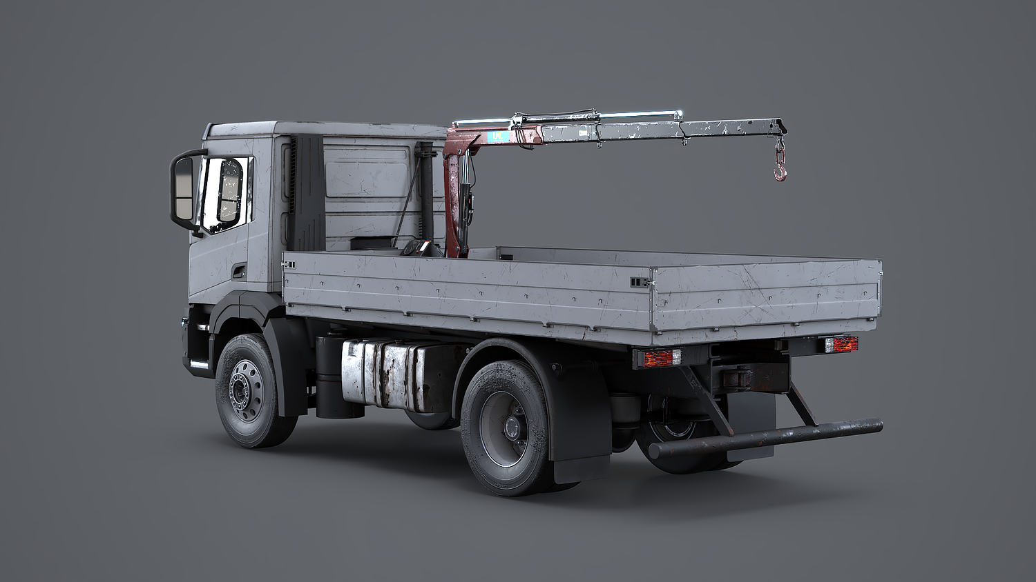 Realistic Flatbed Truck with Loader Crane Aged and Rusted.