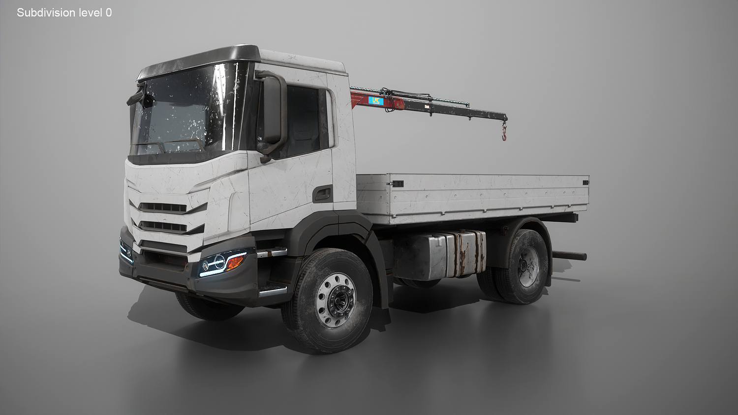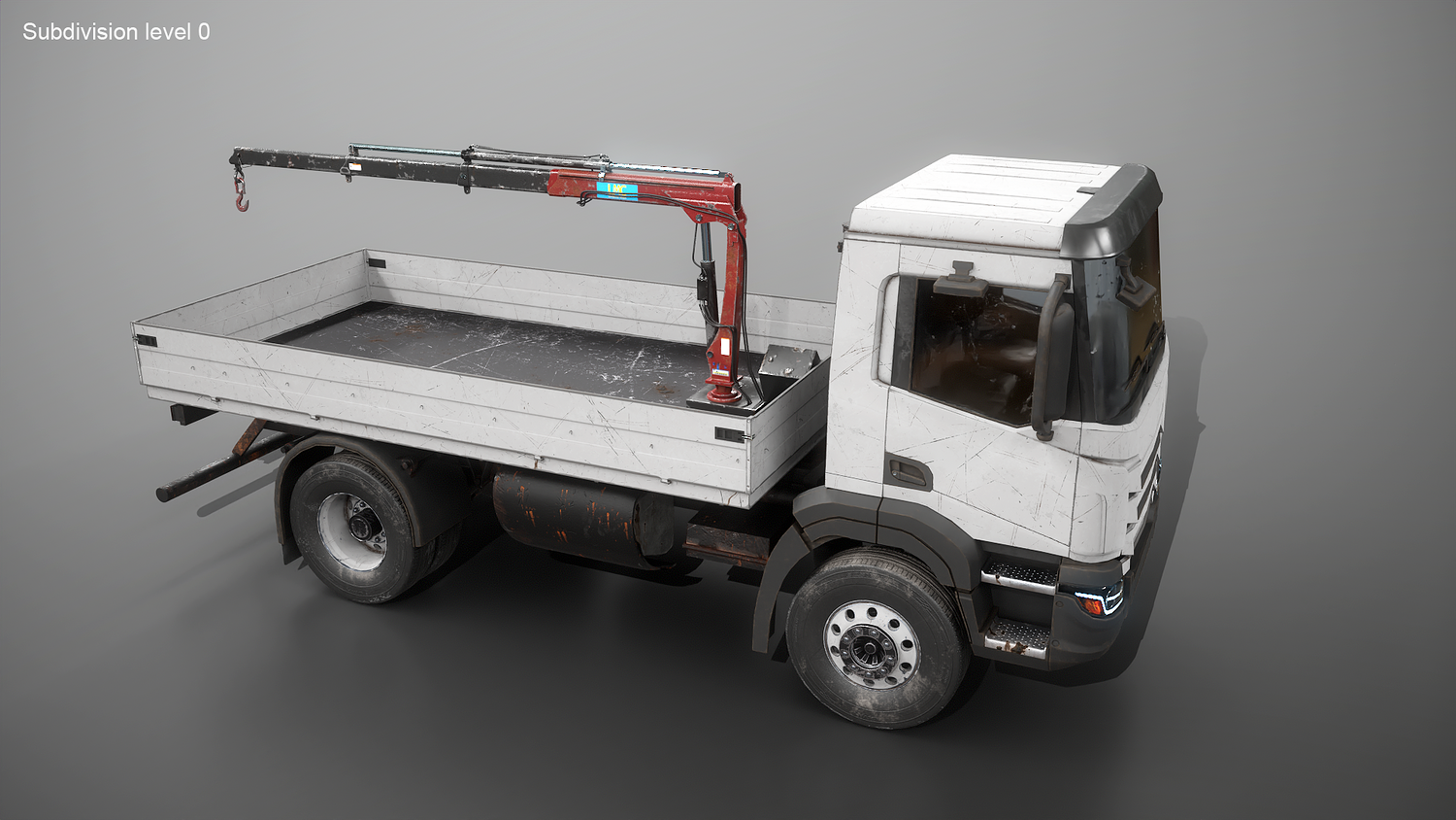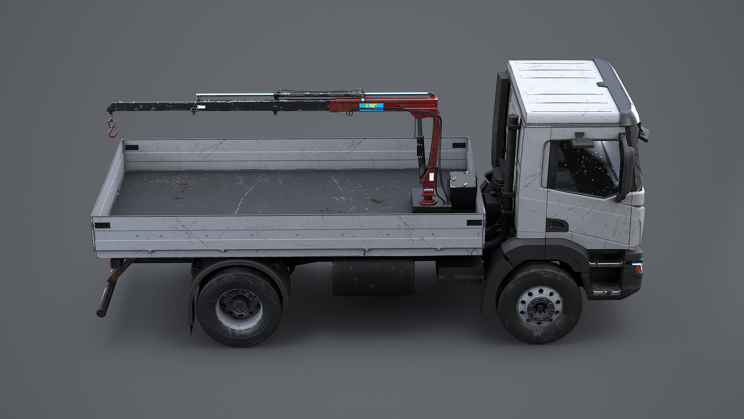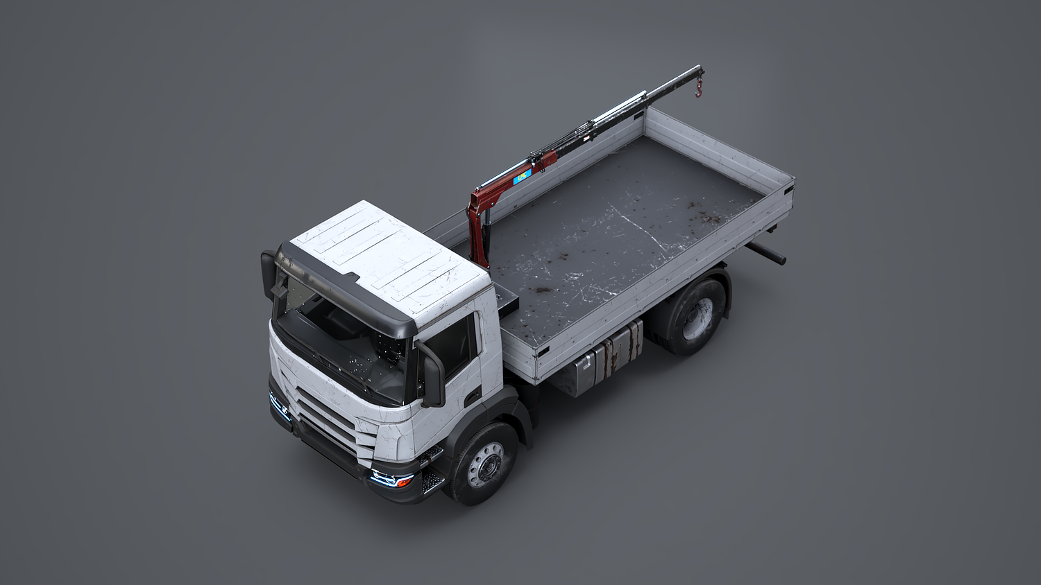 Realistic Flatbed Truck with Loader Crane Aged and Rusted.