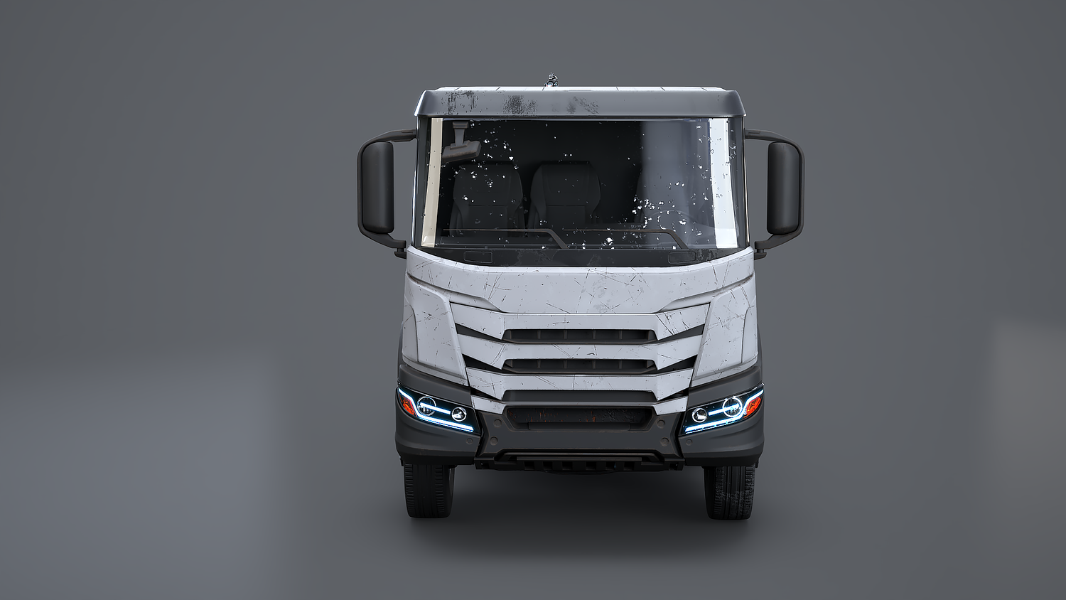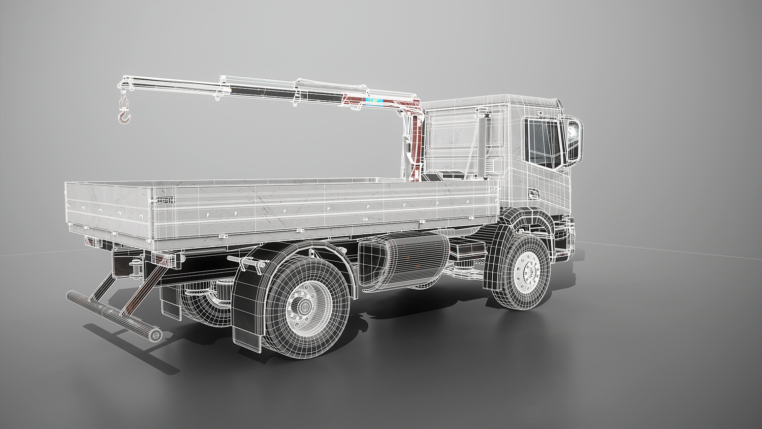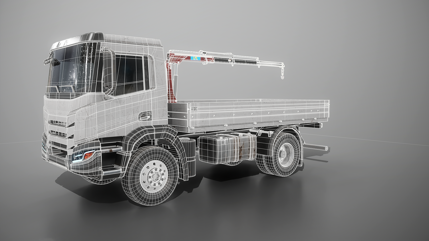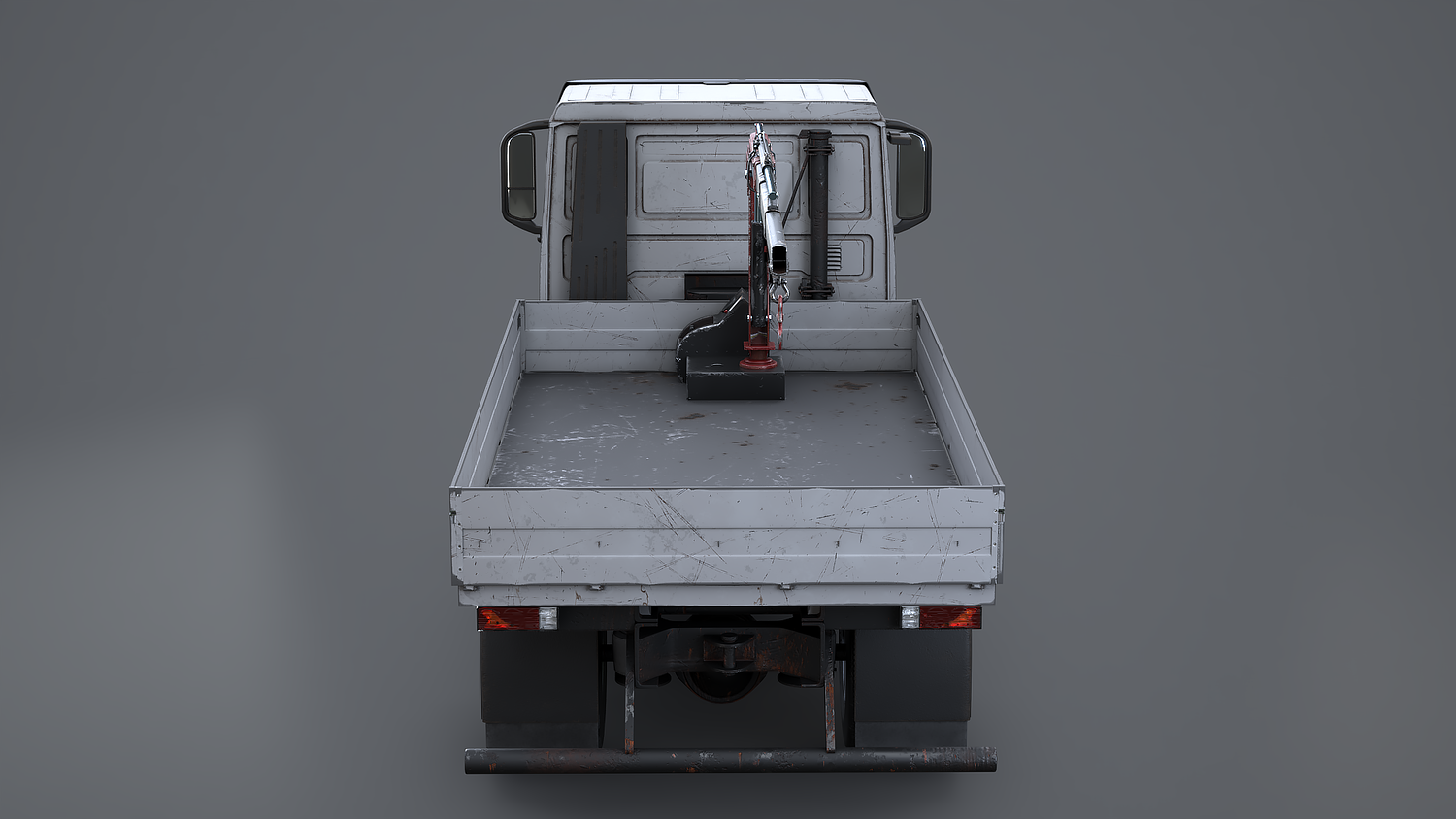 Realistic Flatbed Truck with Loader Crane Aged and Rusted.