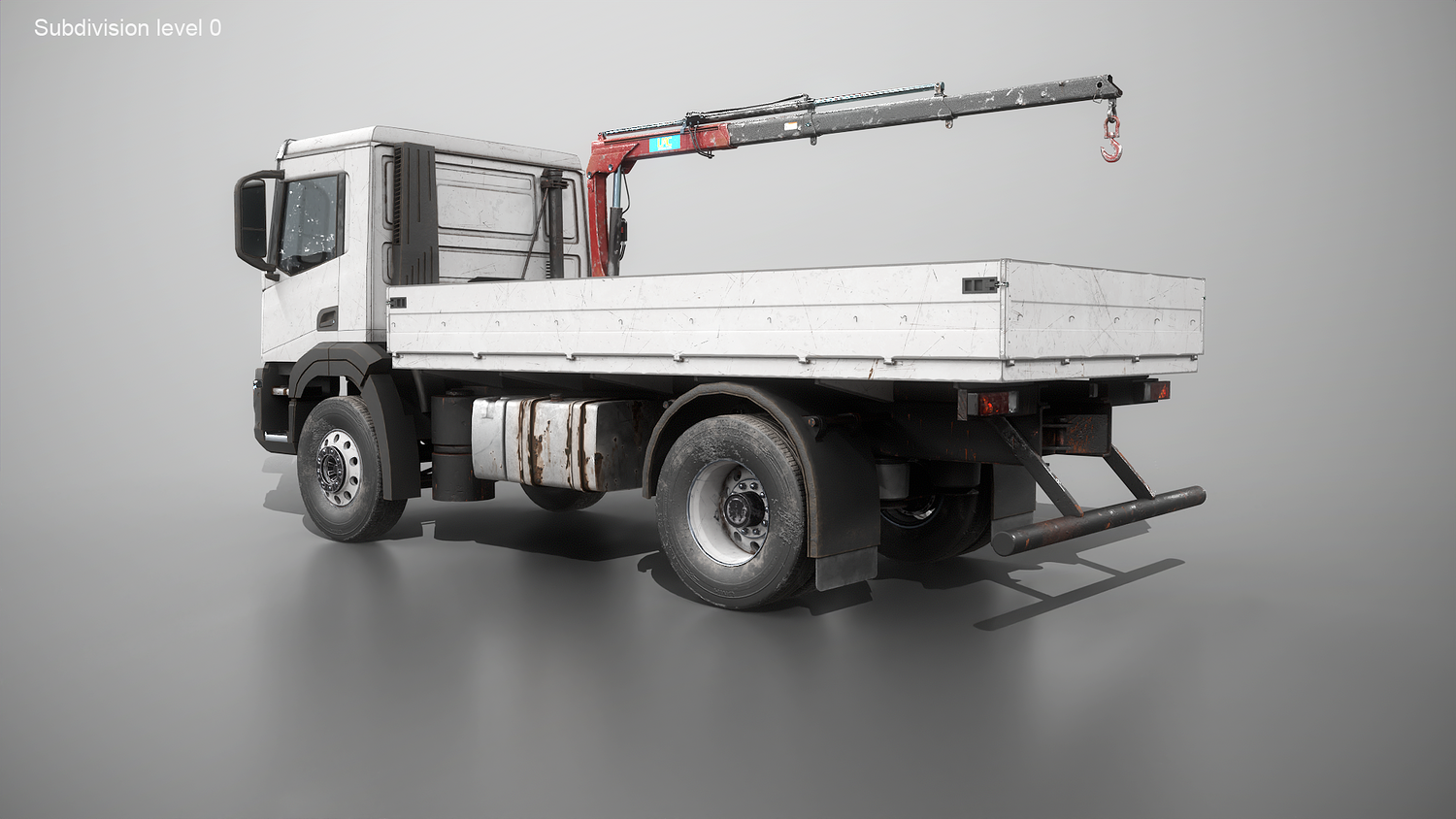 Realistic Flatbed Truck with Loader Crane Aged and Rusted