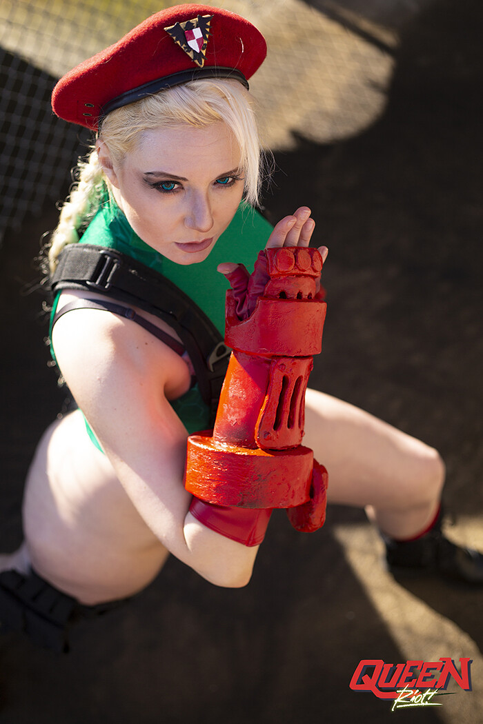 Photo reference Queen Riot poses in a series of photos dressed as beloved fighting game character, Cammy White! Perfect for all Street Fighter fans. This digital picture pack contains 91 4K resolution images meant for practicing drawing or for character concept art.