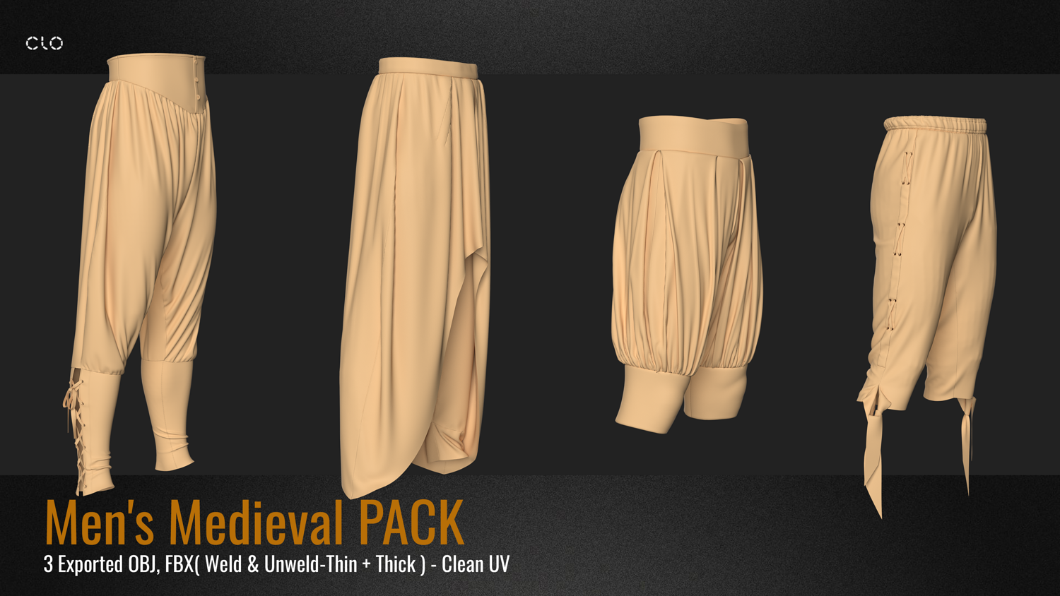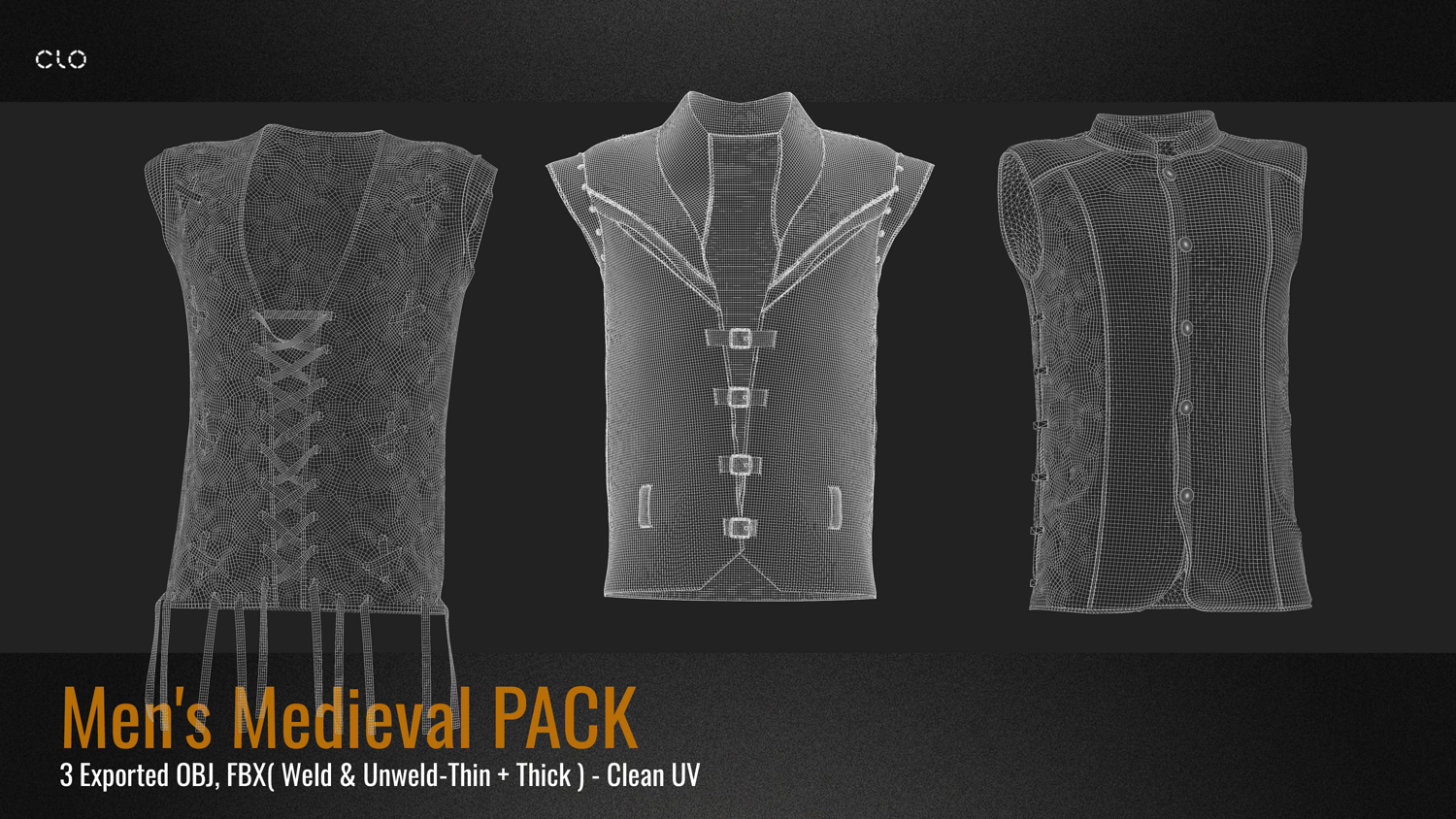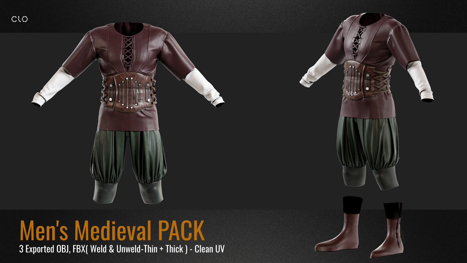 Medieval Male Outfit Pack – 21 Items (Vol. 02) /ZPRJ + OBJ + FBX