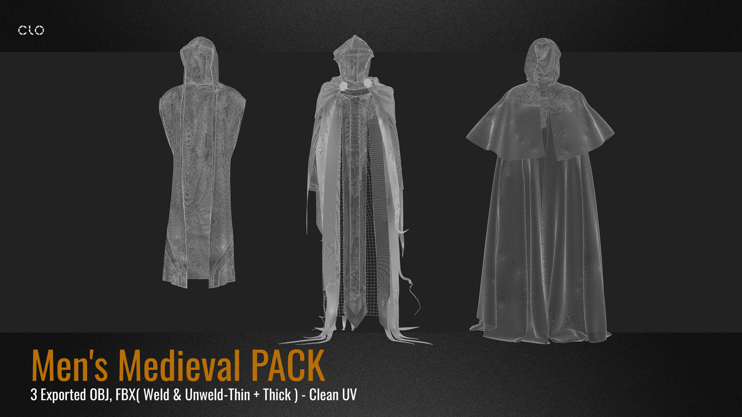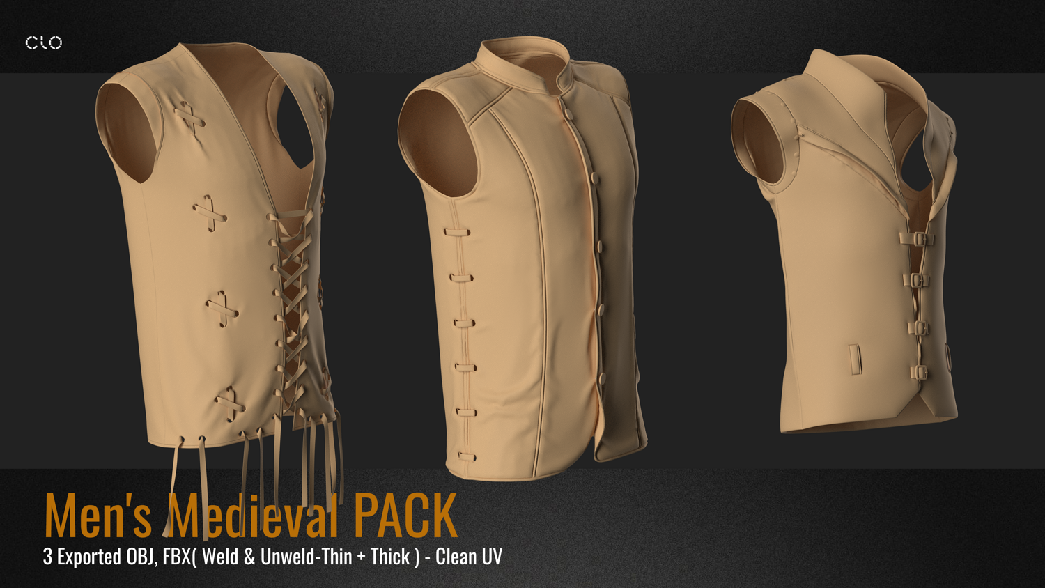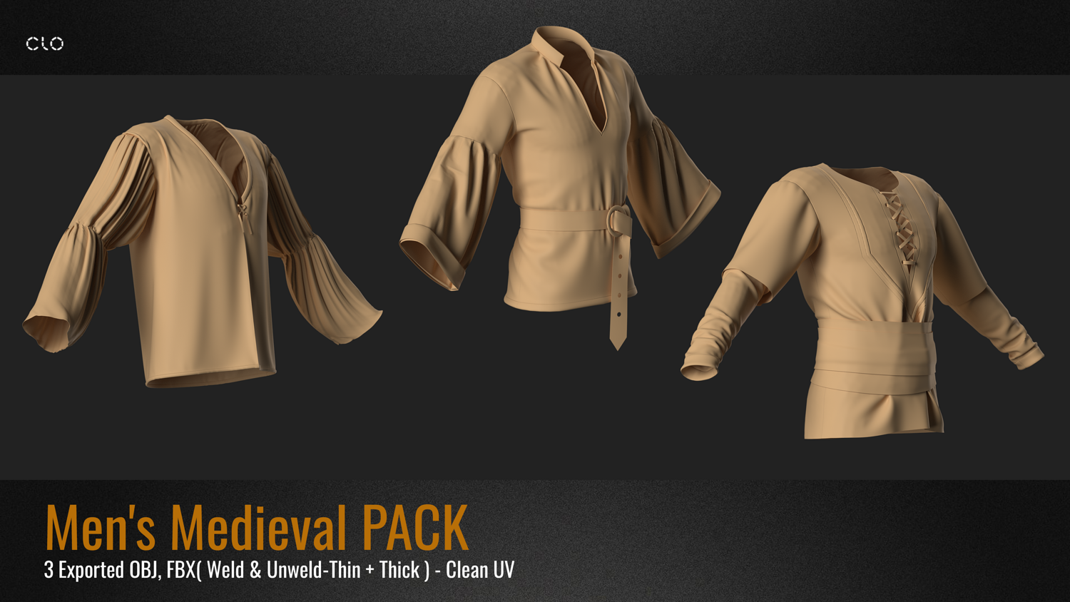 Medieval Male Outfit Pack – 21 Items (Vol. 02) /ZPRJ + OBJ + FBX
