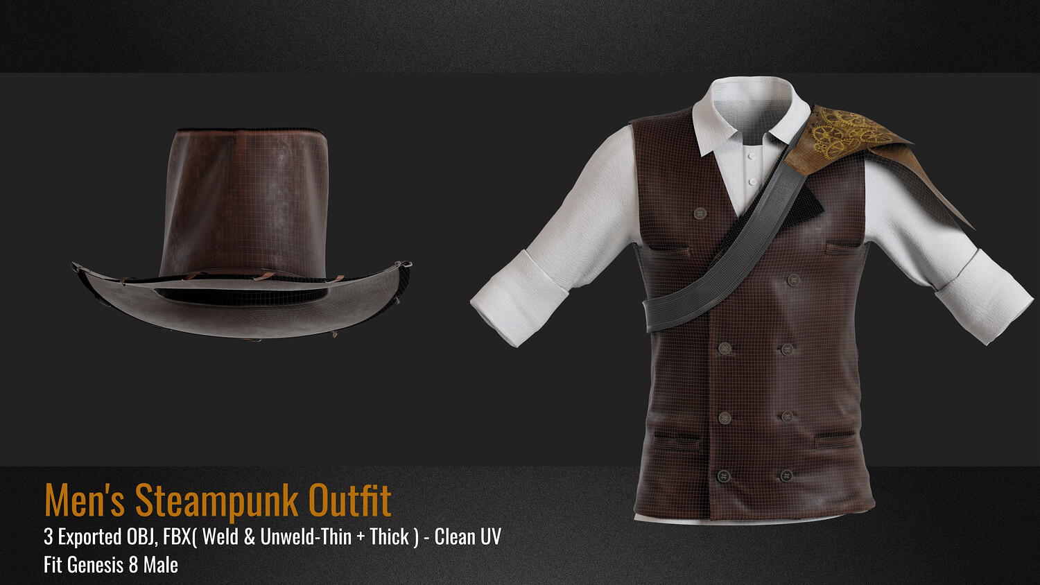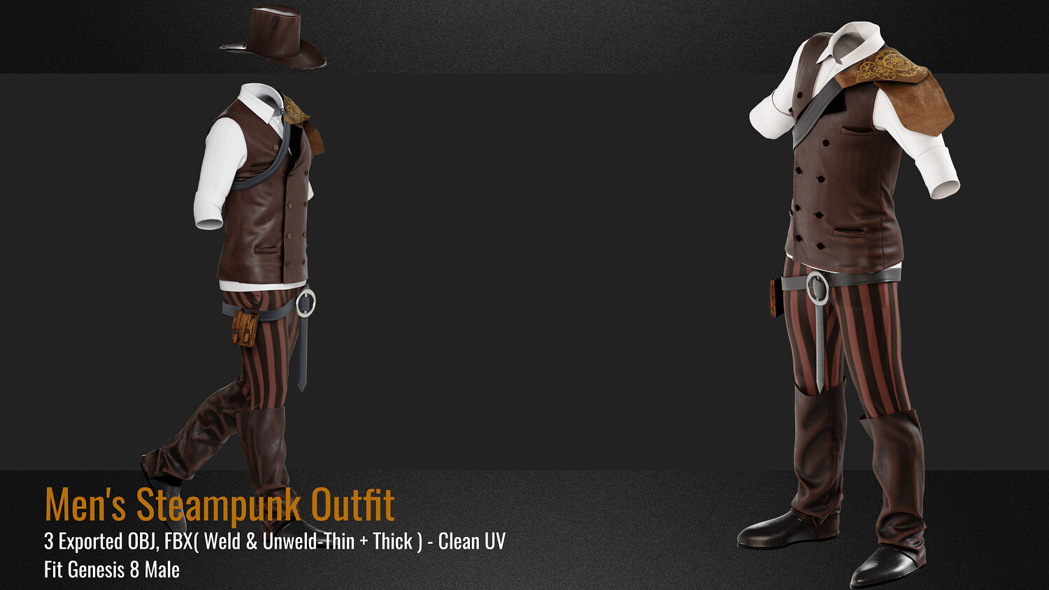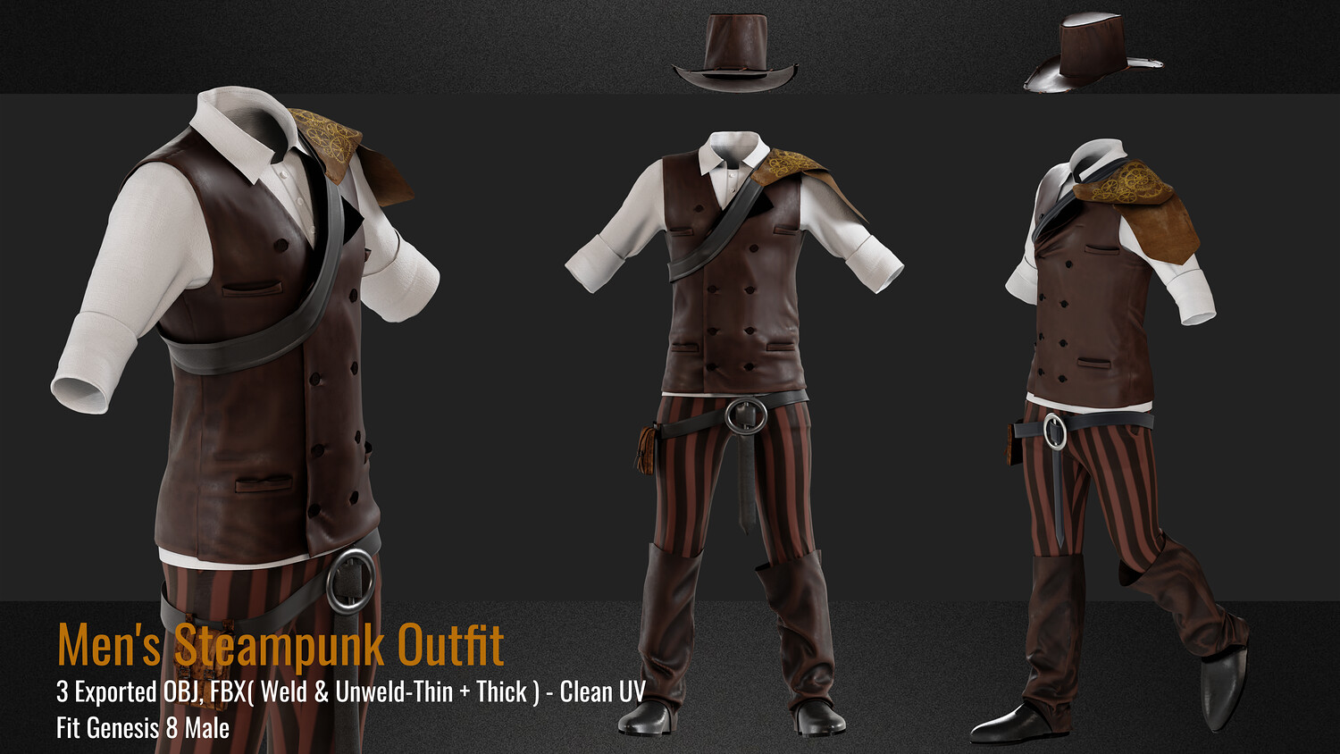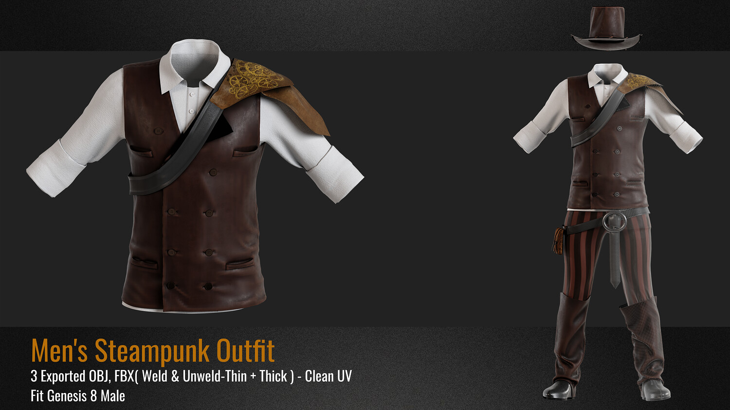 Men's Steampunk Outfit (VOL.02). Marvelous Designer/Clo3D file+OBJ+FBX+4K PBR Textures
