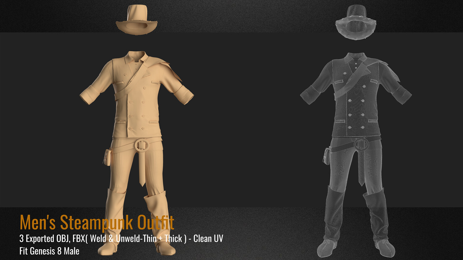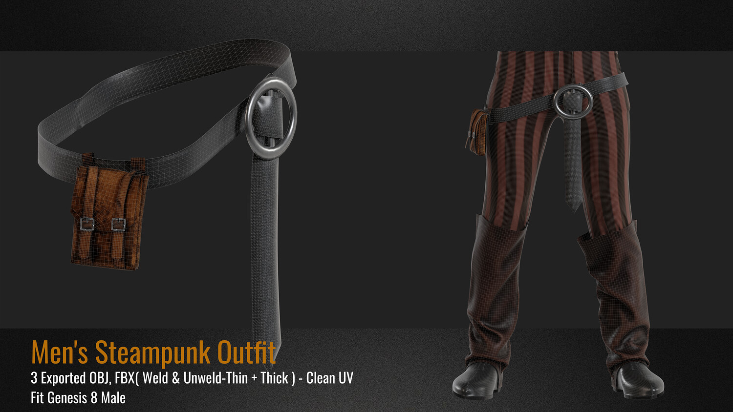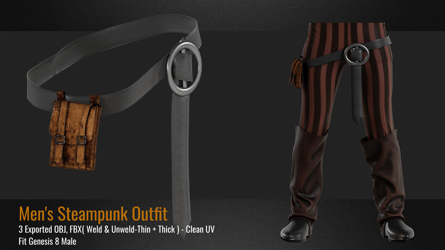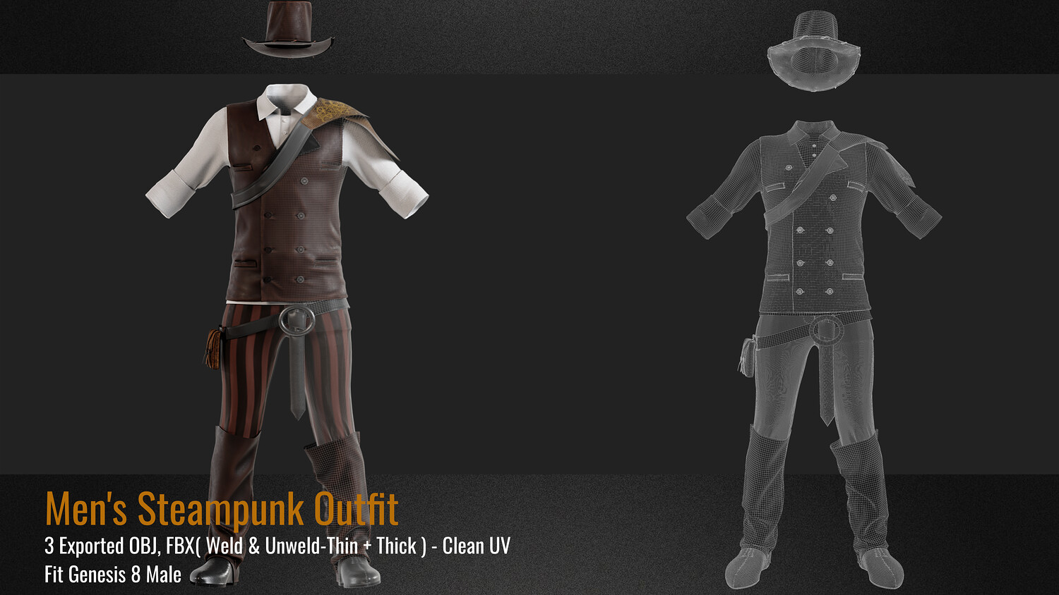 Men's Steampunk Outfit (VOL.02). Marvelous Designer/Clo3D file+OBJ+FBX+4K PBR Textures