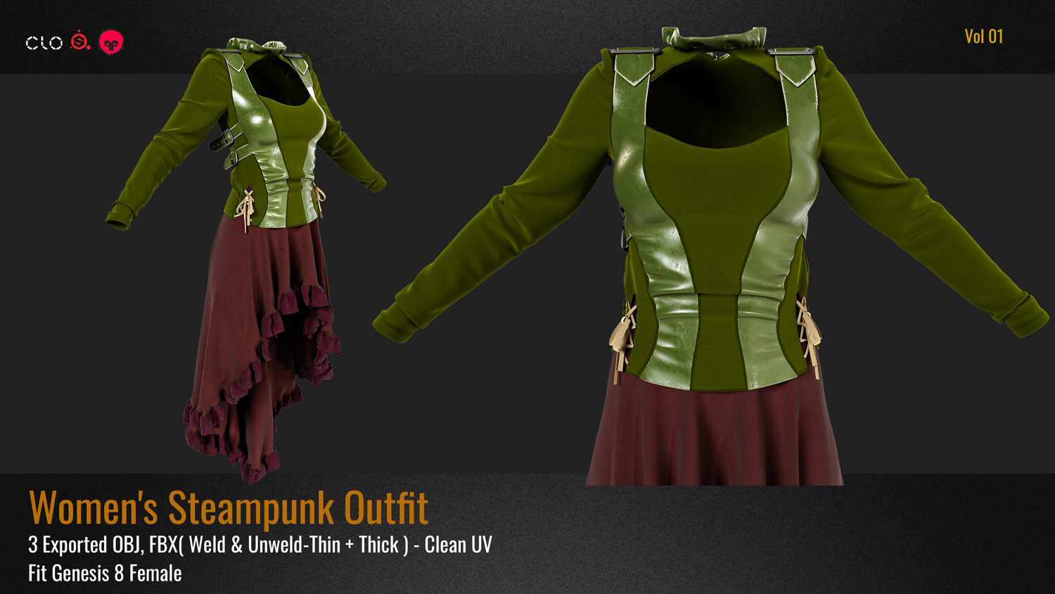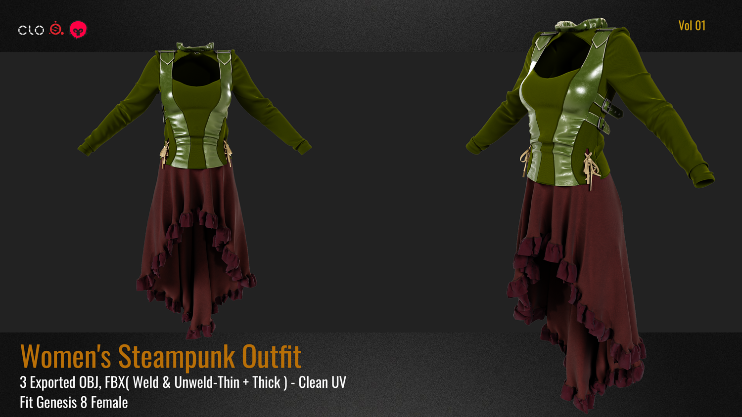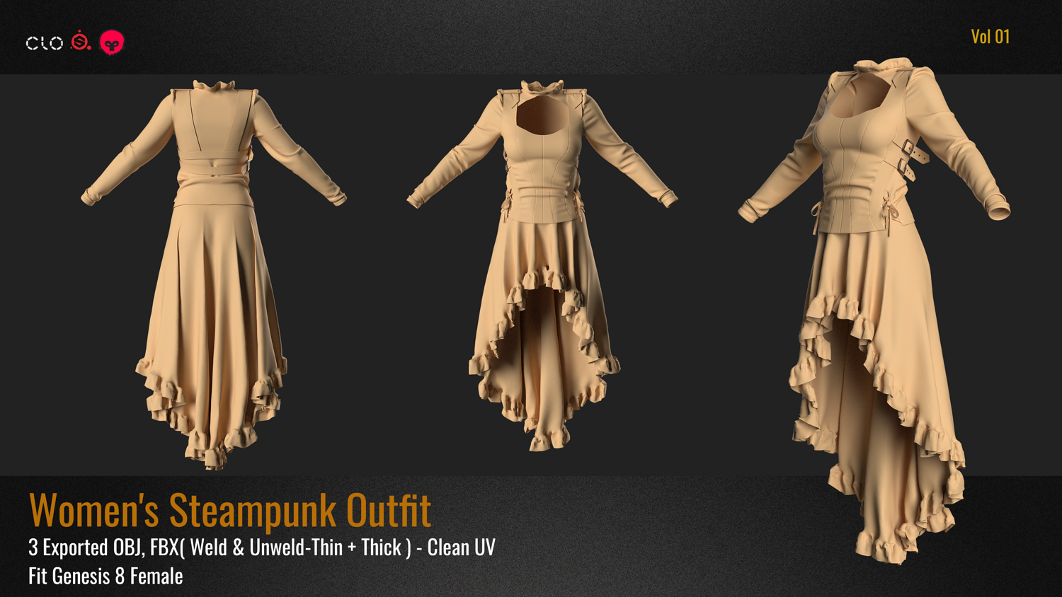 Women's Steamounk Outfit (VOL.01). Marvelous Designer/Clo3D file+OBJ,FBX+4K Textures(PBR)