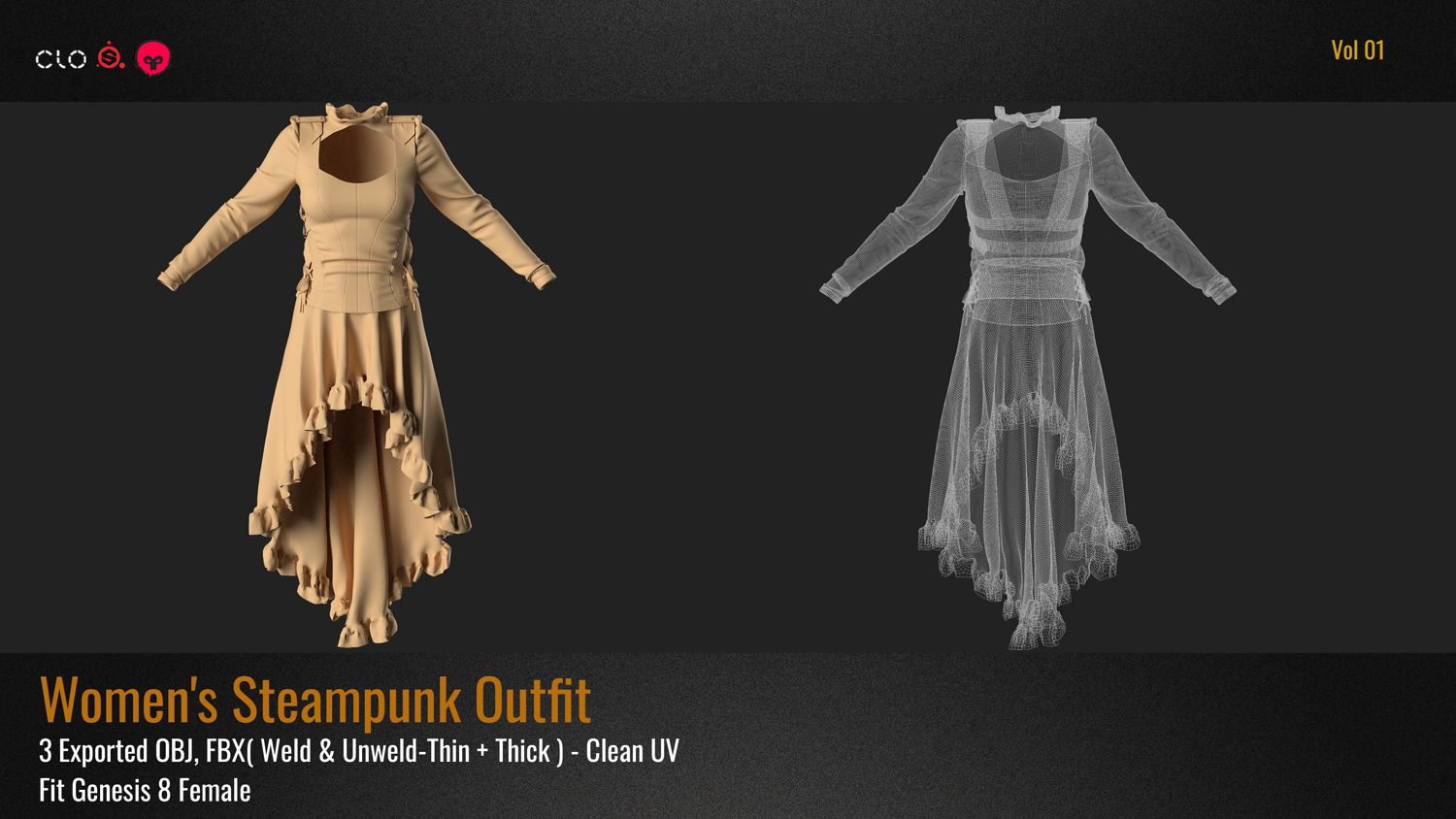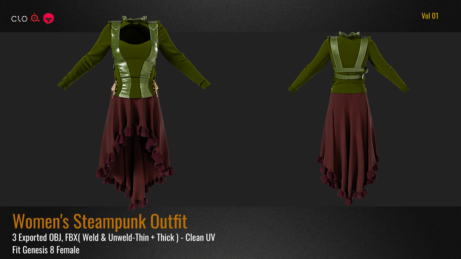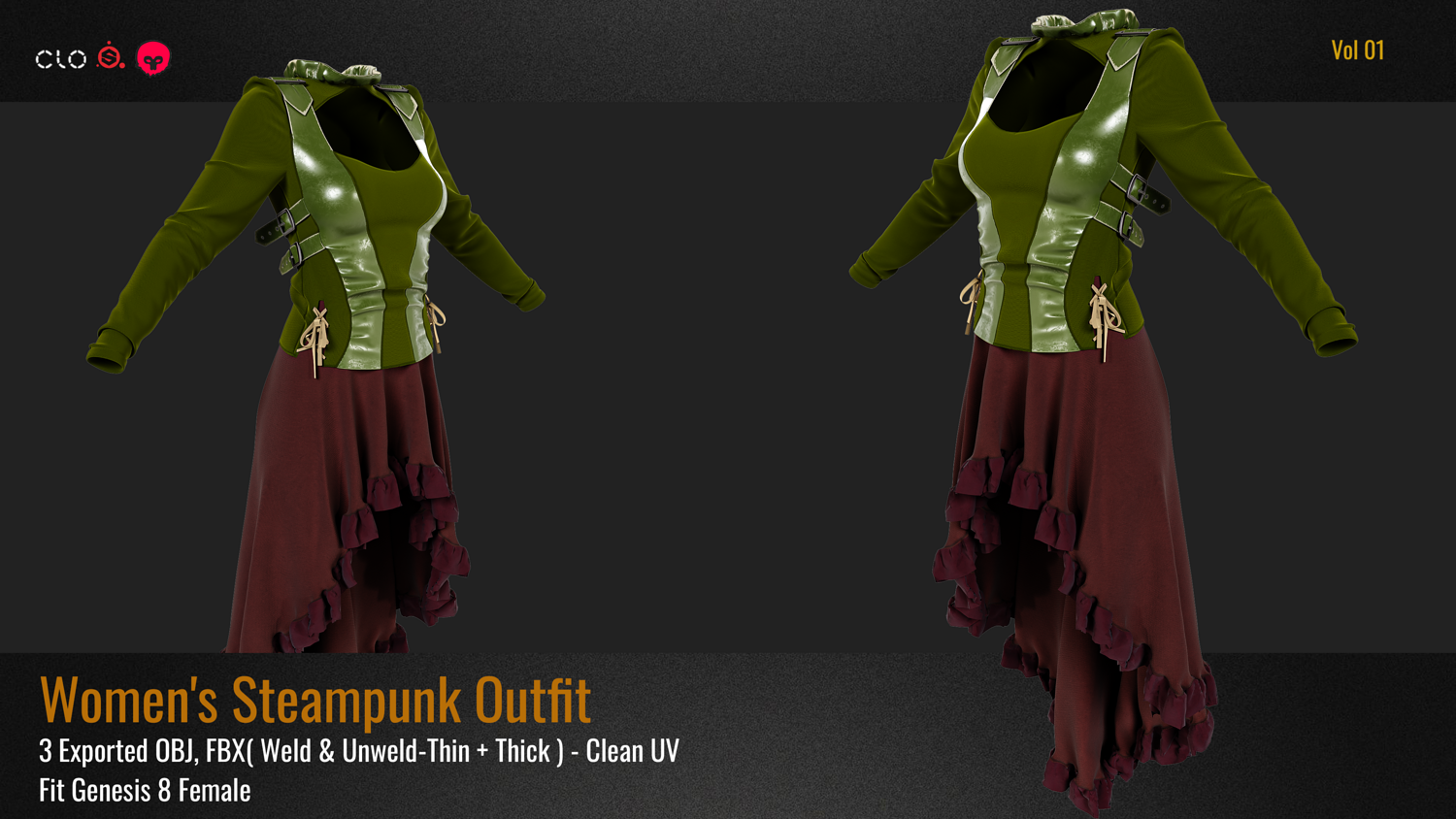 Women's Steamounk Outfit (VOL.01). Marvelous Designer/Clo3D file+OBJ,FBX+4K Textures(PBR)
