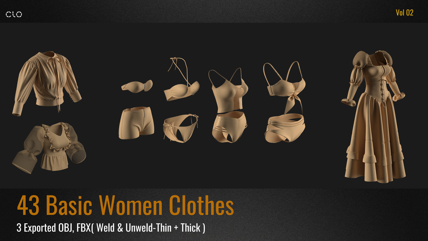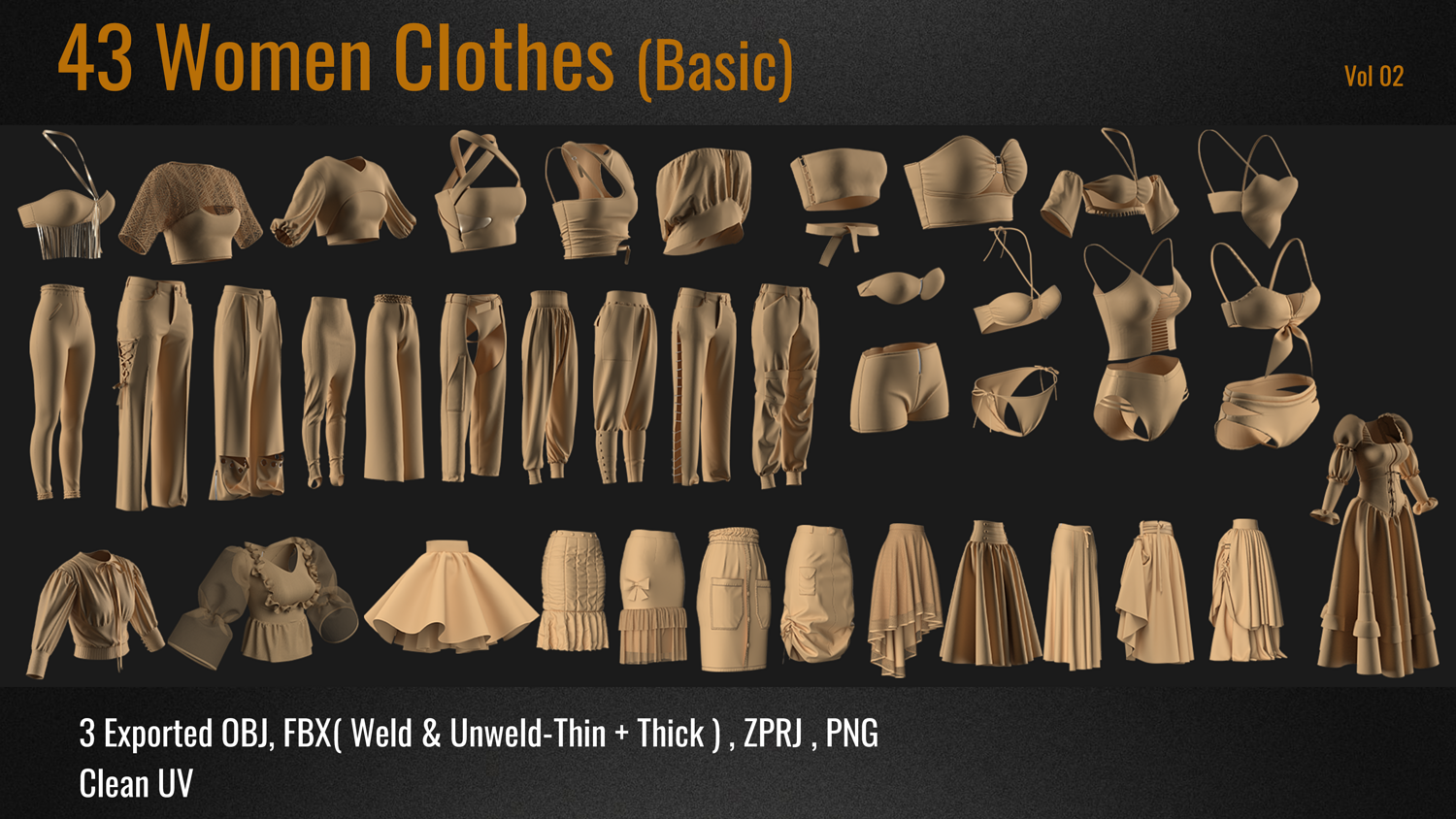 43 Basic Woman Clothes PACK . (VOL 02) ZPRJ+OBJ+FBX