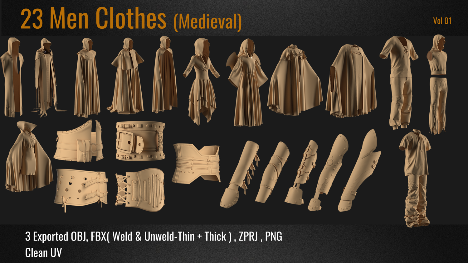 23 Medieval Men Clothes PACK . (VOL 01) ZPRJ+OBJ+FBX