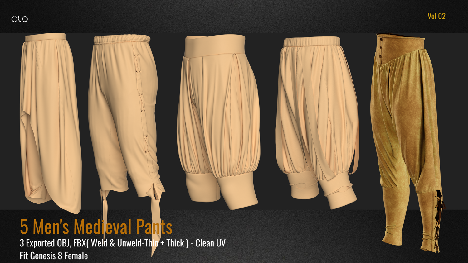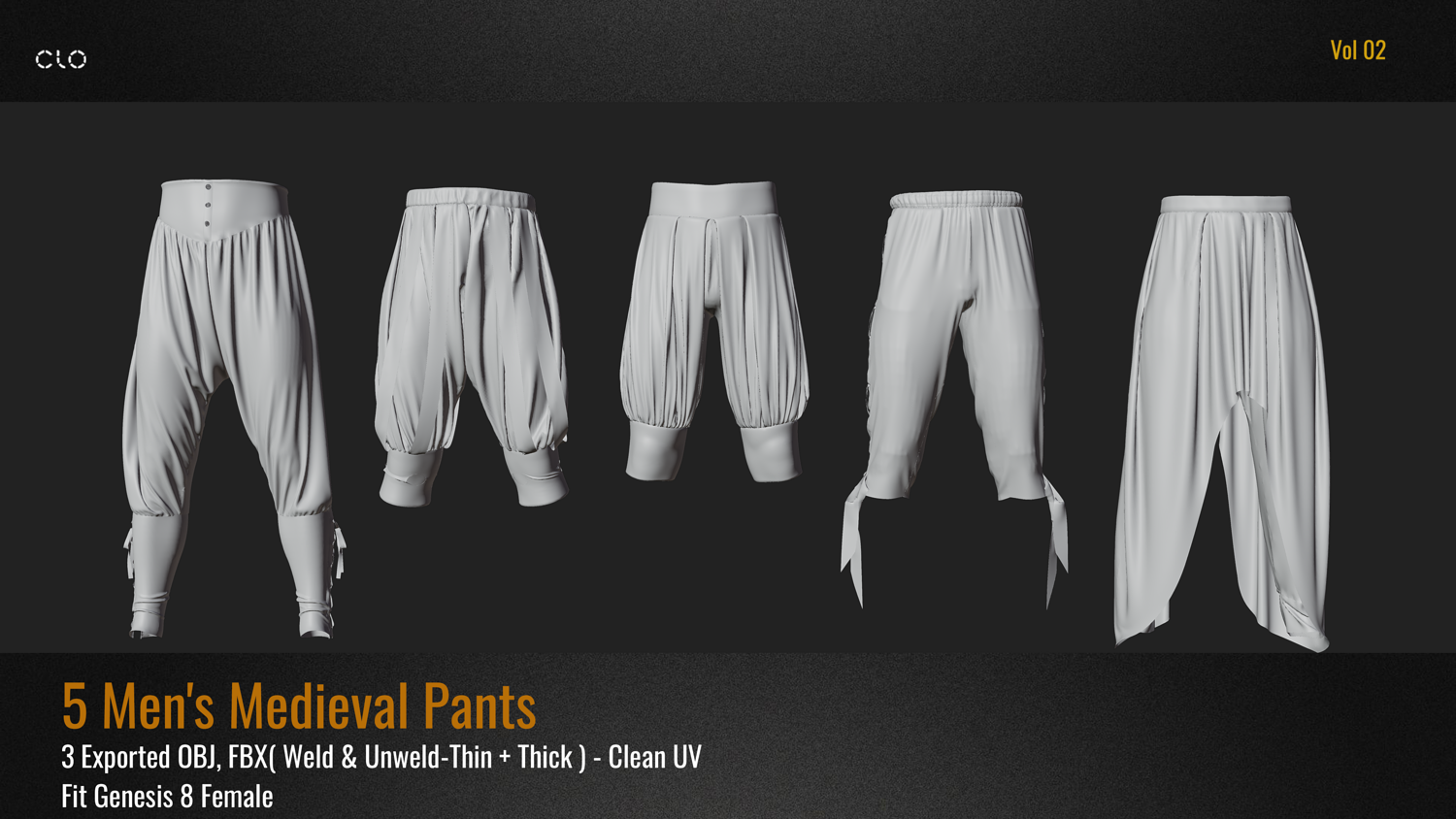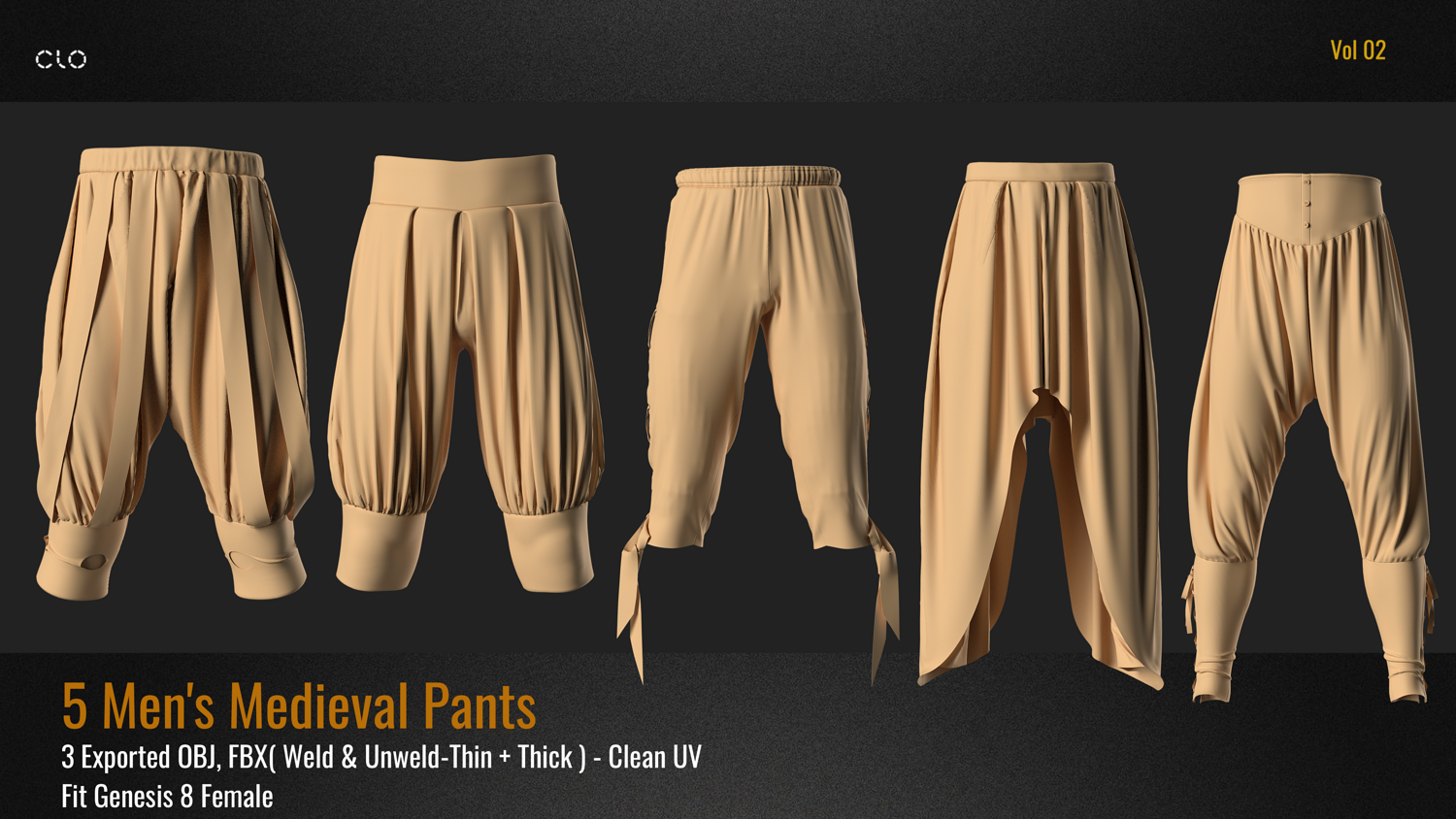 5 Men's Medieval Pants-VOL 02-MD PROJECTS-OBJ-FBX