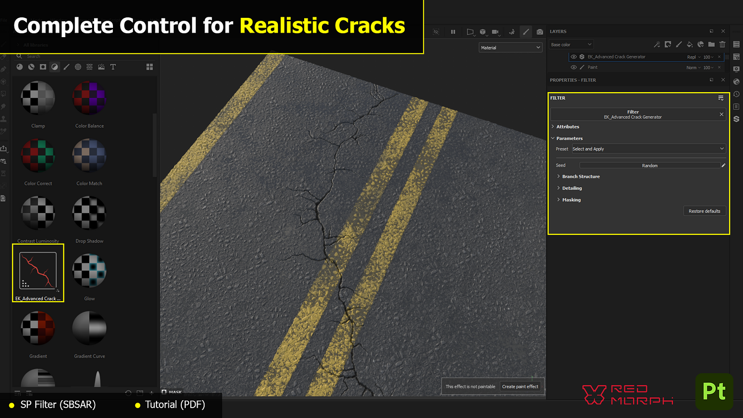 Effortlessly create realistic and customizable cracks for your textures with the Advanced Crack Generator. Perfect for adding detail and wear to surfaces like stone, asphalt, Concrete, Wood, and more. Draw cracks exactly where you need them, with easy-to-use branching, warp adjustments, and material presets. Enhance your material workflows today!