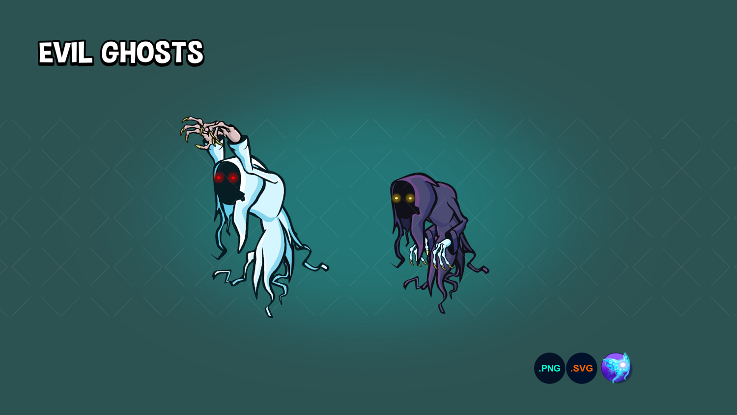 Two animated ghost 2d game assets. Including fully rigged spriter file, hd keyframes and vector and png body parts. The included keyframes are roughly around 1000 pixels in size but you can use the included spriter file to export upto 2000 pixels without losing resolution, or alternatively smaller size.