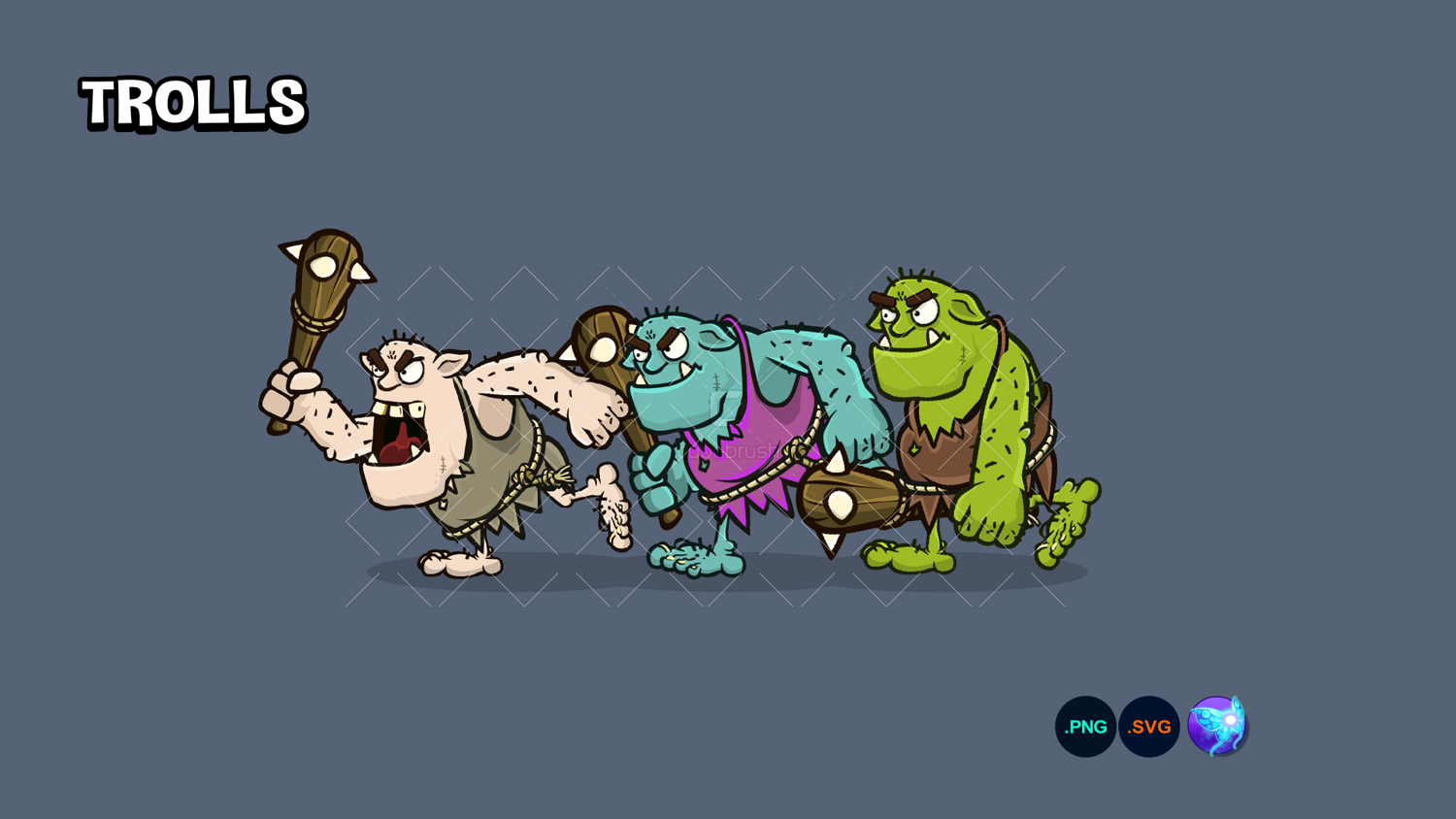 Animated 2d troll game sprite. The download includes three fully animated troll colour variations, keyframes in png format, Spriter file and body parts in png and vector format. The included key frames are around 1000 pixels in size you can also use the spriter file included to export larger keyframe sizes and spritesheets. included animations: - walk - run - jump - idle - swipe - stab - defend - hurt - roar - die