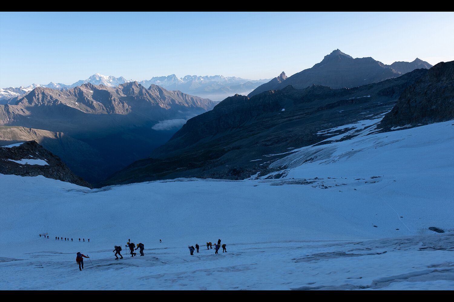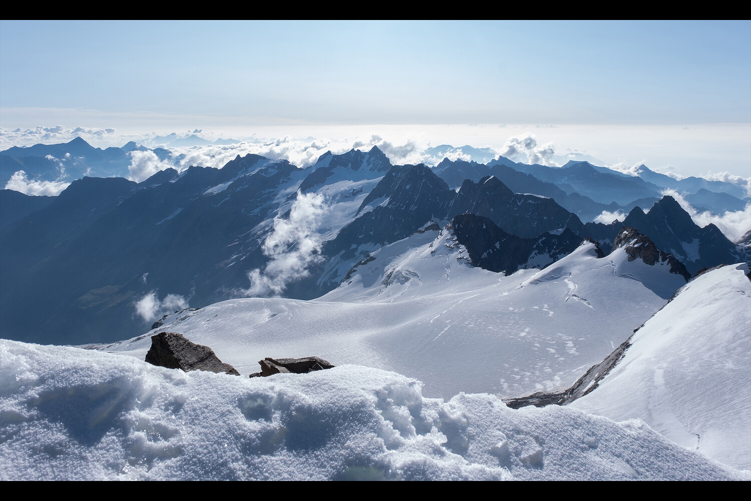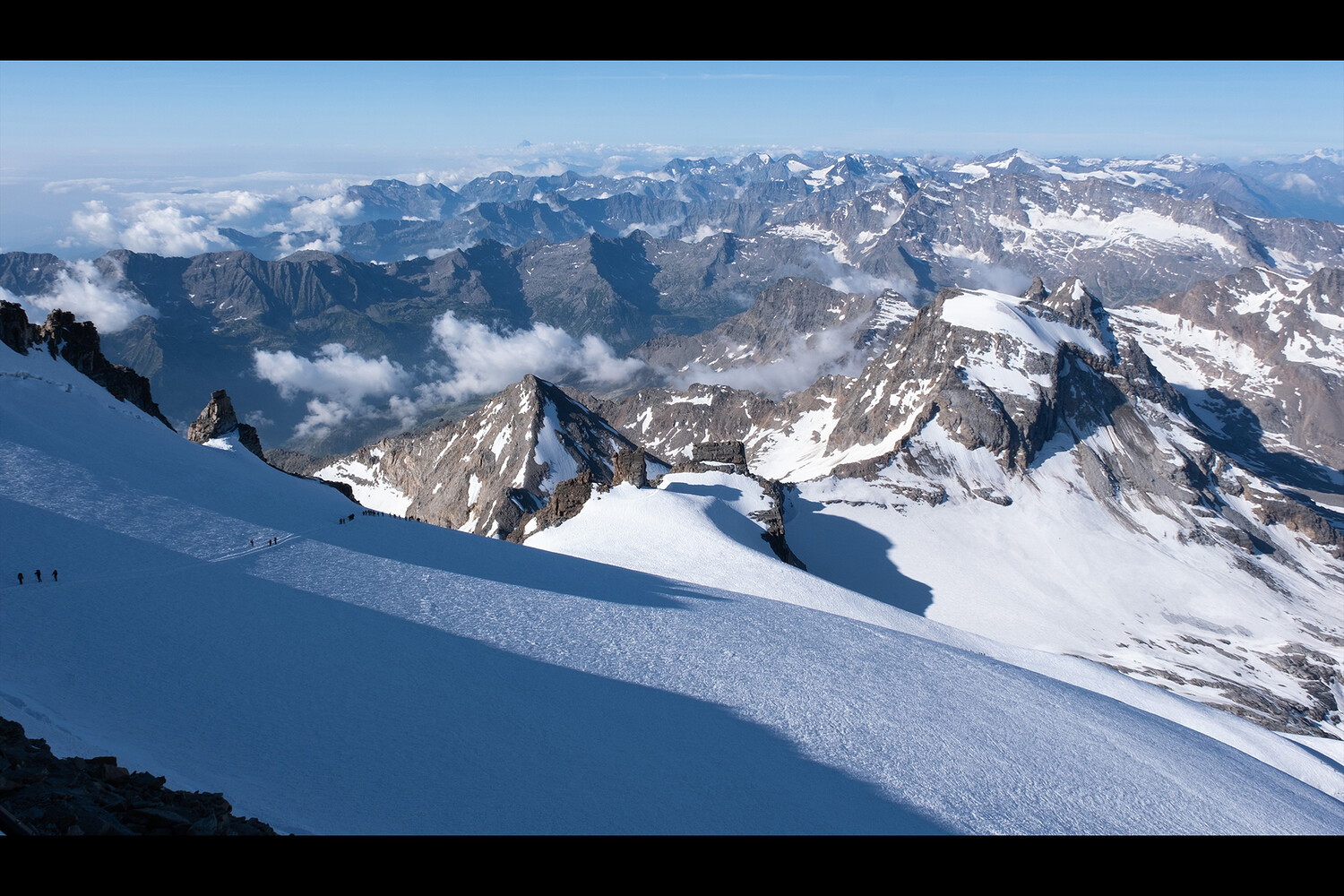 Photos taken during the ascent of a 4,000-meter peak. The Gran Paradiso in Italy. The second-highest peak in Italy, after Mont Blanc. Great view of the Alps chain.