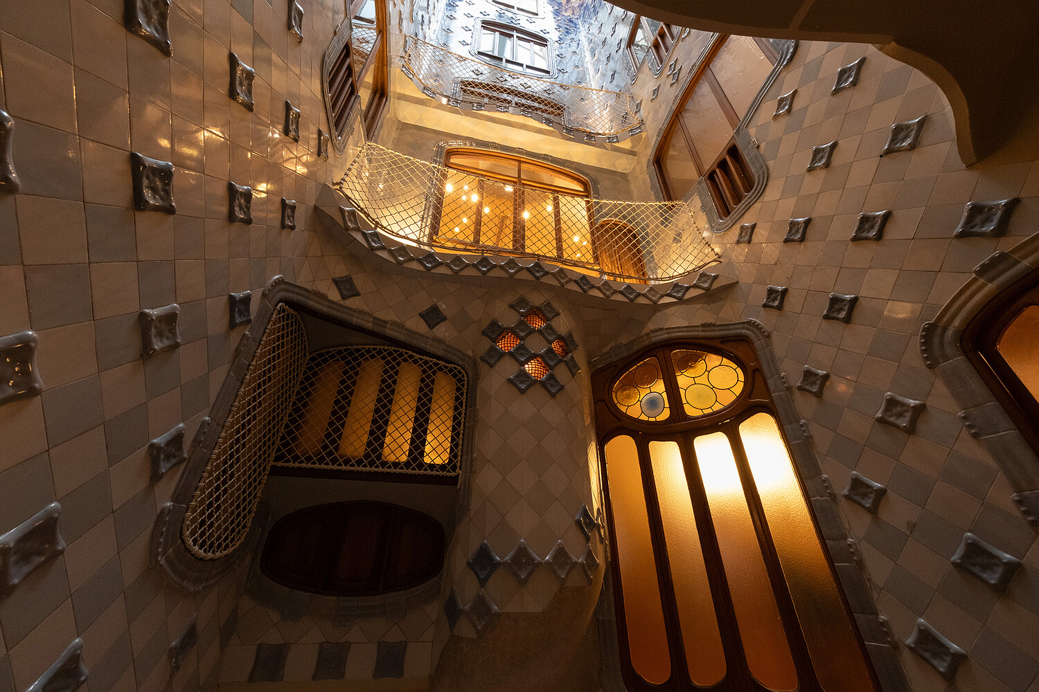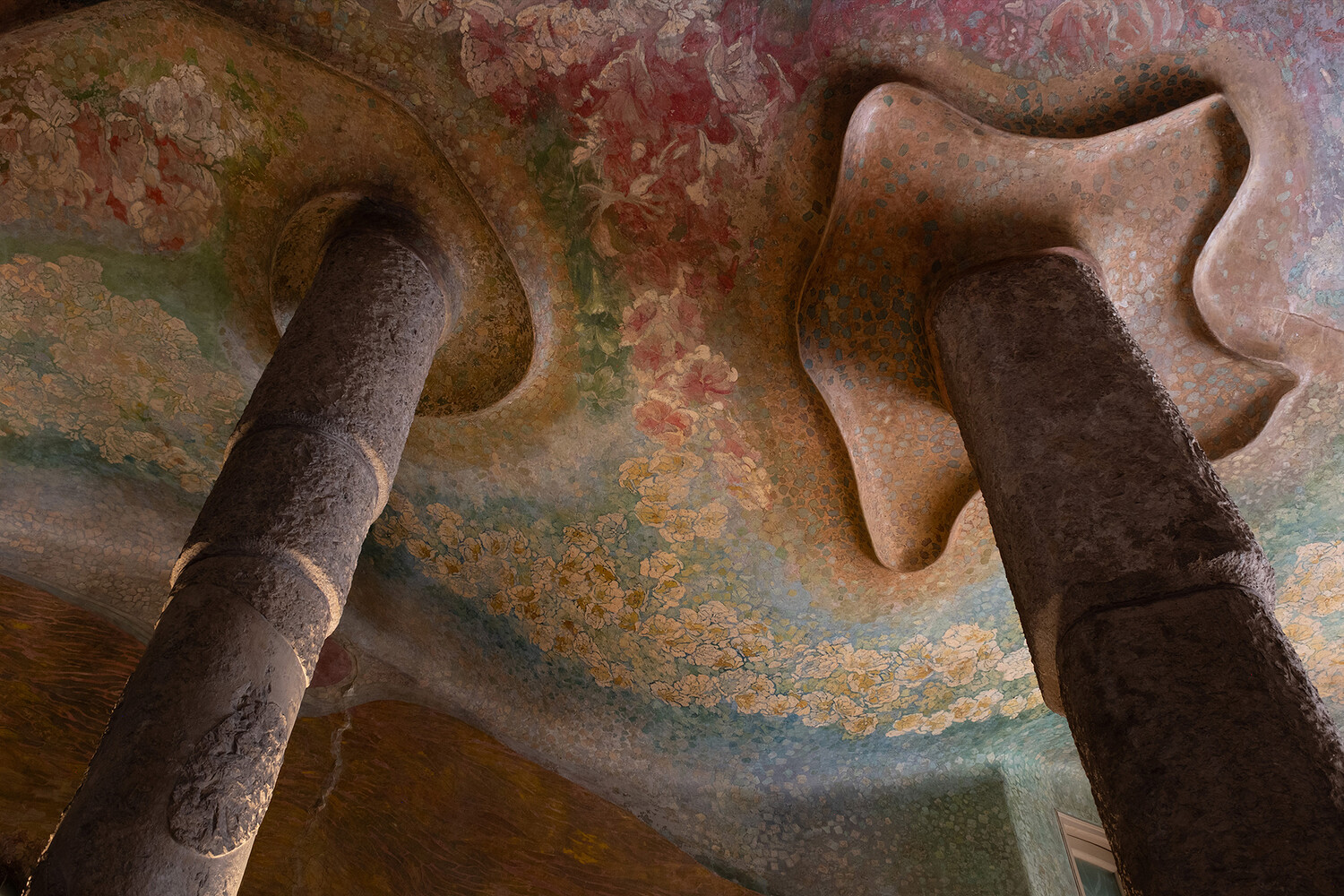 Several famous places, half of them designed by the Spanish architect Gaudí. Many interesting floral decorations, patterns, organic sculptures, designed on chandeliers, home furniture, windows, and more. Beautiful places with crazy light circulation and great taste in designing shapes and using materials. As it goes to Art Nouveau style, Lines and shapes are mainly inspired from fauna and flora.
