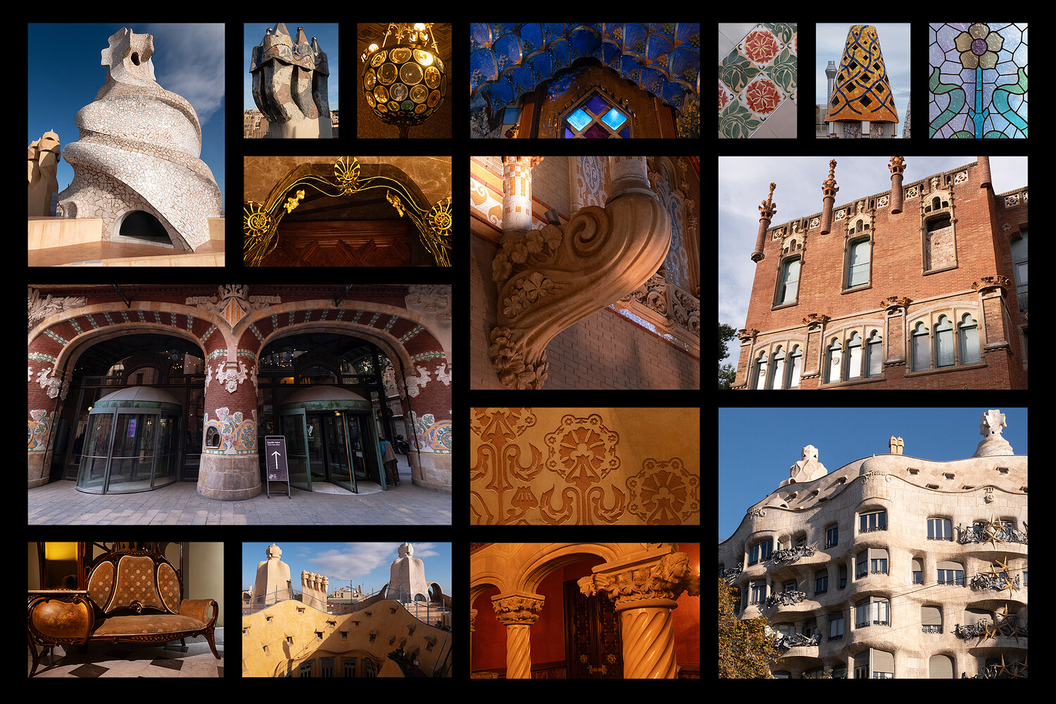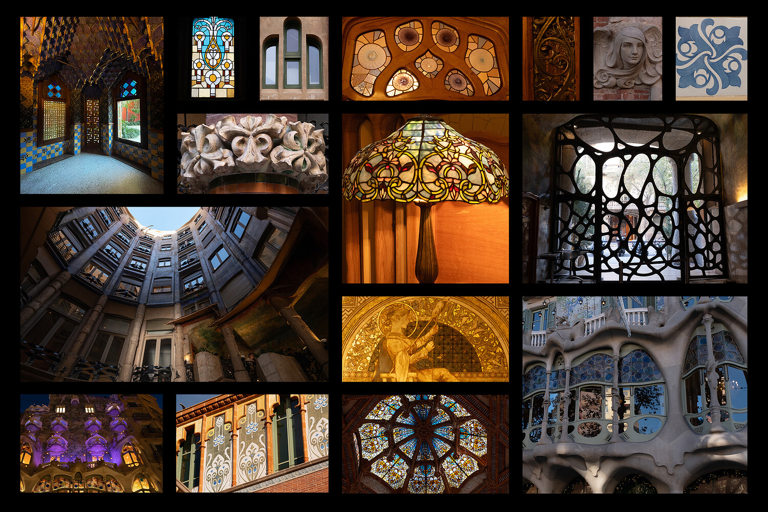 You'll find inside photos from: Sant Pau hospital, Palau Macaya, Casa Milà, Casa Vicens, Palau de la Música Catalana, Casa Batlló, Casa Amatlle and Palau Güell.