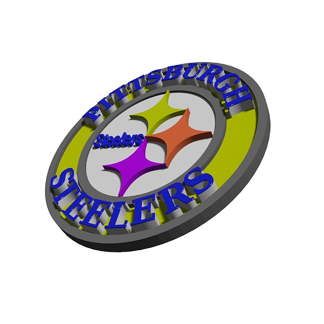 This item is a digital 3D model of a disc with the Pittsburgh Steelers NFL logo and their team name. This 3D digital model was created using Blender, a powerful 3D modeling software tool. Please contact me here for details about requesting a custom digital model for you or your company.