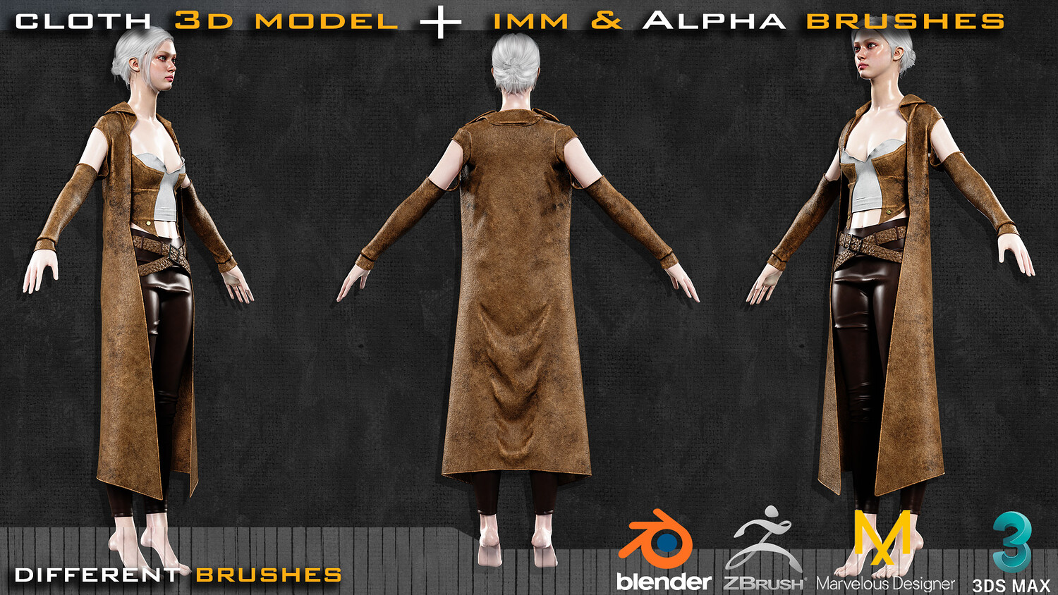 Cloth 3D Model + 75 Zbrush & Blender (zip, button, tension & compression ) Brushes + 3dsmax, marvelous & blender files + 75 Alpha 4k tiff & png + tutorial How to use