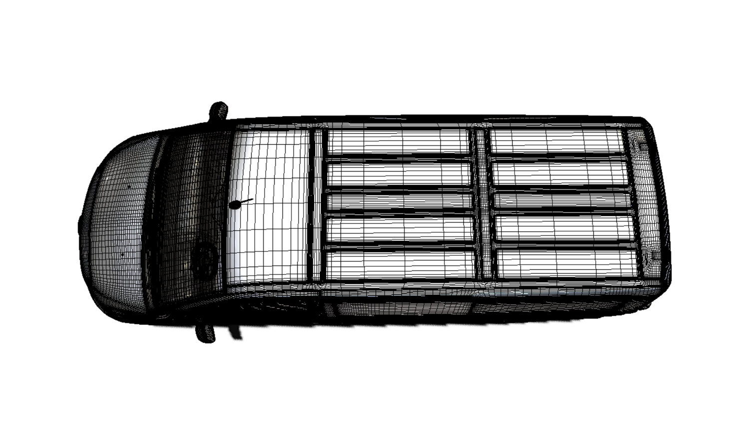 The van includes detailed elements such as the front grille, headlights, wheels, side mirrors, and charging port. The interior is carefully modeled to show the dashboard, seats, cargo area, and controls. This 3D model is suitable for various applications, including virtual showrooms, product visualizations, automotive simulations, and educational content.