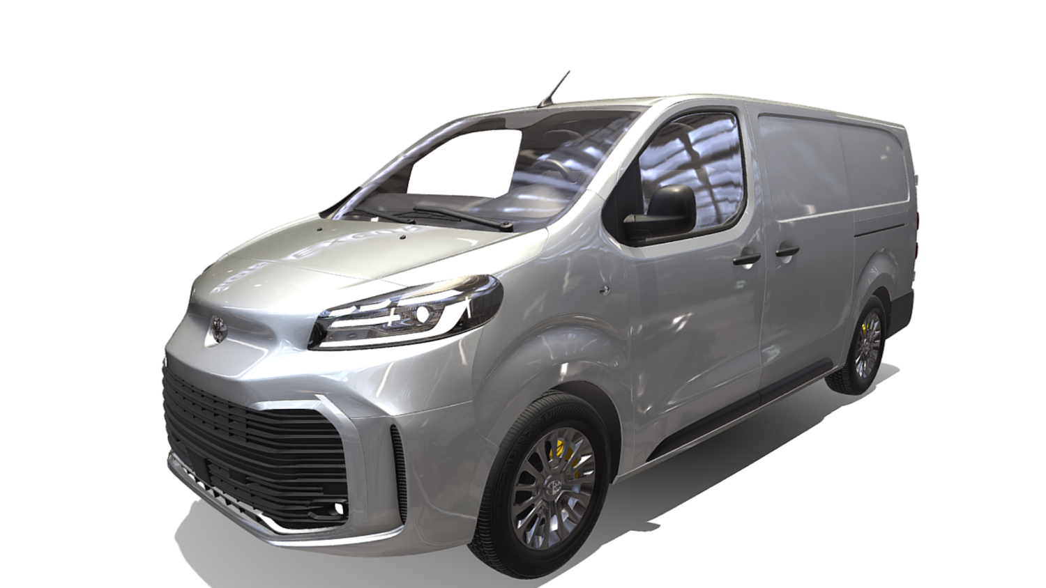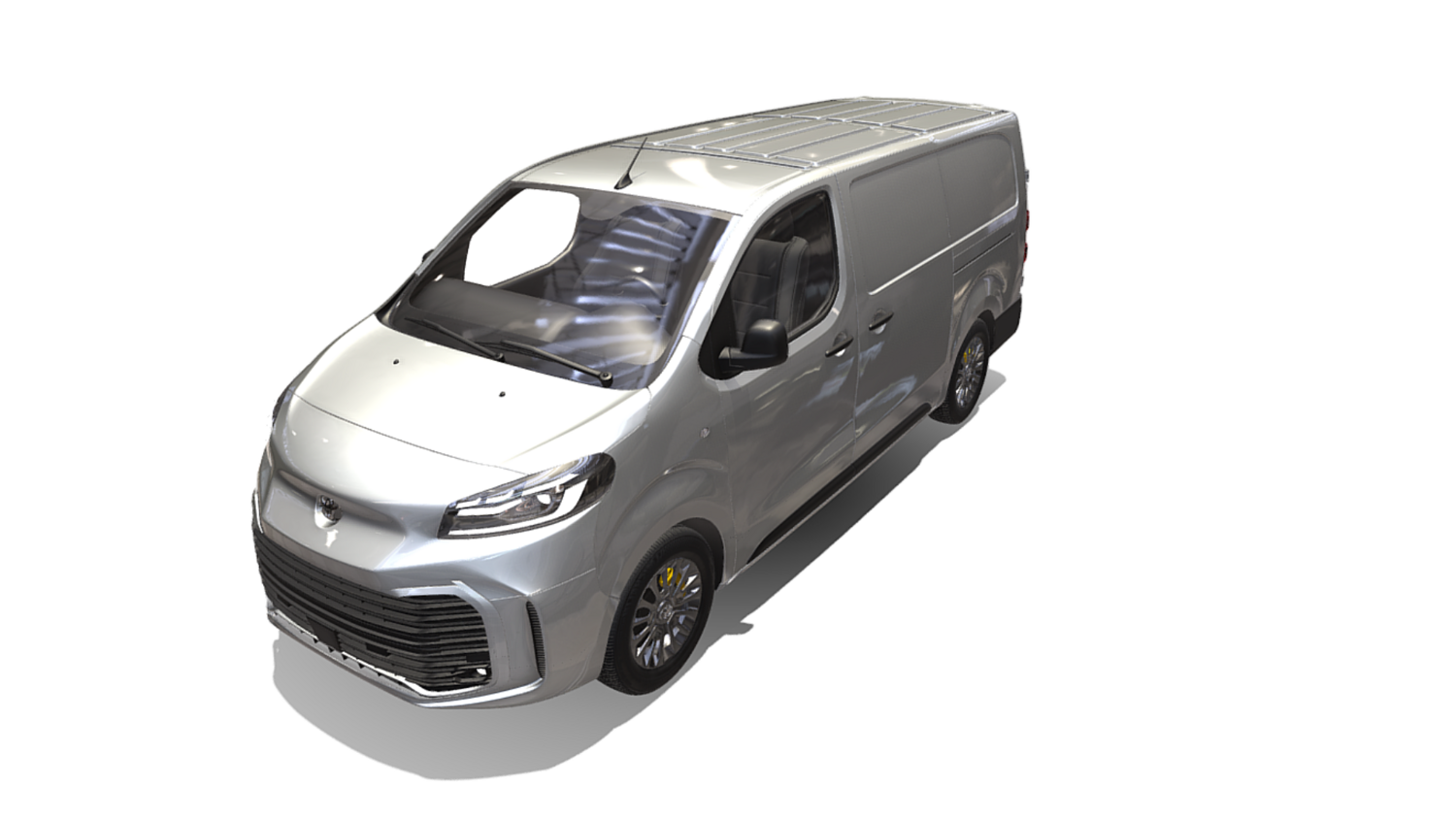 This 3D model accurately represents the new 2024 Toyota Proace Verso, a versatile and spacious multi-purpose vehicle (MPV) designed for both family and commercial use. The model captures the sleek, modern design of the 2024 version, featuring detailed exterior elements such as the front grille, LED headlights, alloy wheels, side mirrors, and rear lights. The interior is meticulously modeled, showcasing the dashboard, seating arrangement, and ample cargo space.