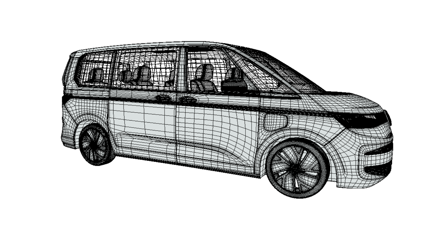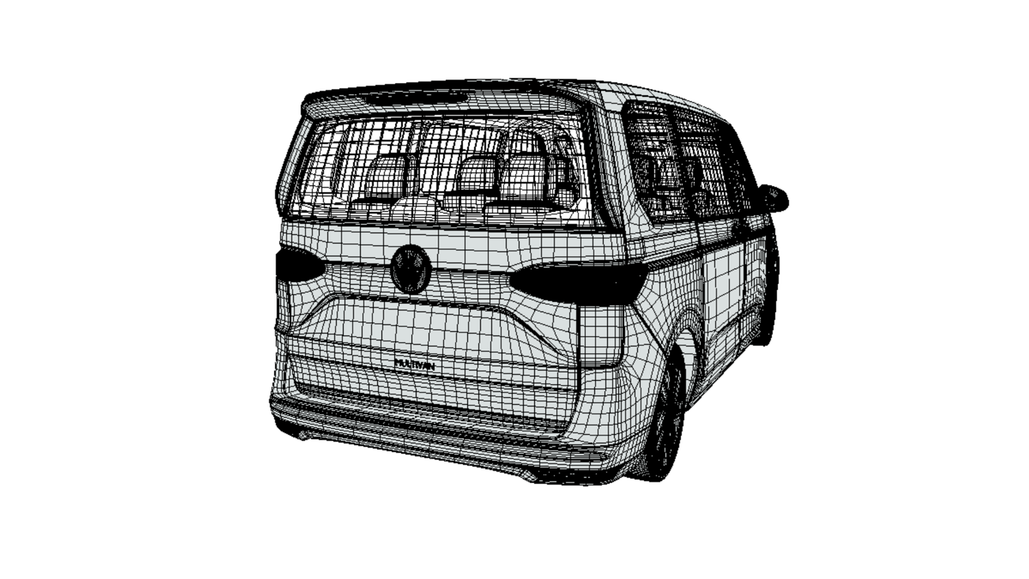 Our Volkswagen Multivan model features realistic textures and intricate details, including the sleek exterior, well-defined body lines, and detailed components such as the headlights, wheels, and windows. The interior is equally detailed, showcasing the spacious seating arrangement, dashboard, and cargo space, making it ideal for interior design visualizations and virtual tours.