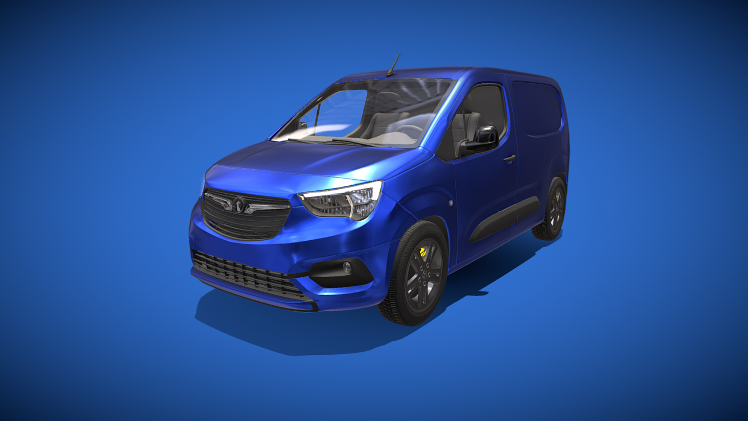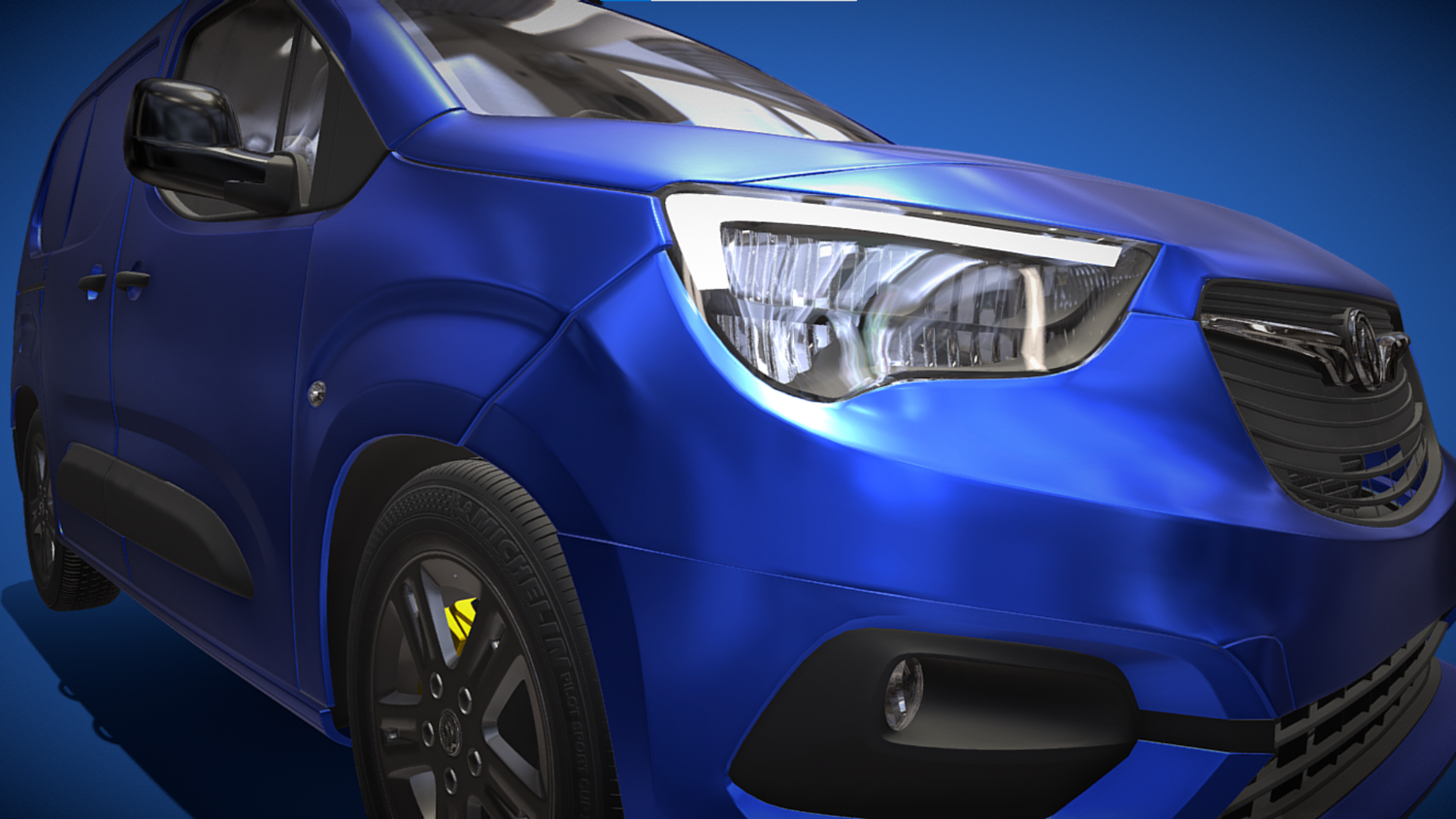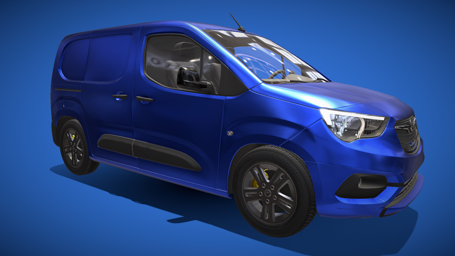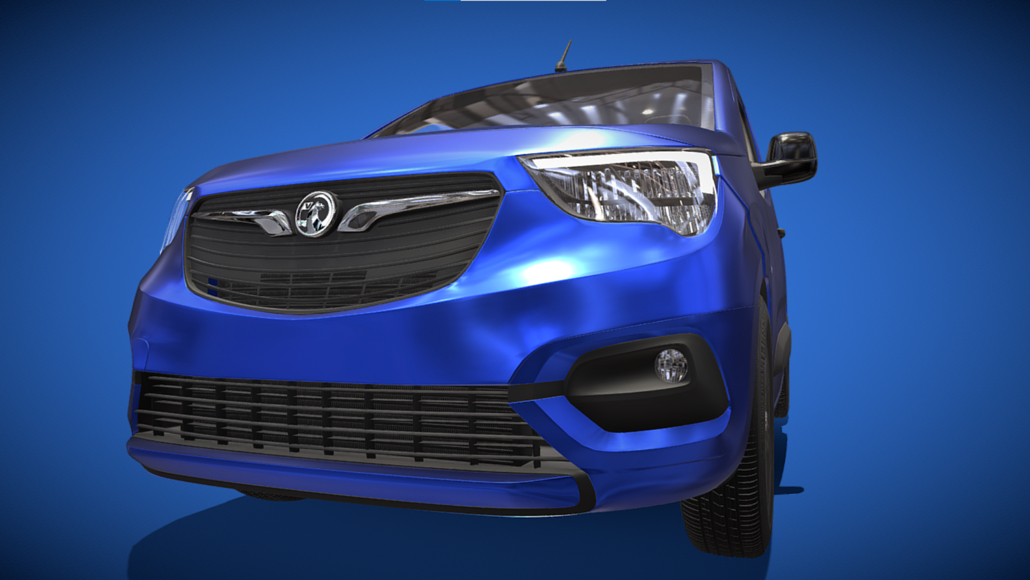 The model is crafted with precision, showcasing key elements such as the front grille, headlights, wheels, cargo doors, and interior cabin features. It is suitable for use in virtual showrooms, VR simulations, automotive visualizations, and detailed animations. The high-quality textures and realistic dimensions ensure that the model provides an accurate and lifelike representation of the Vauxhall Combo Cargo Van 2022.