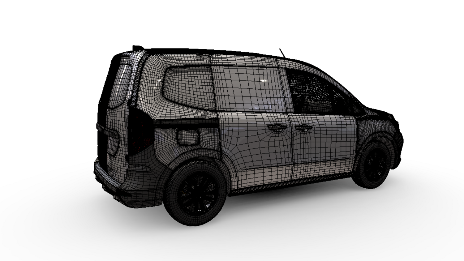 Functional Elements: Detailed movable parts such as doors, hood, and trunk, providing a comprehensive view of the van’s functionality.