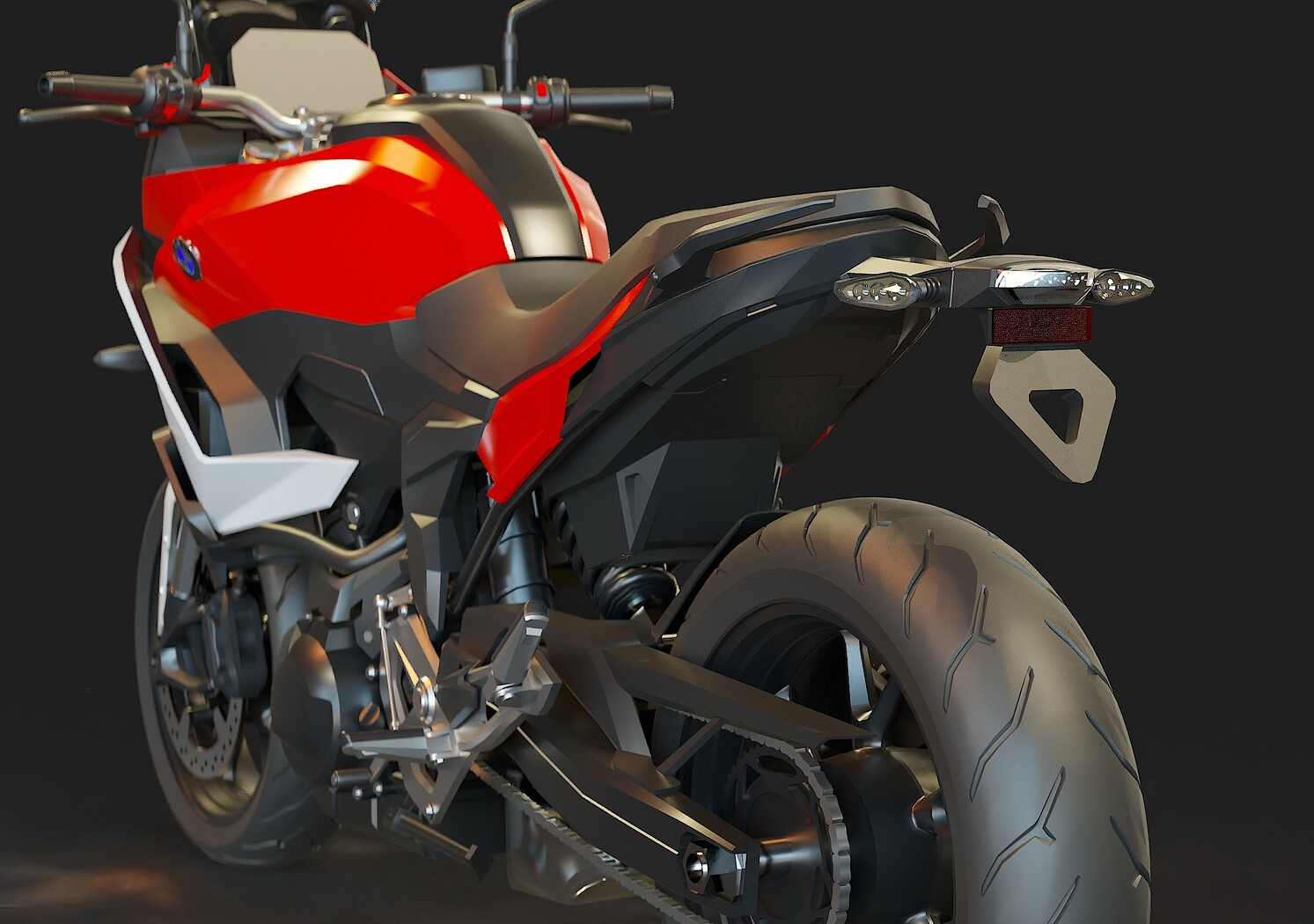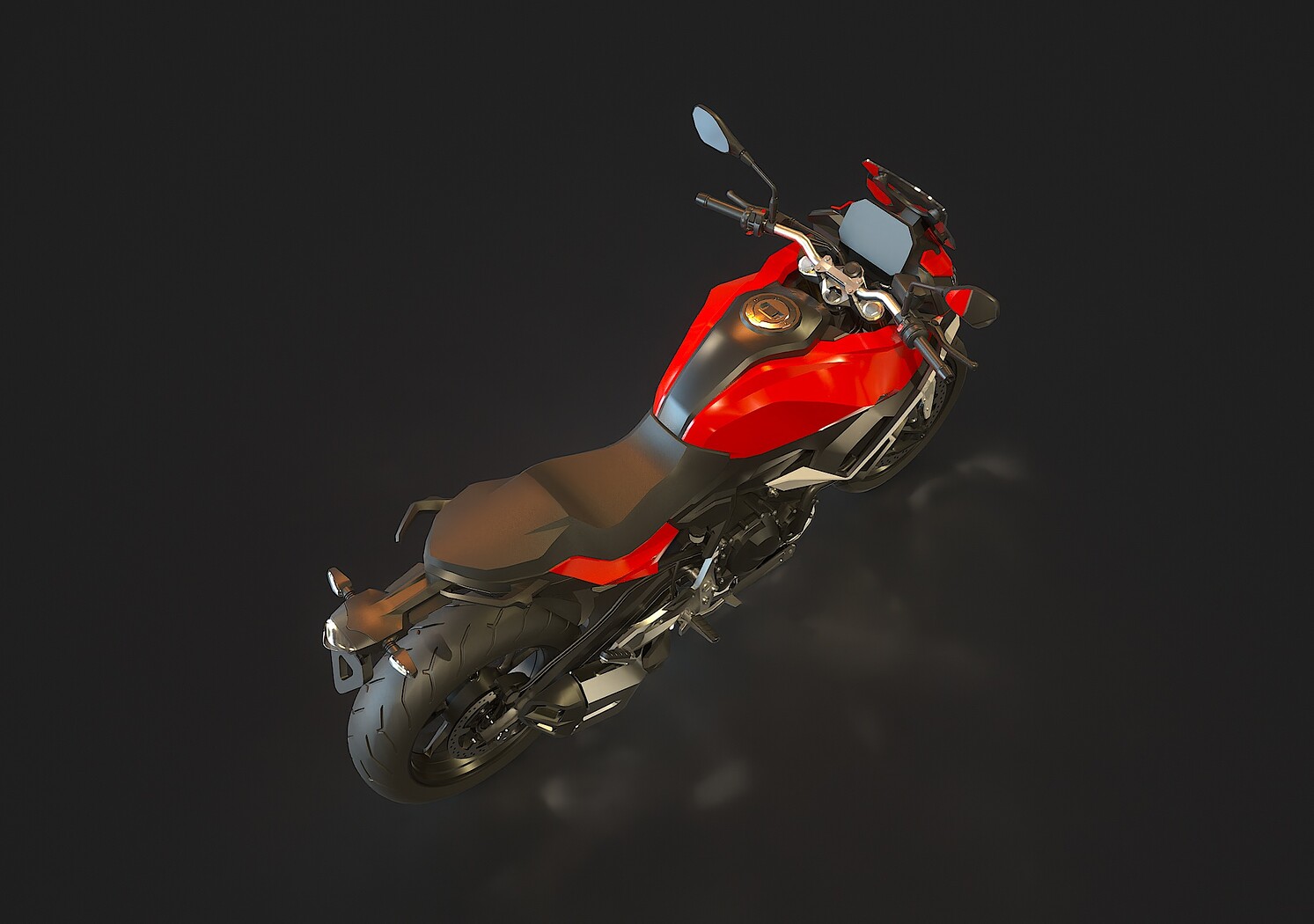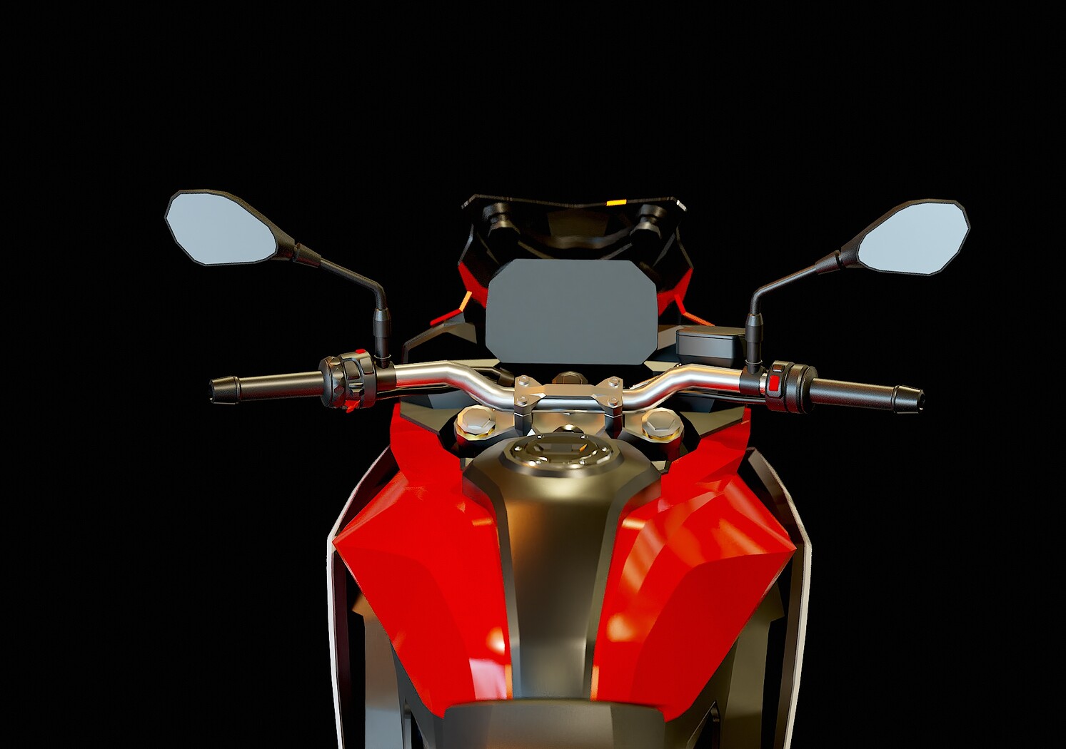 • Detailed Base Mesh: Includes essential components such as frame, engine block, wheels, suspension, handlebars, seat, and basic fairings, providing a solid starting point for customization.