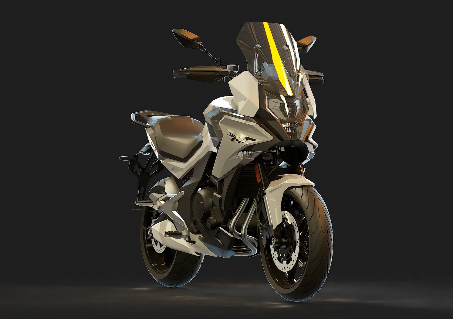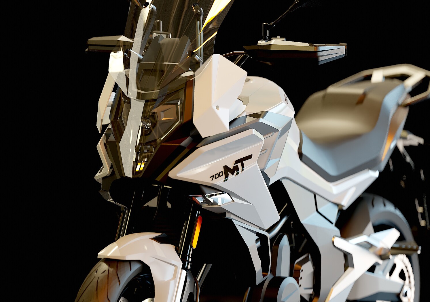 • Detailed Base Mesh: Includes essential components such as frame, engine block, wheels, suspension, handlebars, seat, and basic fairings, providing a solid starting point for customization.