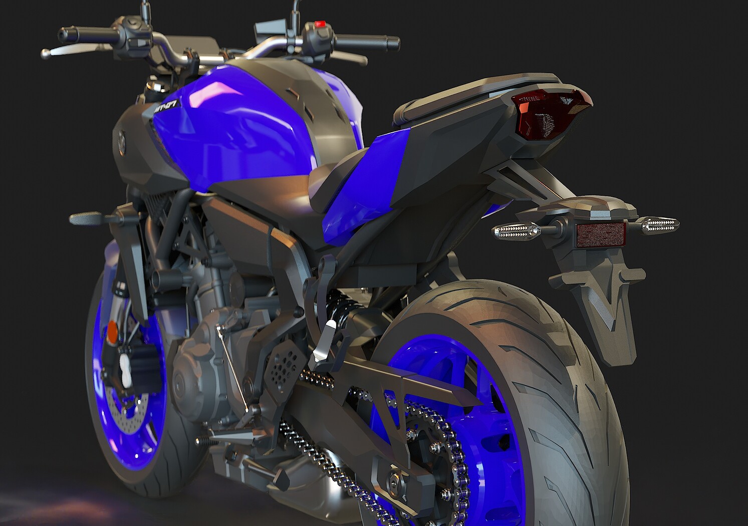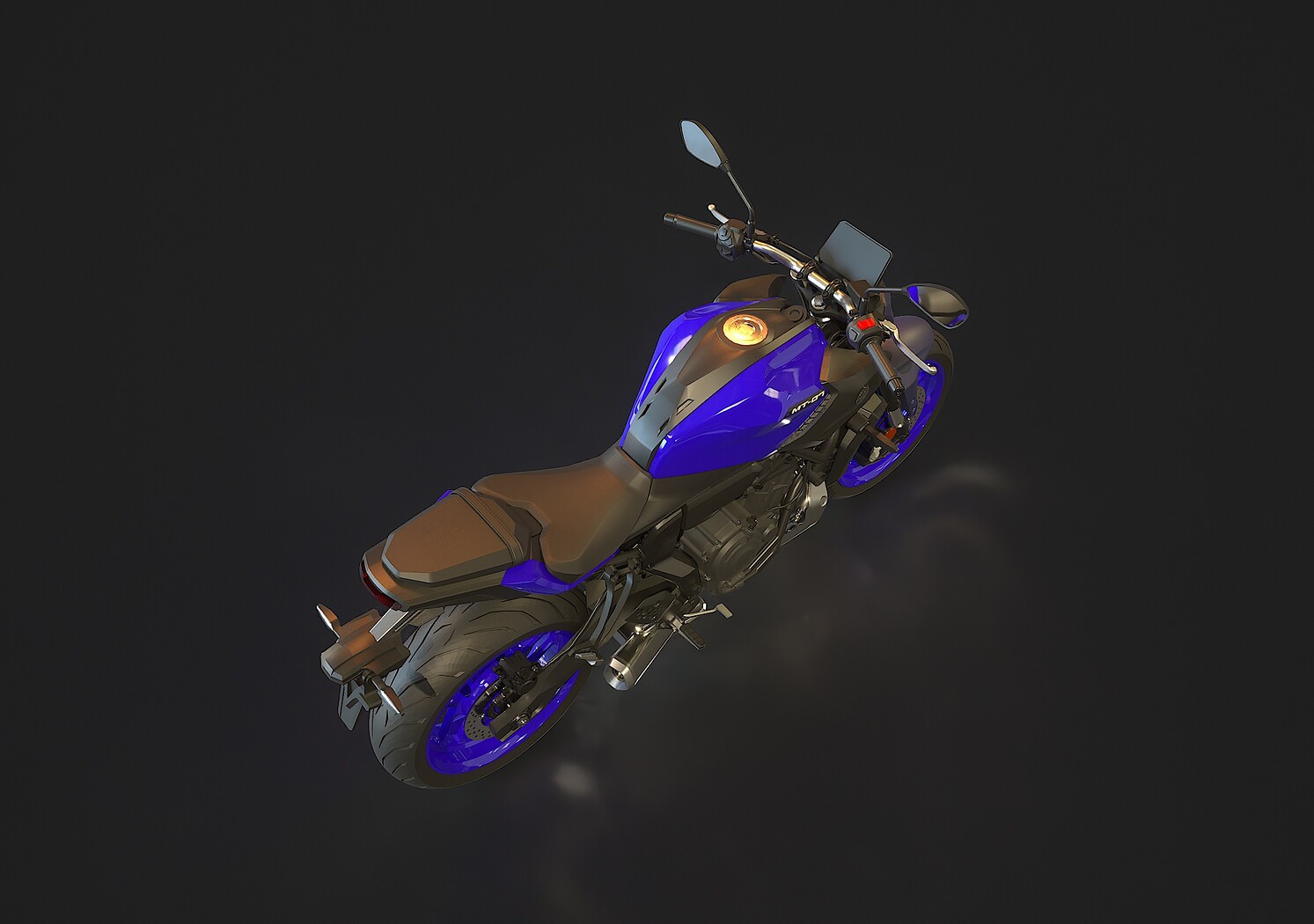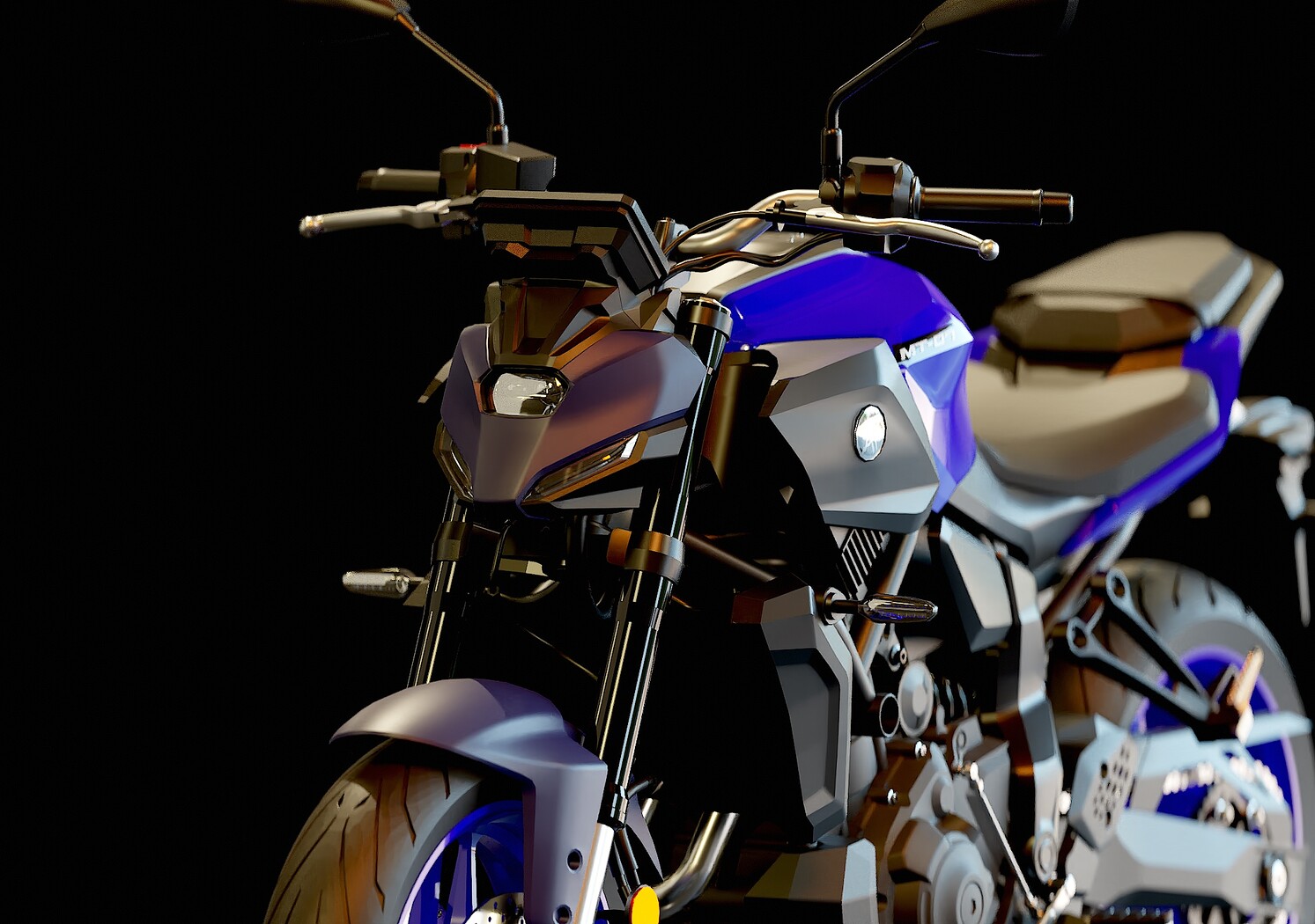 • Detailed Base Mesh: Includes essential components such as frame, engine block, wheels, suspension, handlebars, seat, and basic fairings, providing a solid starting point for customization.
