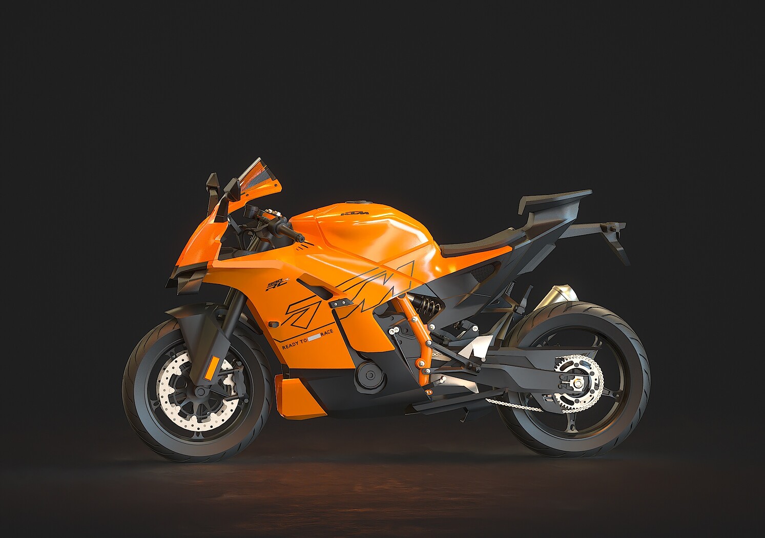 • Detailed Base Mesh: Includes essential components such as frame, engine block, wheels, suspension, handlebars, seat, and basic fairings, providing a solid starting point for customization.