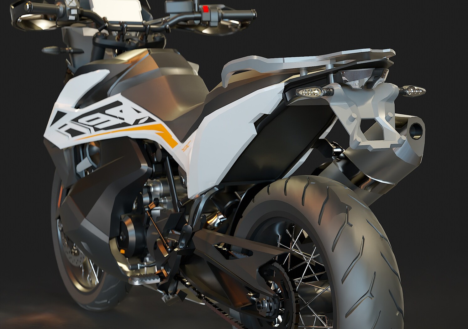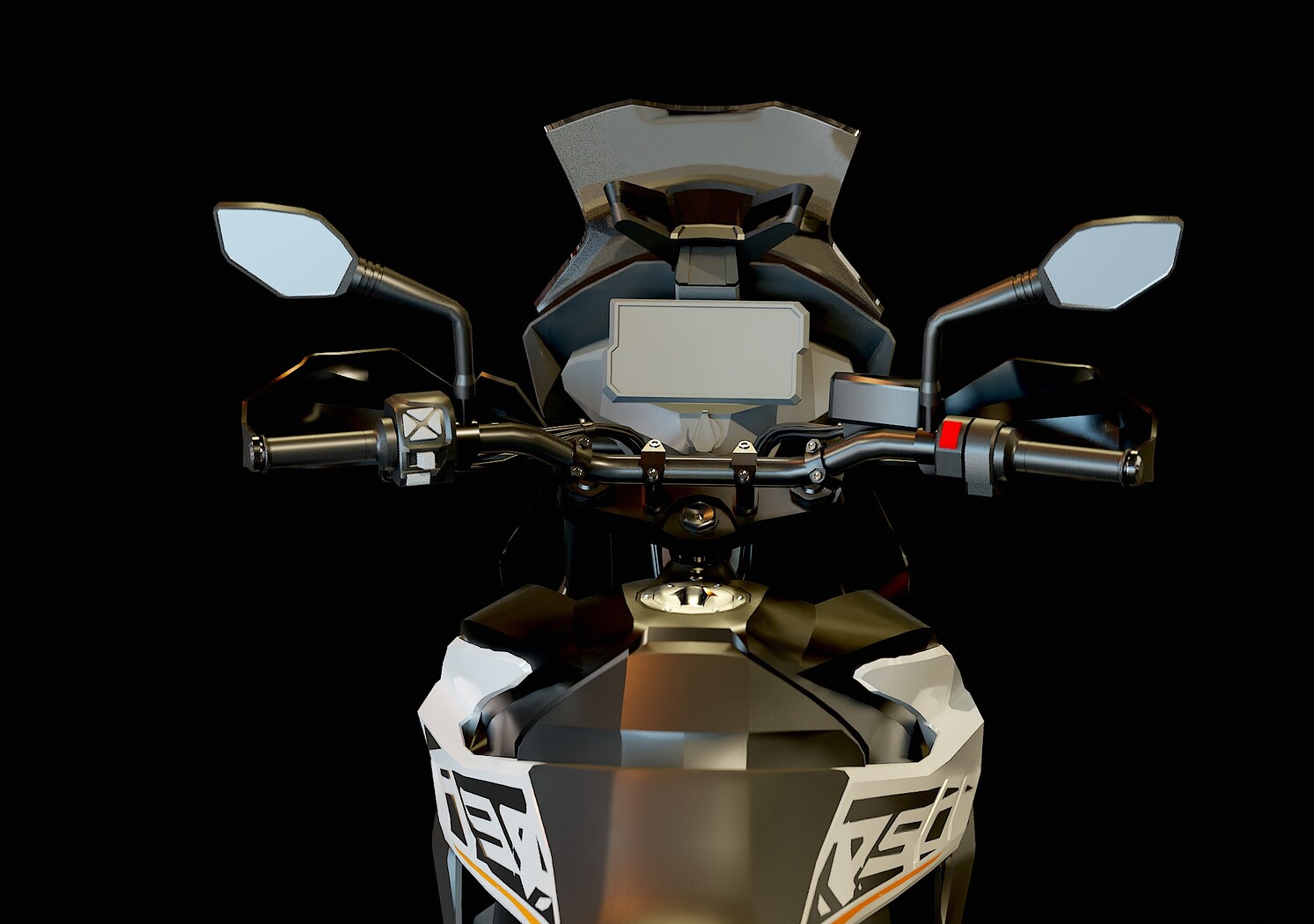 • Detailed Base Mesh: Includes essential components such as frame, engine block, wheels, suspension, handlebars, seat, and basic fairings, providing a solid starting point for customization.