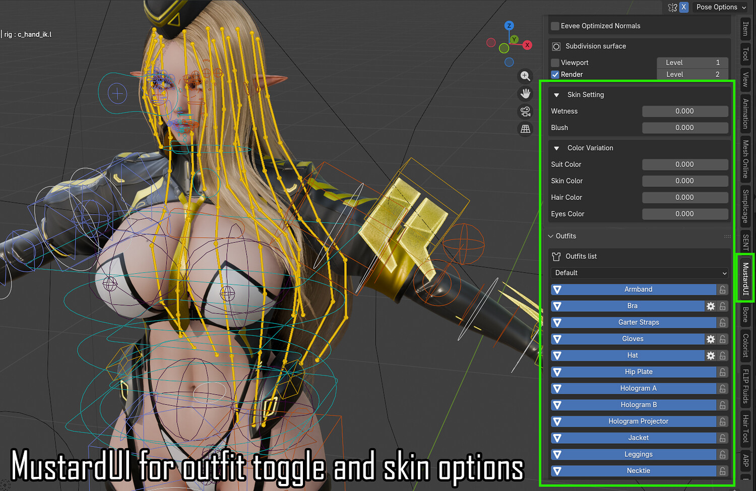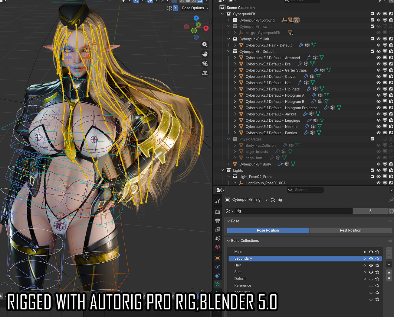 .blend file. Blender 5.0. Fully rigged with Auto Rig Pro plugin with MustardUI for switching clothing parts.