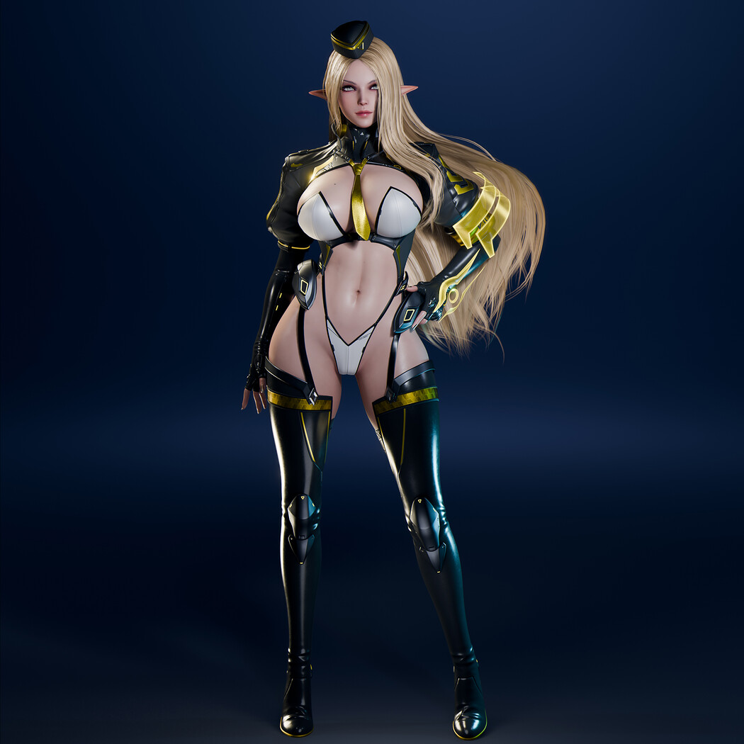 Futuristic Elf Officer in Cyberpunk/ Fantasy setting