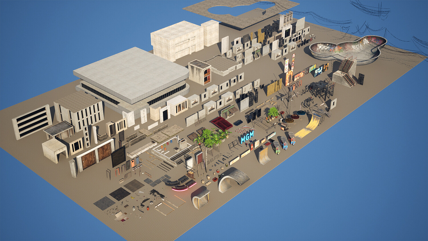 Introducing the Skate Pack for Unreal Engine – an immersive urban skate park set in the heart of a sprawling metropolis. This environment features a variety of modular trick structures—rails, ramps, ledges and more—positioned within a gritty, high‐rise–backdrop that captures the energy of city life. Whether you’re crafting a skateboarding game, shooting a cinematic chase through urban canyons, or simply need a versatile city location, this pack delivers a ready‐to‐use playground that fits seamlessly into any project.